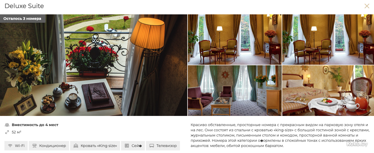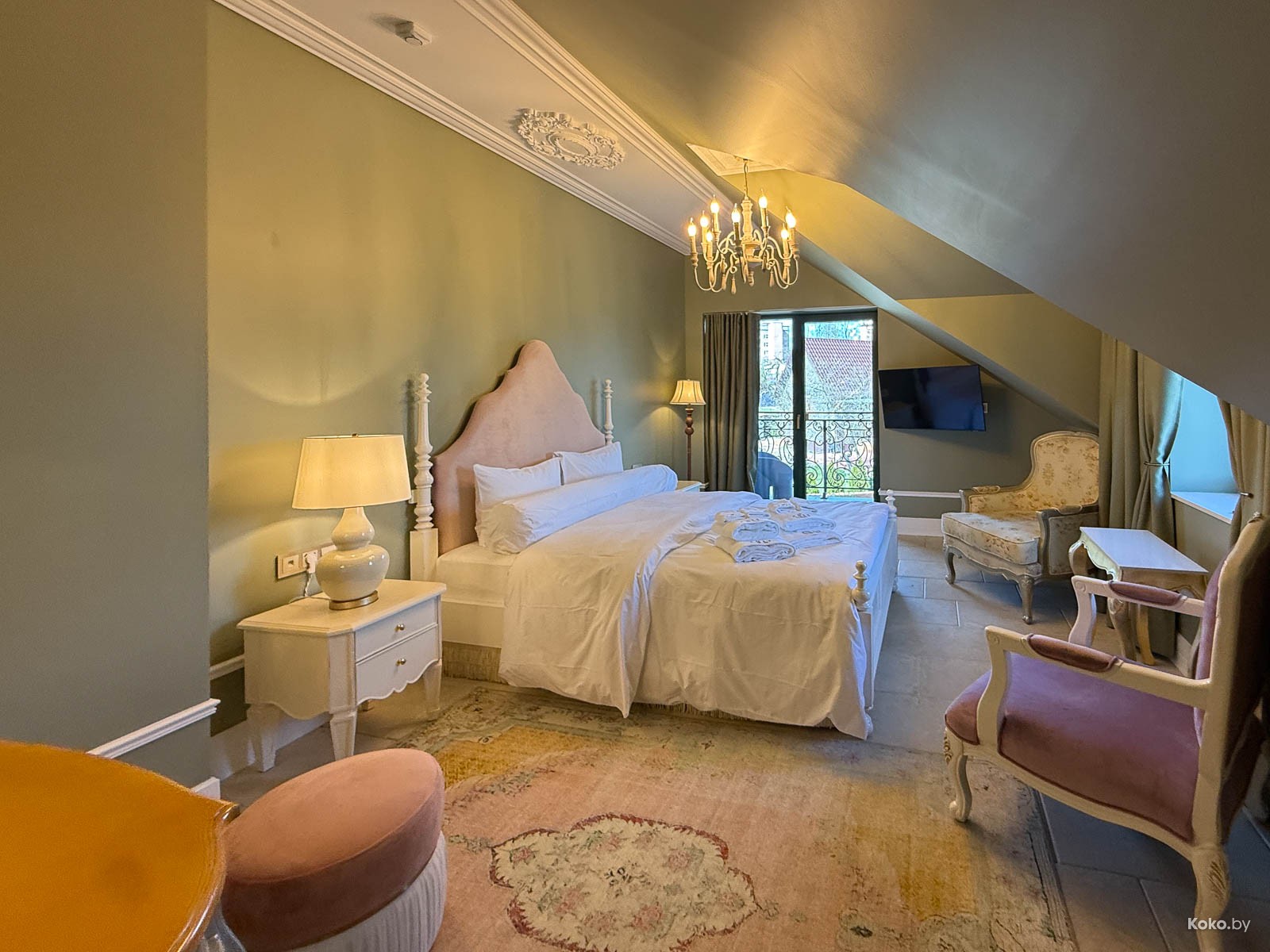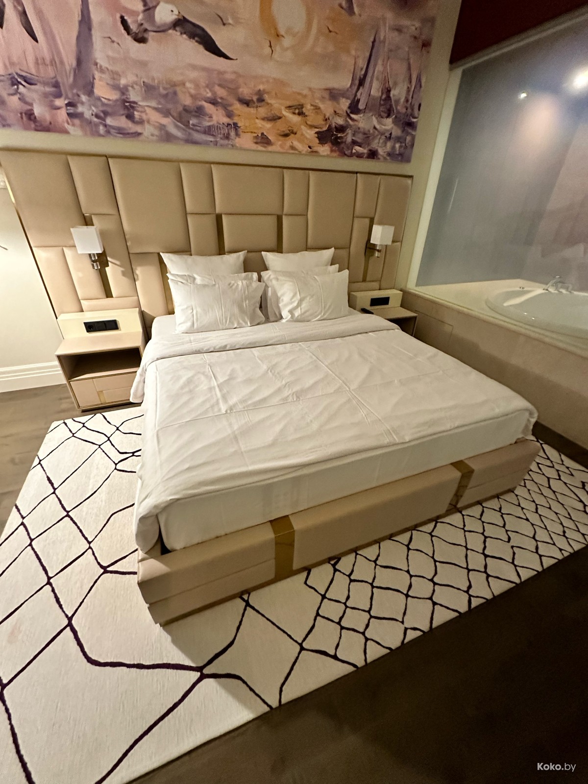 ВЫВОД: да, красиво, да, богато, но за просто симпатичный номер в Гродно платить 750р в сутки - это перебор, без вида, без СПА, без развлечений. Чуть докинуть, и в 6 км от центра в гуще леса «Кронон» сдаёт шикарный номер Deluxe Suite на 52 квадратных метра с видом на дикую природу. А ещё можно заказать массаж в номер за деньги.