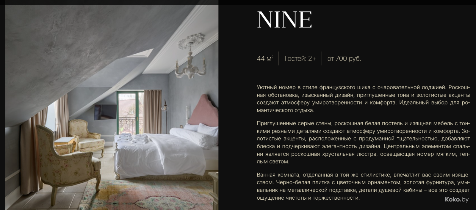 Нежнейший халат скользит по телу, офигенские шампуни, идеальный матрас, итальянский кофе, итальянская вода, всё как в лучших домах Парижа, но не того, что Поставского района Витебской области.