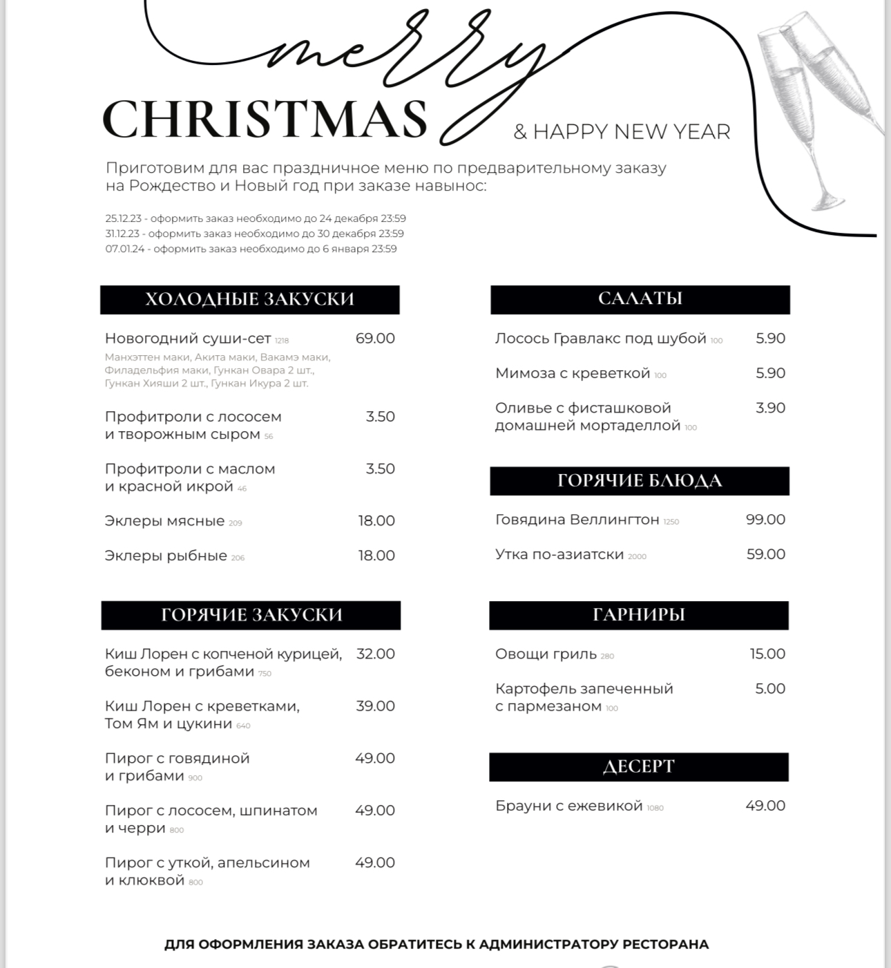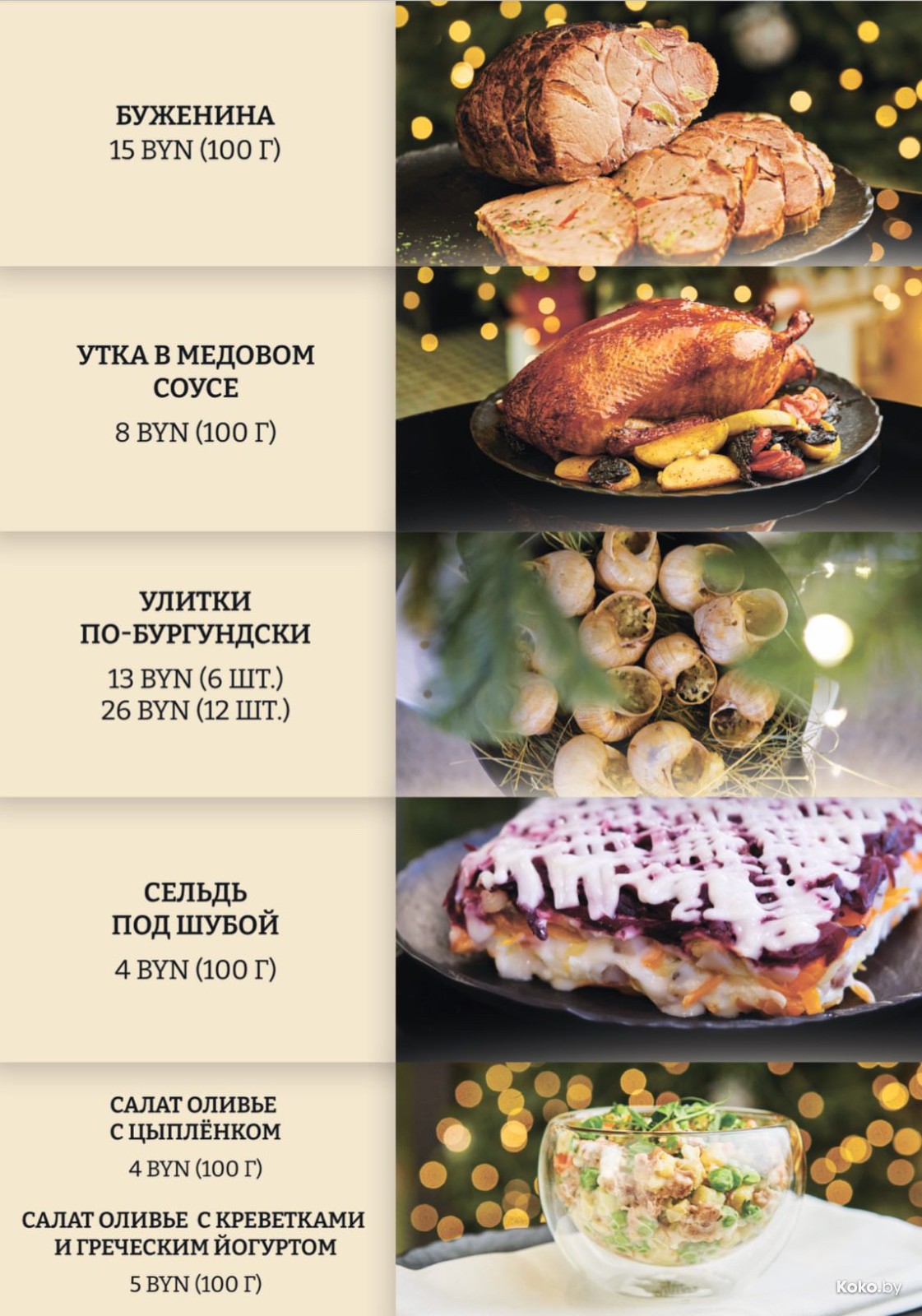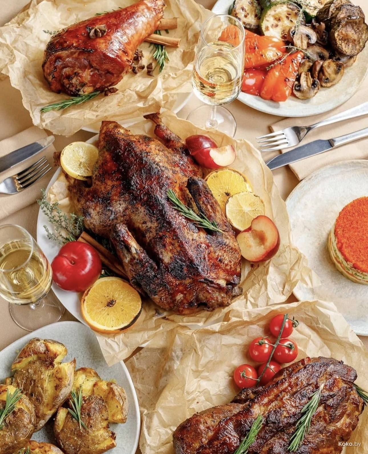 Каждый декабрь в деревнях искали, из каких харчевен заказать запечённую утку на бутылке, лосось под шубой, лазанью или Веллингтон. Признайтесь, ведь вы тоже не хотите стоять весь день за плитой, чтобы заснуть с бокалом шампанского под бой курантов. В этом году, как и в прошлые другие, заведения готовы принять удар на себя и освободить нас от строгания Оливьешек, запекания кур на бутылках и выпекания нежной говядины в слоёном тесте.