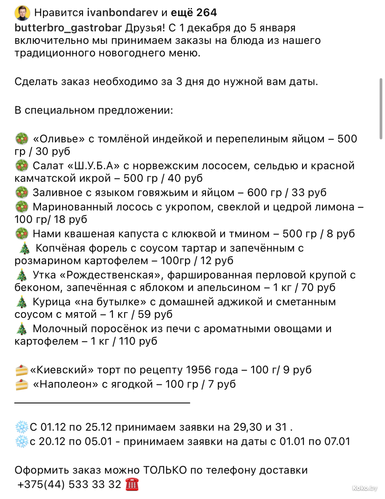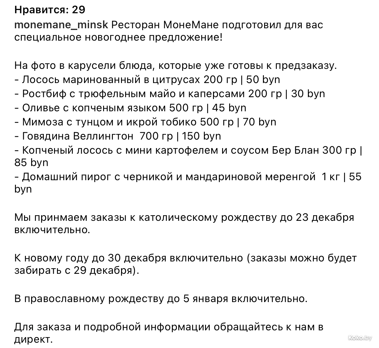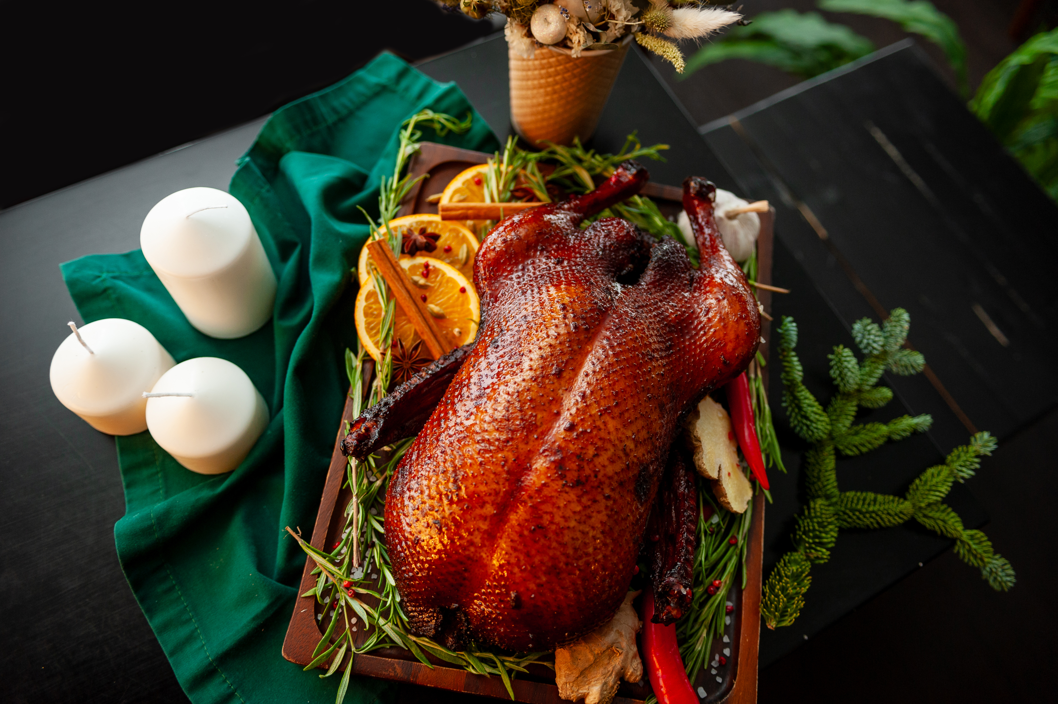Каждый декабрь в деревнях искали, из каких харчевен заказать запечённую утку на бутылке, лосось под шубой, лазанью или Веллингтон. Признайтесь, ведь вы тоже не хотите стоять весь день за плитой, чтобы заснуть с бокалом шампанского под бой курантов. В этом году, как и в прошлые другие, заведения готовы принять удар на себя и освободить нас от строгания Оливьешек, запекания кур на бутылках и выпекания нежной говядины в слоёном тесте.