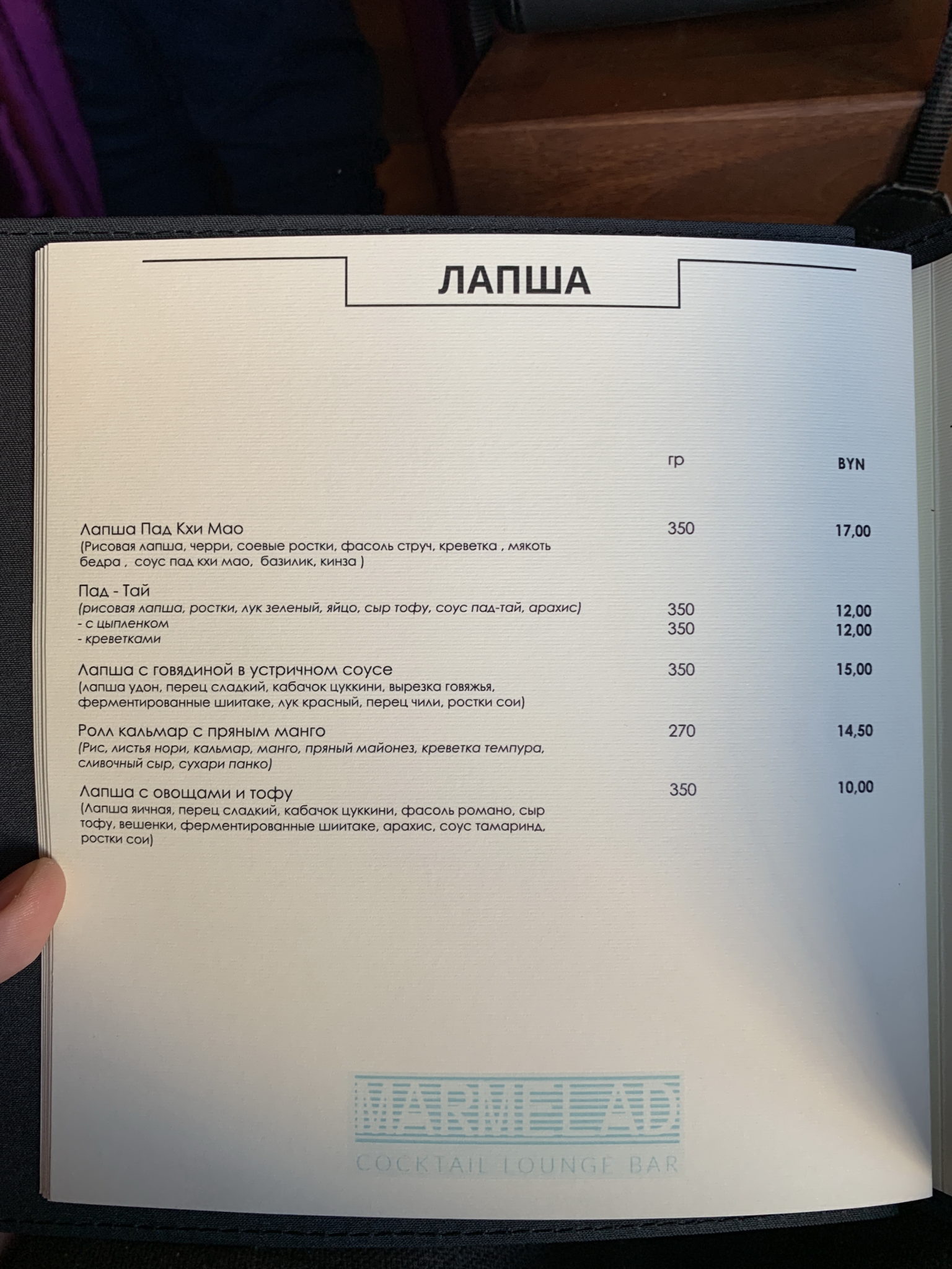 Добротные, но дорогие кальяны от 27р, коктейли от 12р до 15р, но не тестил, я в завязке по приказу доктора. По еде уклон в народную паназиатскую кухню и авторские десерты. Поставил её шеф-повар Андрей Резников и уйдёт, многие помнят его по ресторану «Перфетто» и «Китчен». В меню всякие суши от 10р до 18р, салаты от 12р до 19р, азиатские супы от 6р до 15р за Том Ям, классный Пад Тай с креветками за 12р. Листаем слайдер.