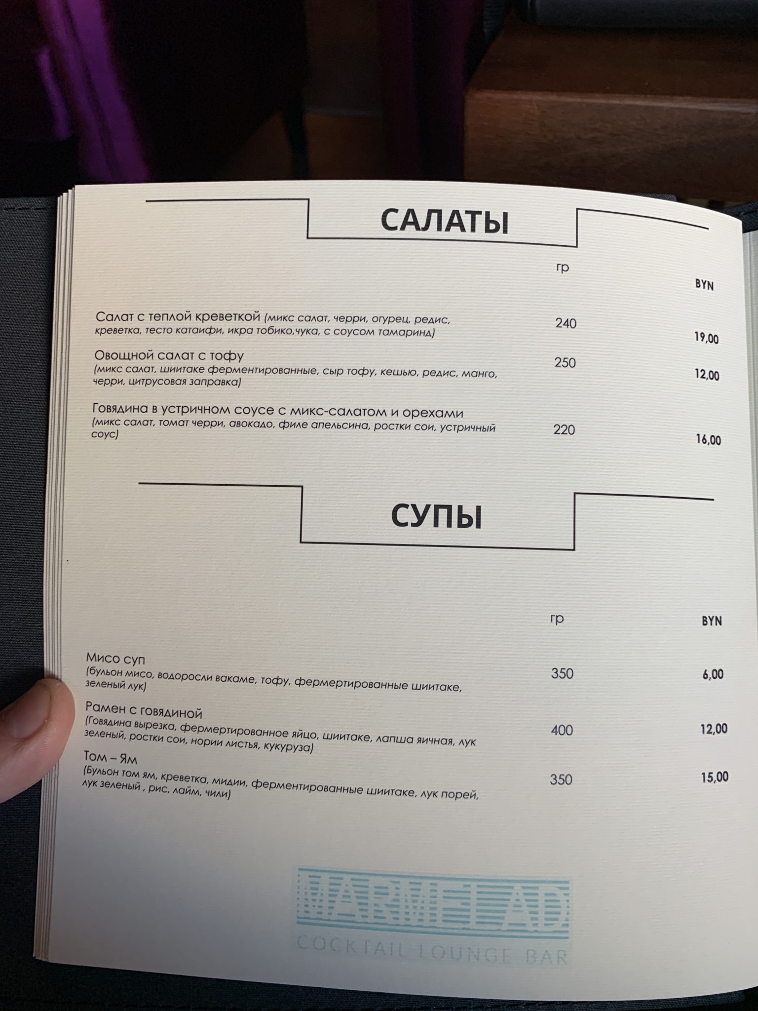 Рамен с говядиной - 12р. Бульон не крепкий, но питательный, по вкусовым ощущениям чем-то напоминает базу для вьетнамского Фо. Просто суп за 6 баксов, без эмоций. К рамену отношусь с нежным трепетом, хоть сам в Японии и не был, но как-то в Минск прилетал крутой шеф-японец Tommy Basamati. На мастер-классе он показывал, какой рамен варят на его родине. Запомнил на всю жизнь, теперь других терзаю.