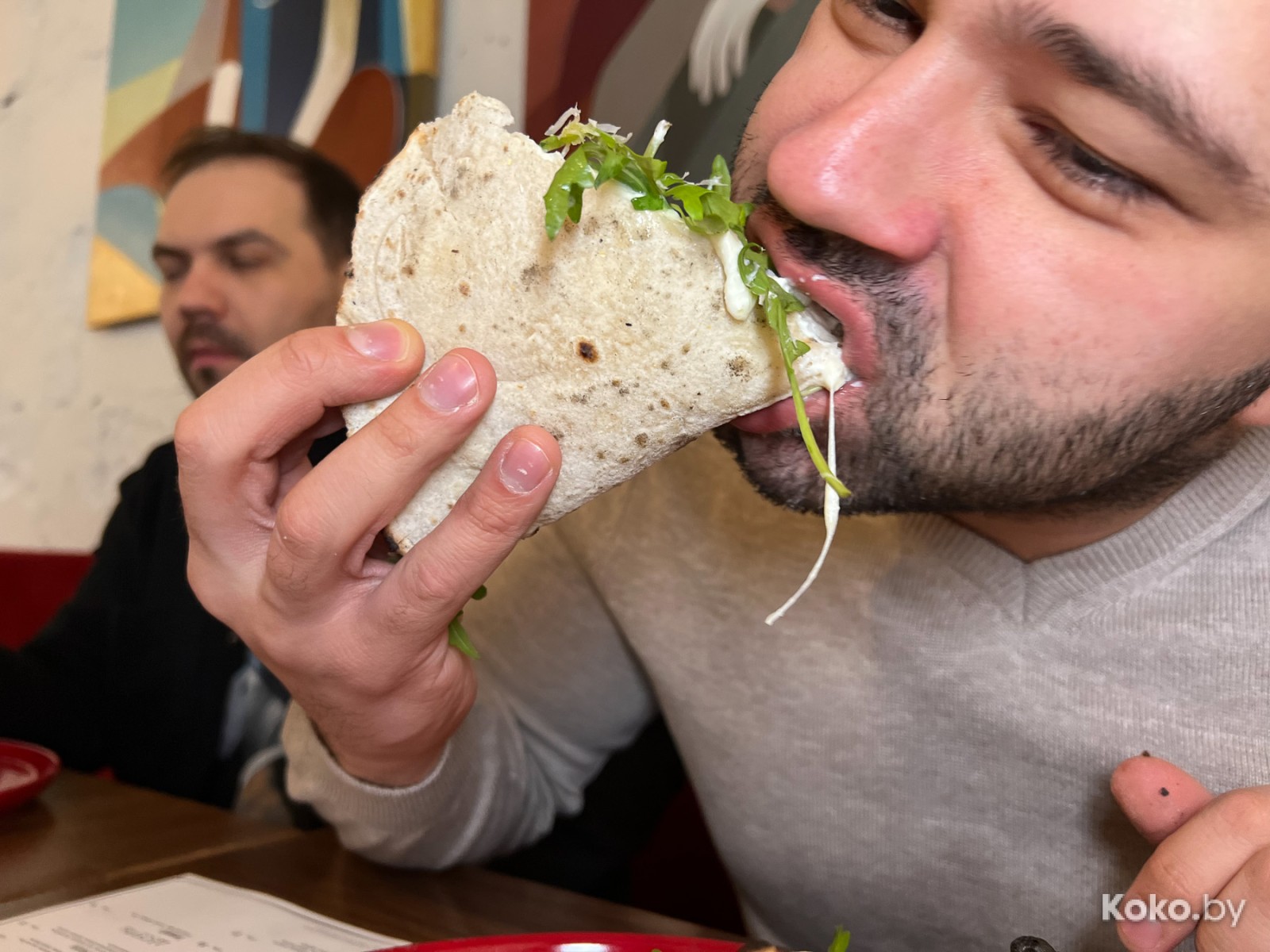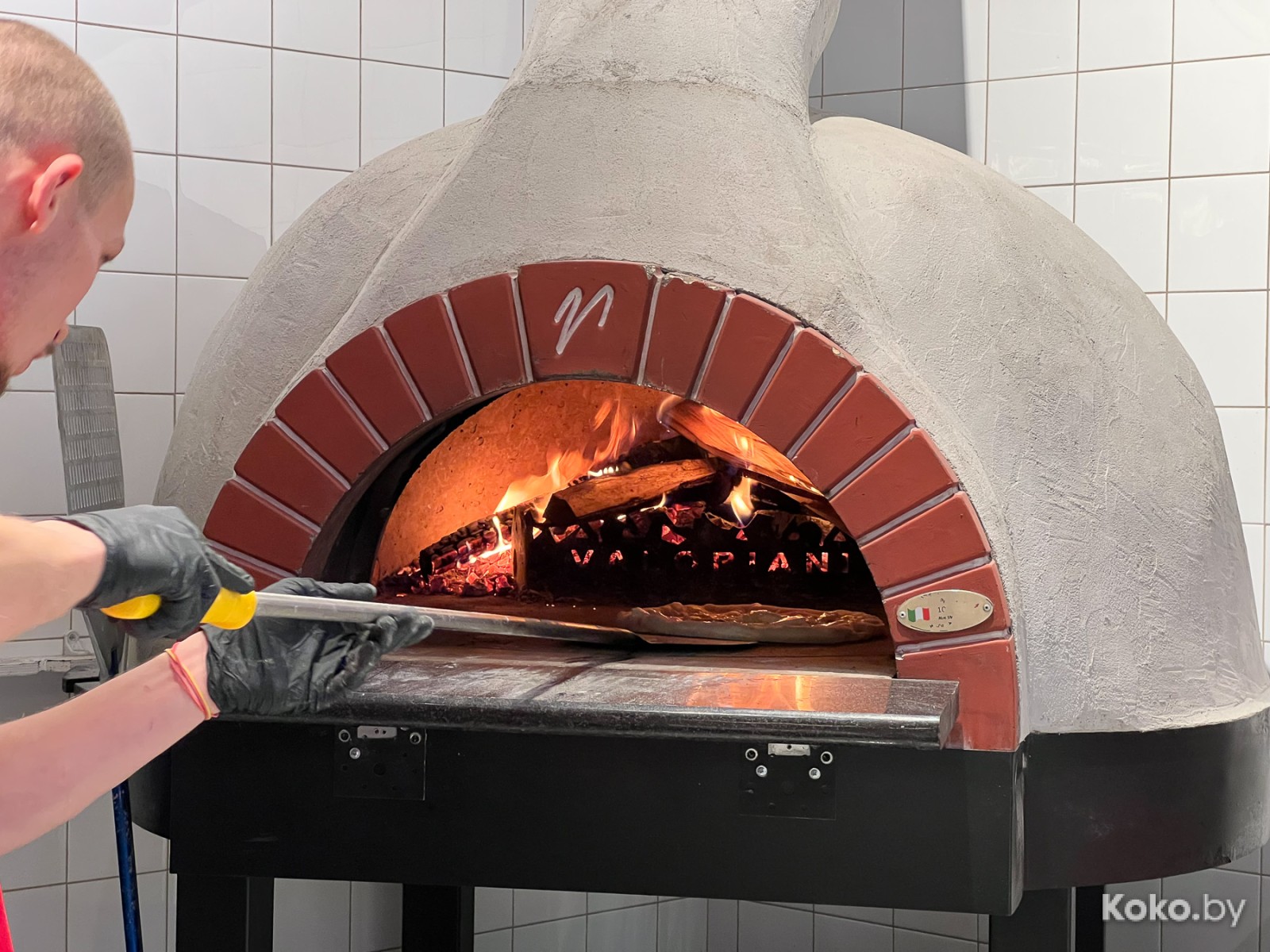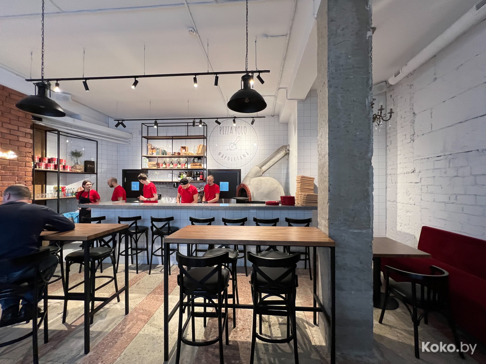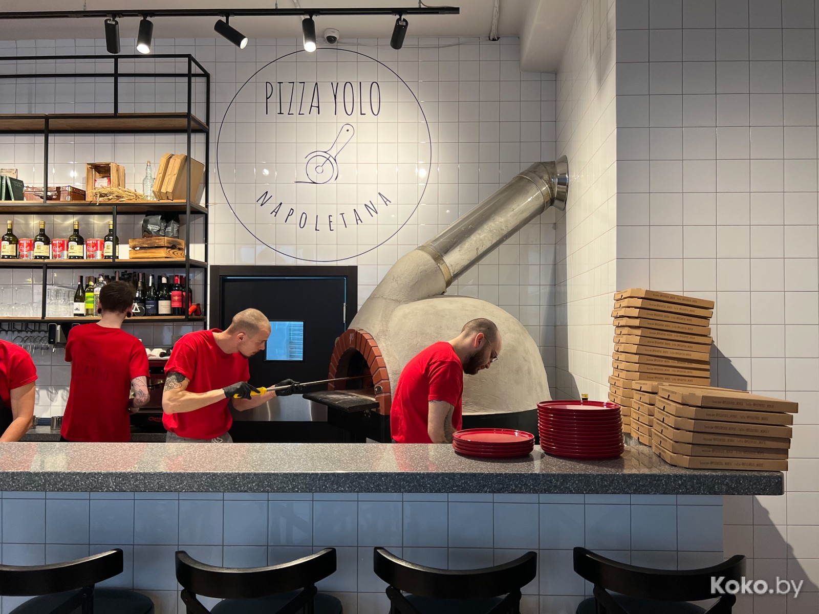 Готовить тесто с начинкой они будут в большой печи на дровах по рецептам Неаполя из итальянских продуктов, которые может дать природа Беларуси. Вижу, что дала она им хорошую муку, помидоры в собственном соку и оливковое масло, судя по цене пиццы с натёртым солью свиным окороком, и прошутто из Италии. Проект «Пицца Йоло» далеко не новый, начинали с «Хиро Пицца», после пекли в гастродвориках, и наконец-то пришло время заиметь свой угол.