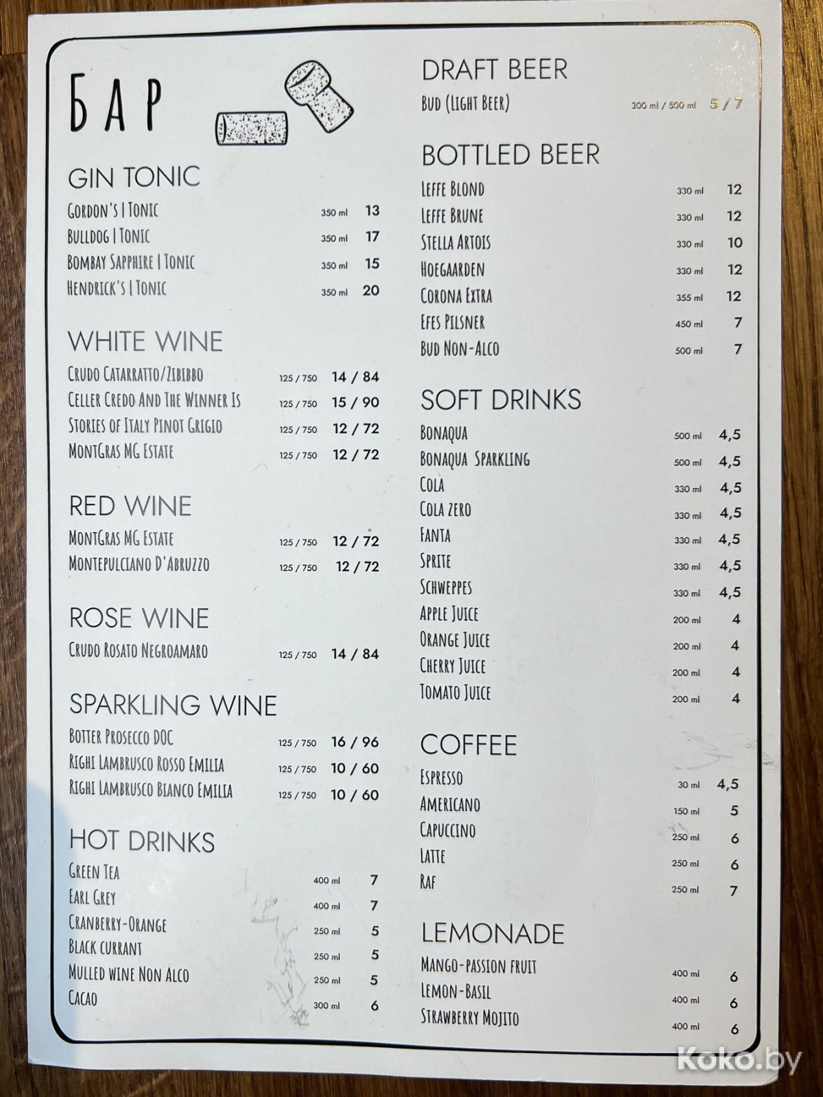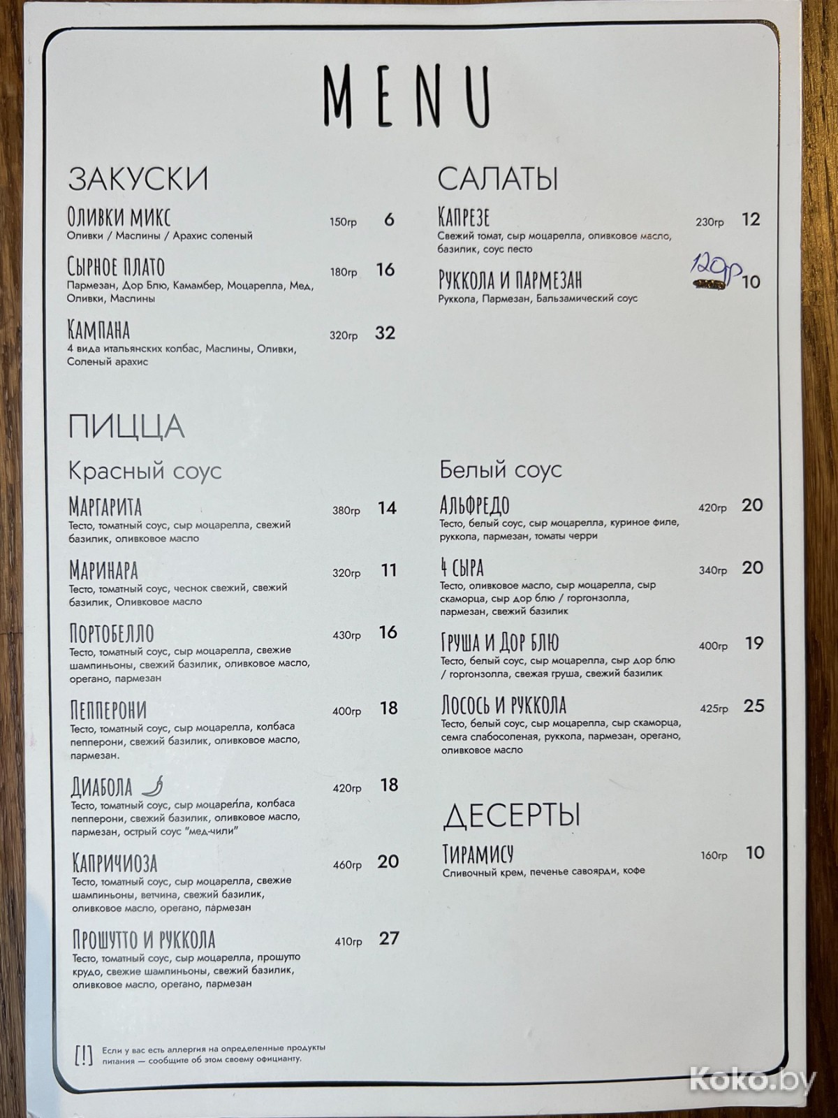 За пиццу просят от 11byn за тупо тесто с томатной пастой, до 28byn с нарезанной санкционкой. Салат Капрезе из мини-шариков моцареллы с черри вытягивает заправка песто с бальзамическим соусом. Тирамису в банке нужно запретить готовить до тех пор, пока это не будет тупо жирный крем без аромата кофе на паре палочек савоярди. Жуть!