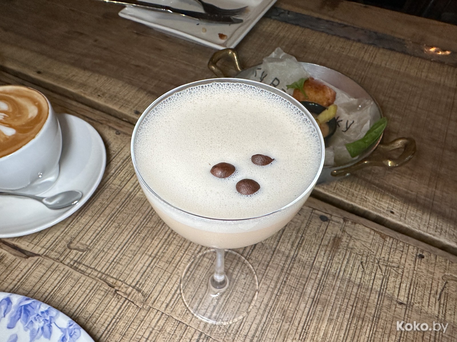 Глоток сливочно-кофейного Модеста, скорей всего на водке, за 13byn на манер Эспрессо Мартини в перерыве между парадом блюд.