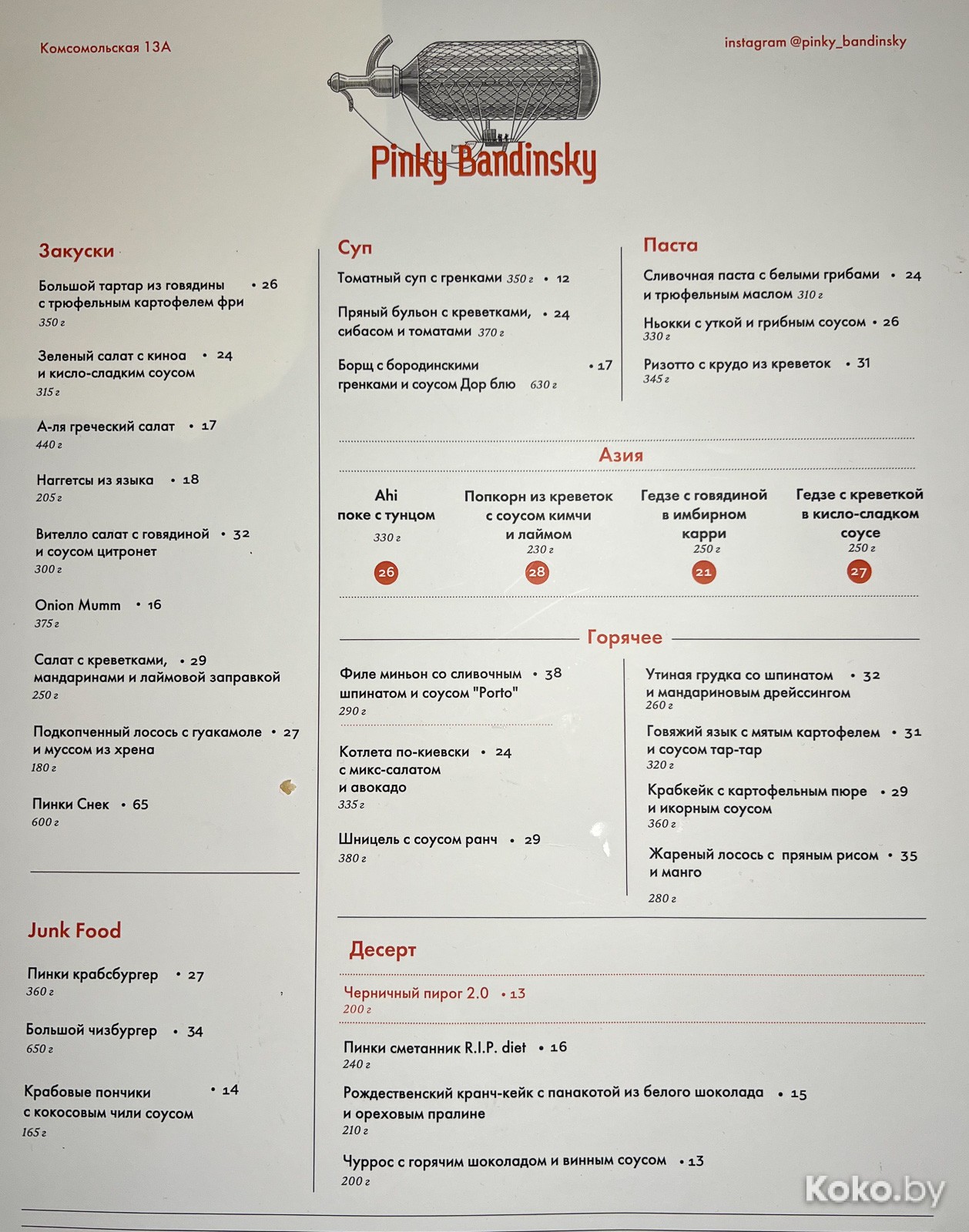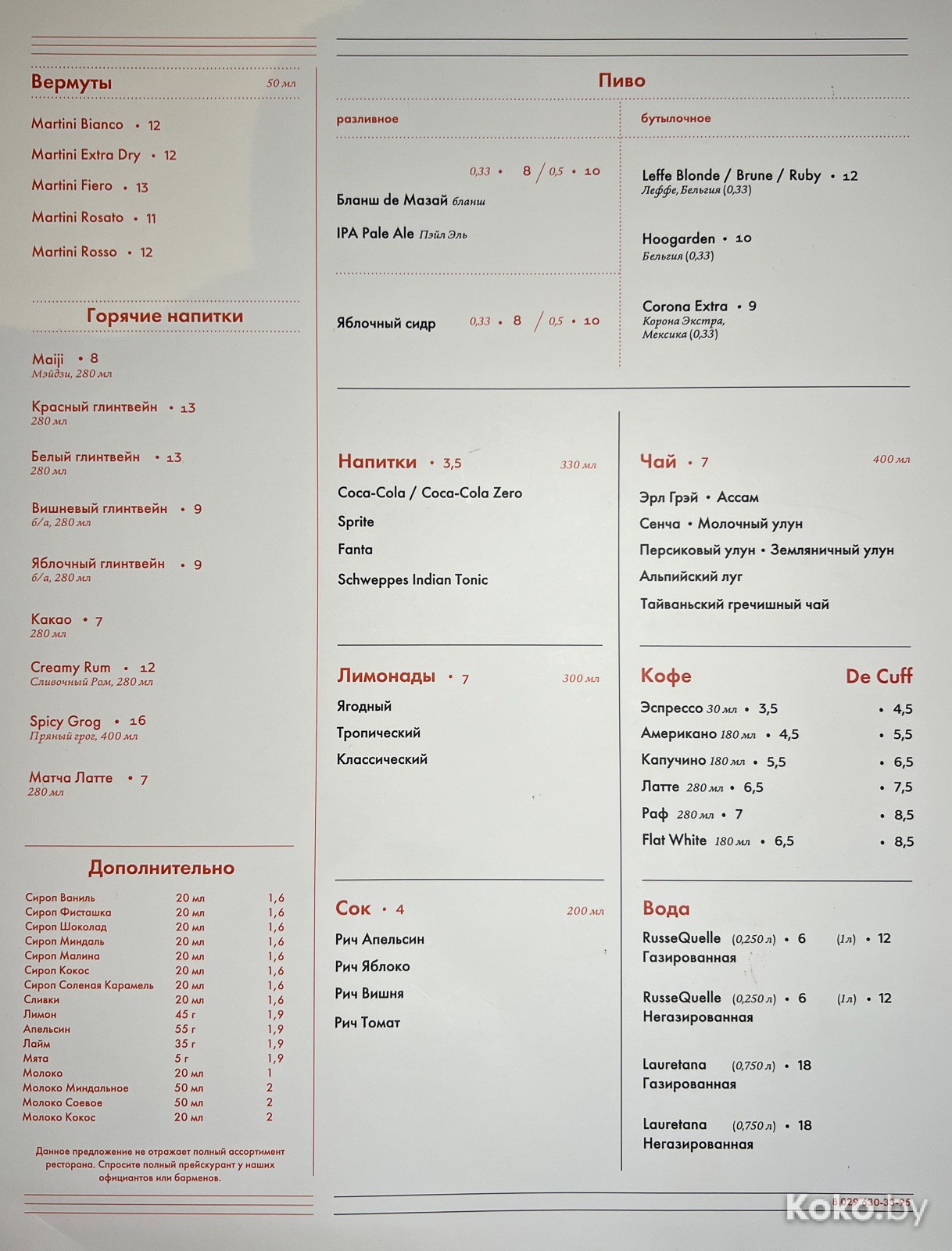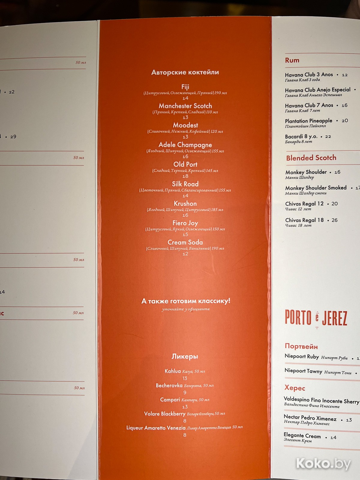 Переделали его полностью, оставив лишь разделы. Особо любо цены на коктики в барном меню: от 12 до 18byn, тестил, умеют балансировать.