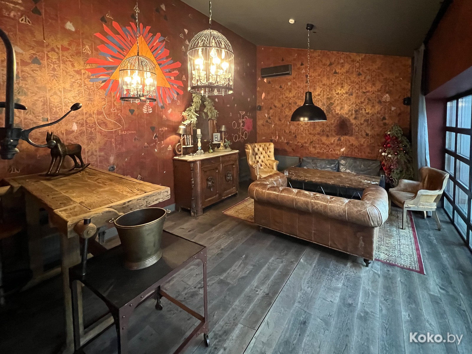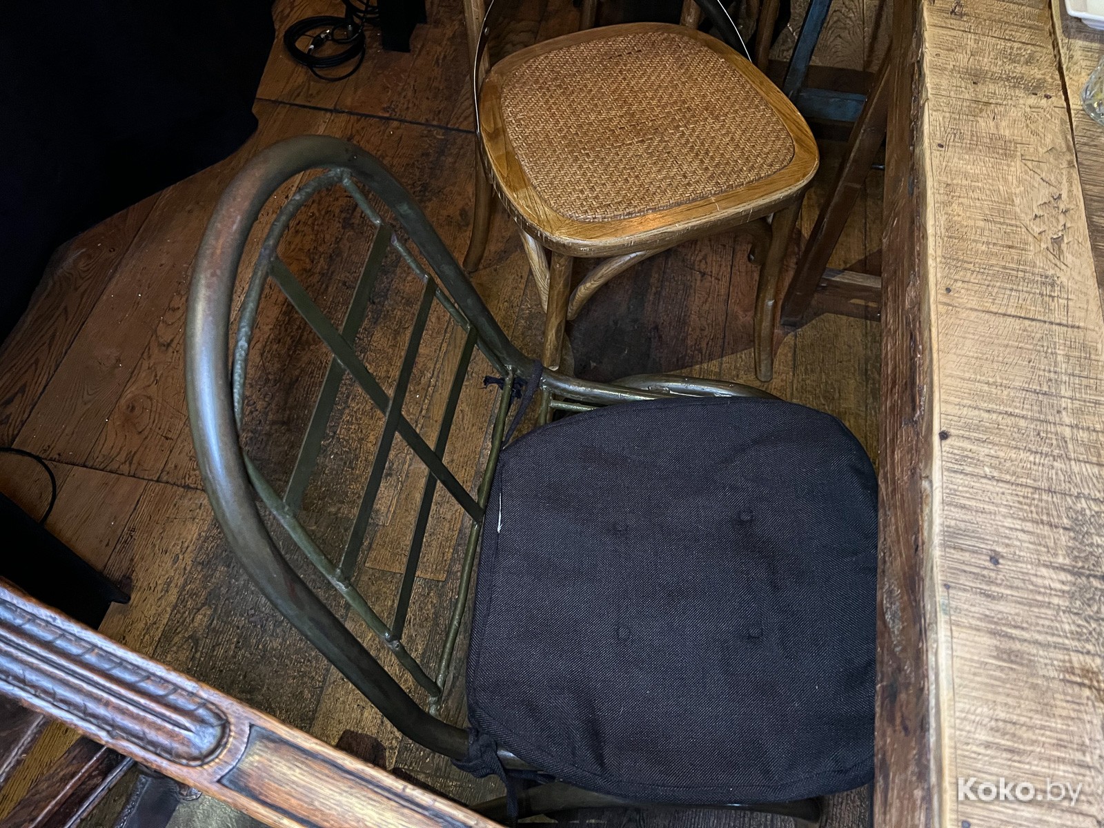 Часы пробили 15:40, отдельная комната с удобными диванами - пустая, но уже занята какими-то гостями, которых не видно, чек пробили в 16:48, но комната всё ещё пустая. В старом Пинки с таким сервисом вопросов не было, негодно! Нам выделили свободный кривой стол-верстак по центру на ненавистных «садовых стульях» времён Палеолита, на которых сидишь, как на бутылке. Но это лучше, чем стоять, спасибо, что не избили.