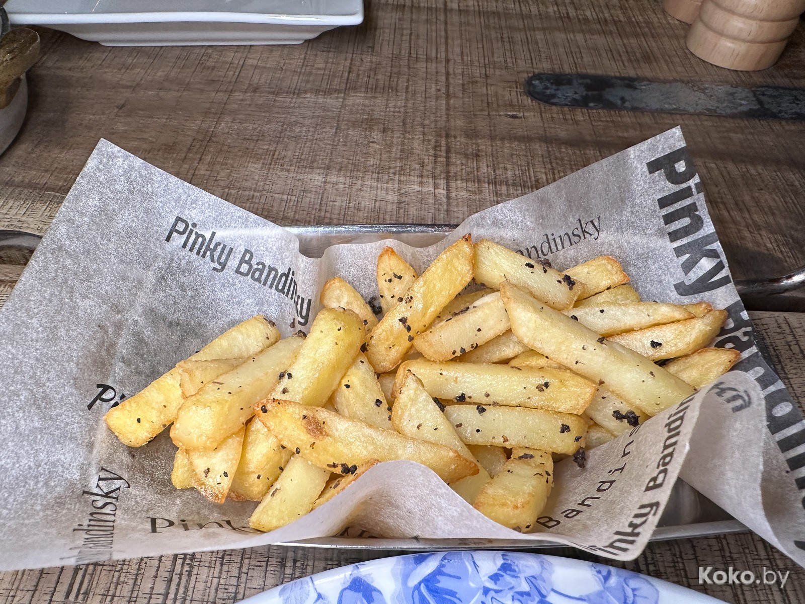 Его, конечно, там не застали, а по юридическому лицу в уголке пользователя сложно сказать, кому принадлежит, поэтому остановимся на возможно перекупил! Рестобар «Пинки Бандински» помню с 2015 года, и до 2022 меню особо не менялось, как и обеденное, но вот что-то произошло. Полностью другая кухня, появился пульт для диджея, интерьер не трогали. Обязательно вернитесь почитать обзор, когда хот-дог стоил 100 000 рублей.