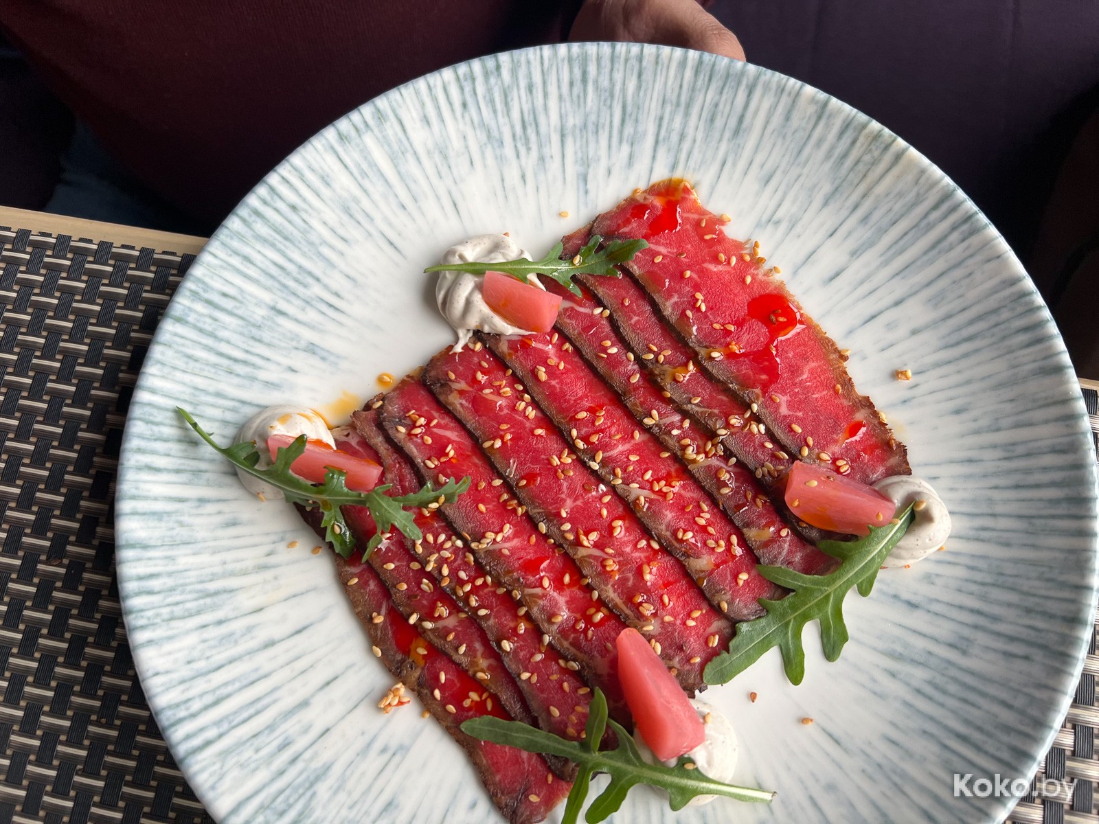 3. Мало карпаччо из ростбифа выглядит эстетично. Нежная говядина, идеально сочетается с трюфельным муссом. За 14byn прям отлично!