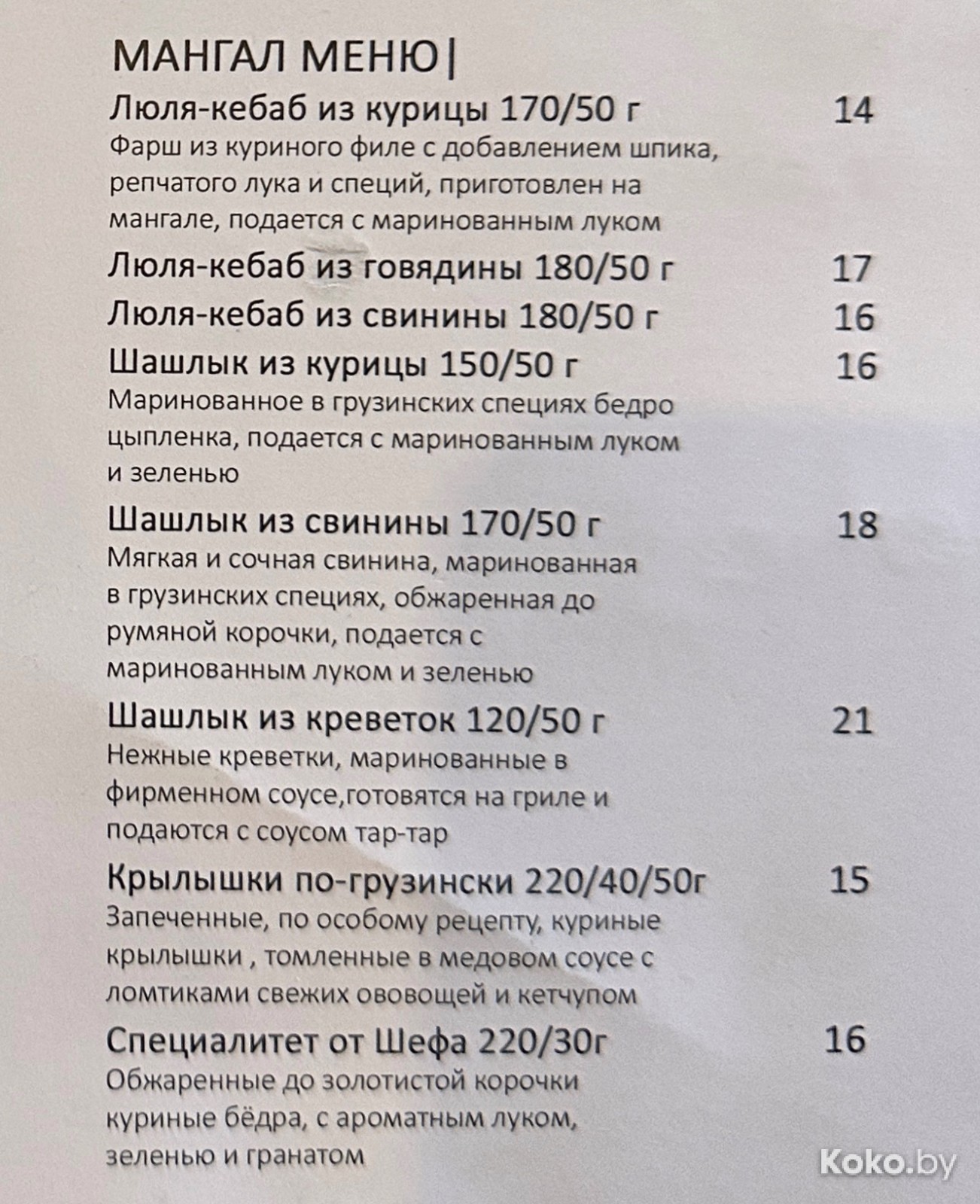 4. Вижу факап, за четыре одиноких крыла по-грузински в сладкой глазури хотят 15byn. Вопрос по куриным крыльям мы закрыли в прошлом тесте, больше к этому возвращаться не будем. Не пойдёт!