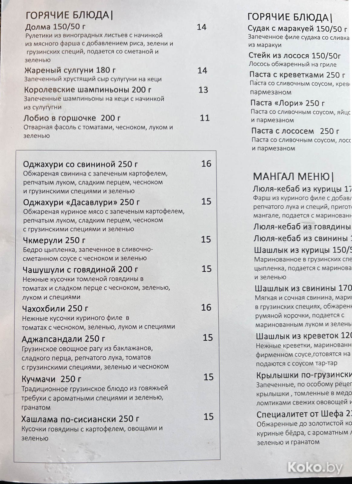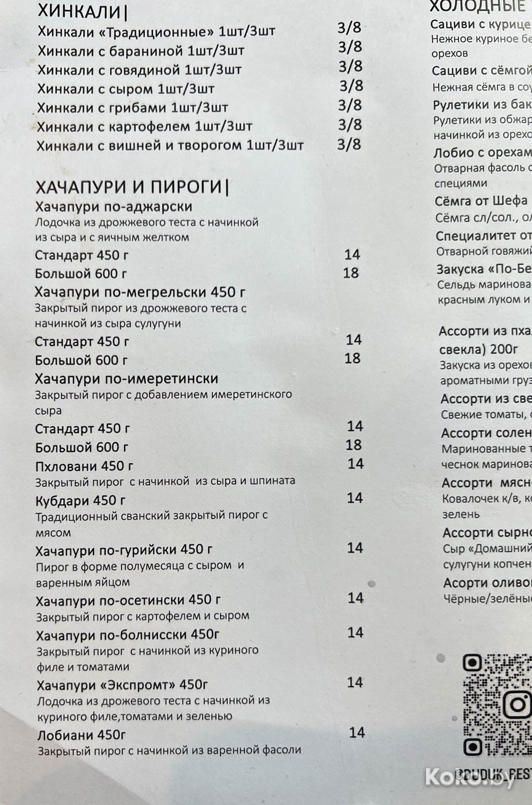 Цены обычные, плюс-минус, как и в любом кафе восточной кухни. Хинкали выгодно брать по 8 штук, тогда каждая обойдётся по 2byn.