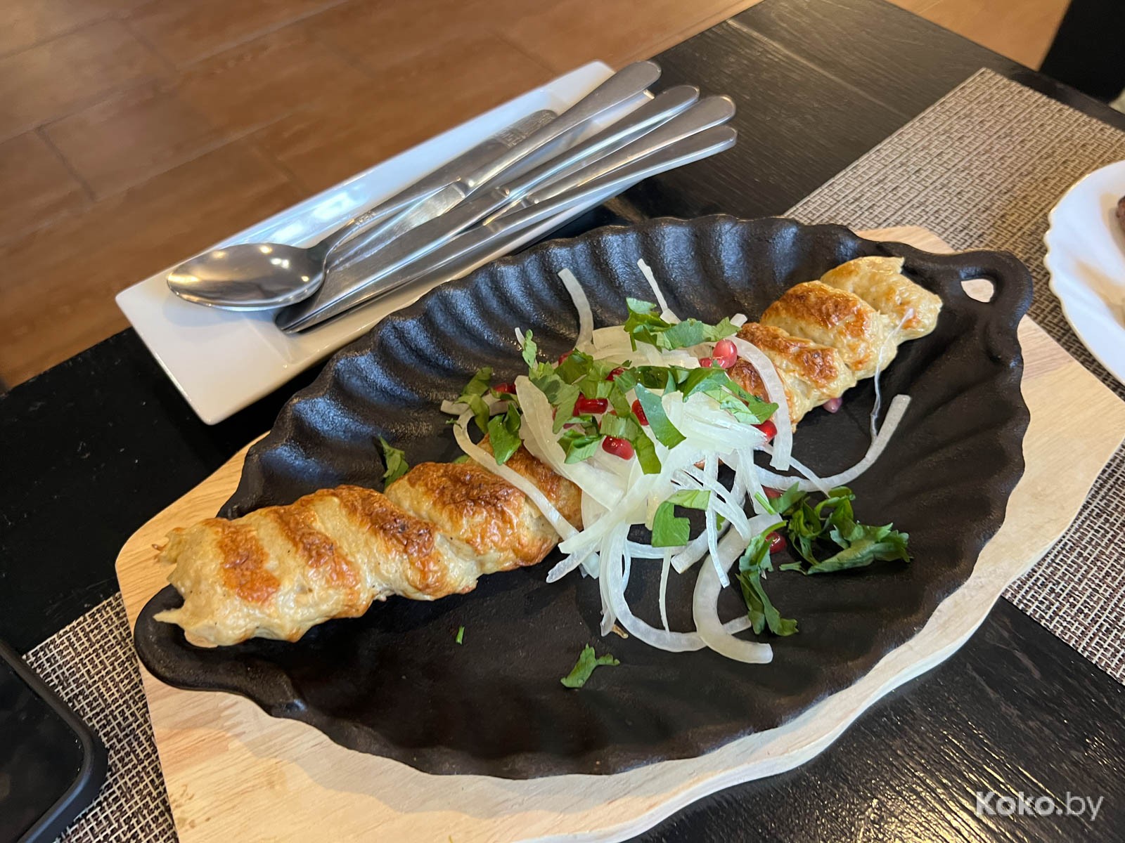 5. На всю раскалённую тарелку удавом развалился куриный кебаб за 14byn. Сочный, упругий, хз, как можно испортить люляшку. Годнота!