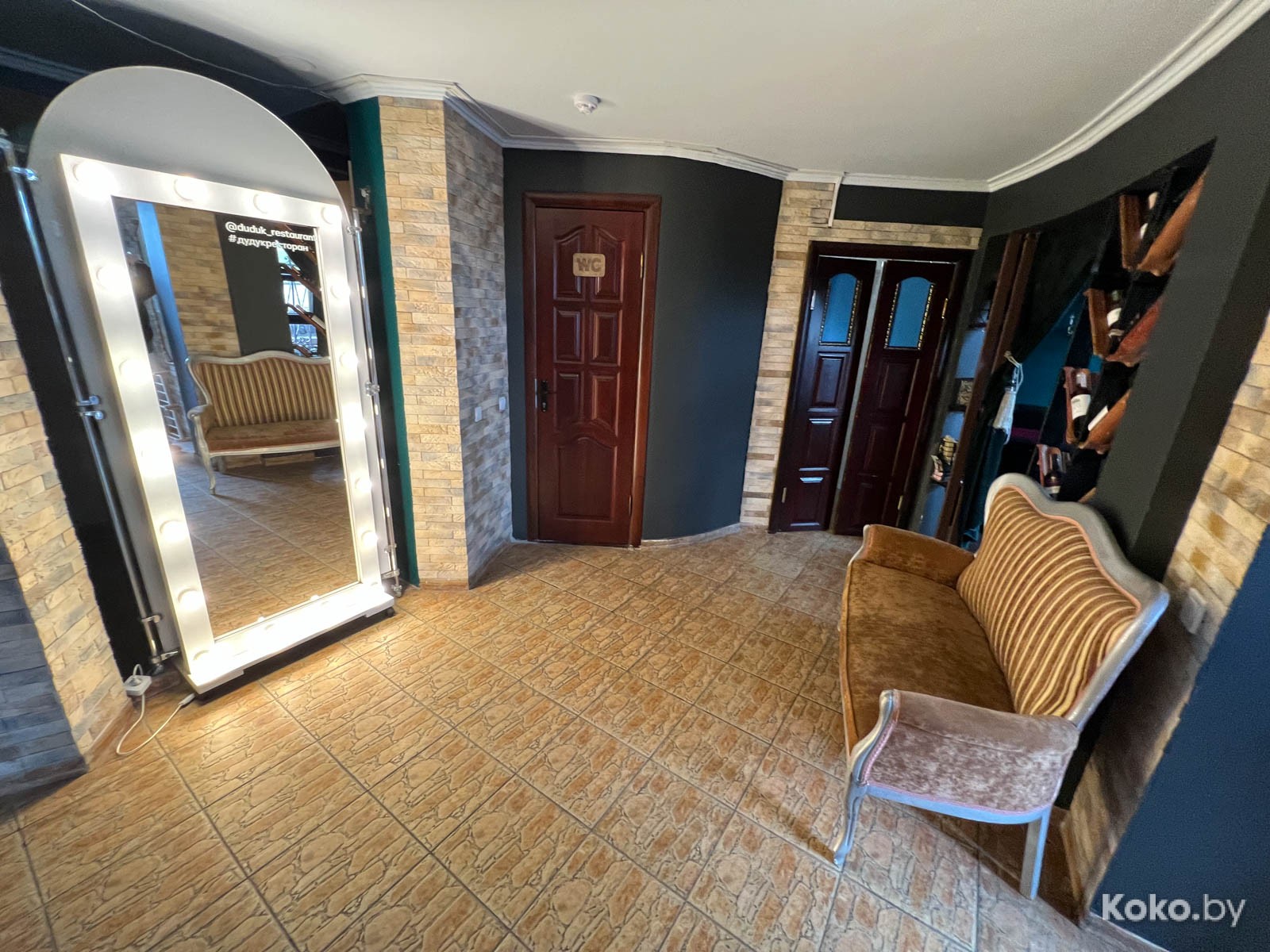 Как домой пришли, только тут интересуются, что есть желаем. Из колонок доносятся песни Вахтанга Кикабидзе, крепко пахнет готовкой, скорей всего, вентиляция - это сквозняк между окном на кухне и дверью. По левой стороне випка с караоке, дальше у окна, как вагон-ресторан.