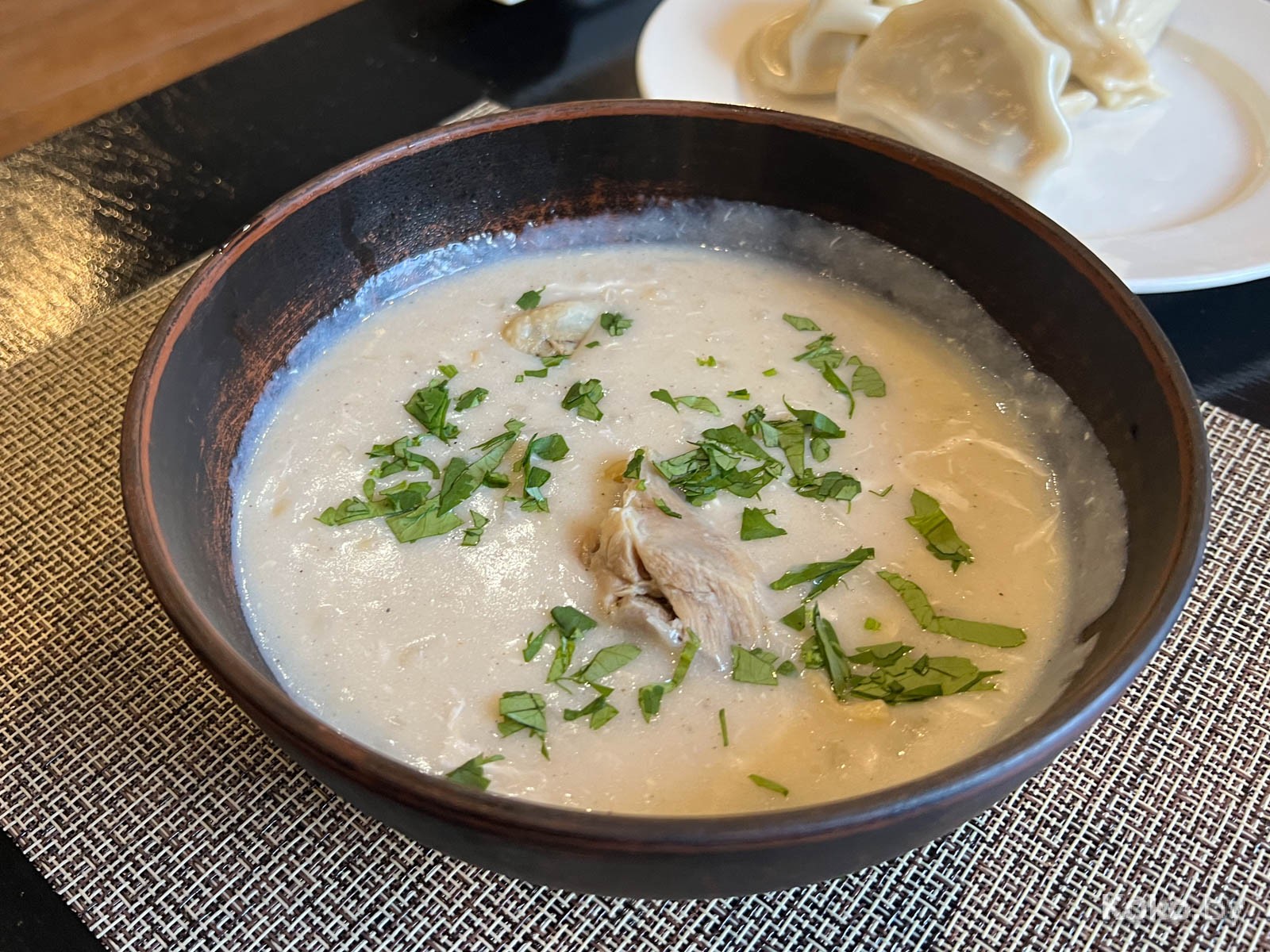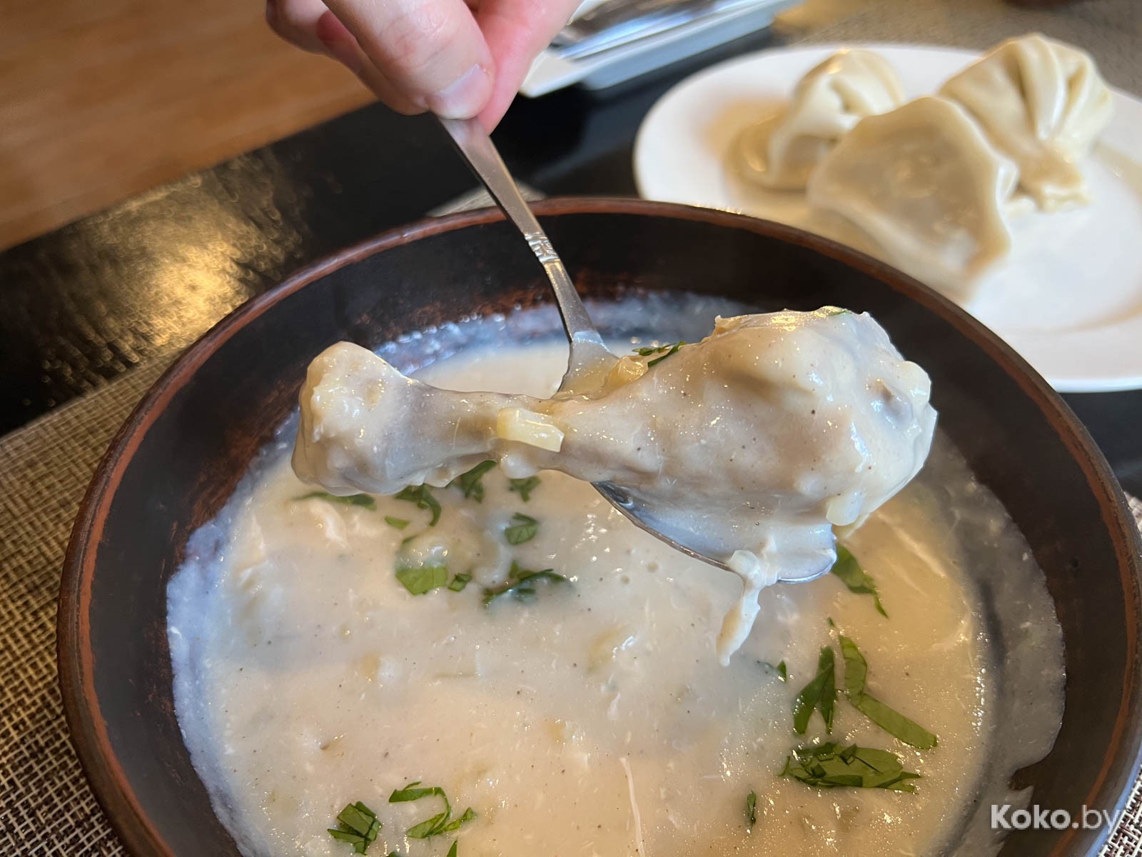 1. В течение 6 минут на стол поставили мощную порцию опохмельного супа Чихиртма за 10byn с куриной голенью на дне. По балансу с винным уксусом всё хорошо, но переусердствовали с загущением мукой. В недавней «Хинкали-ко» Чихиртма вкуснее и на 3byn дешевле.