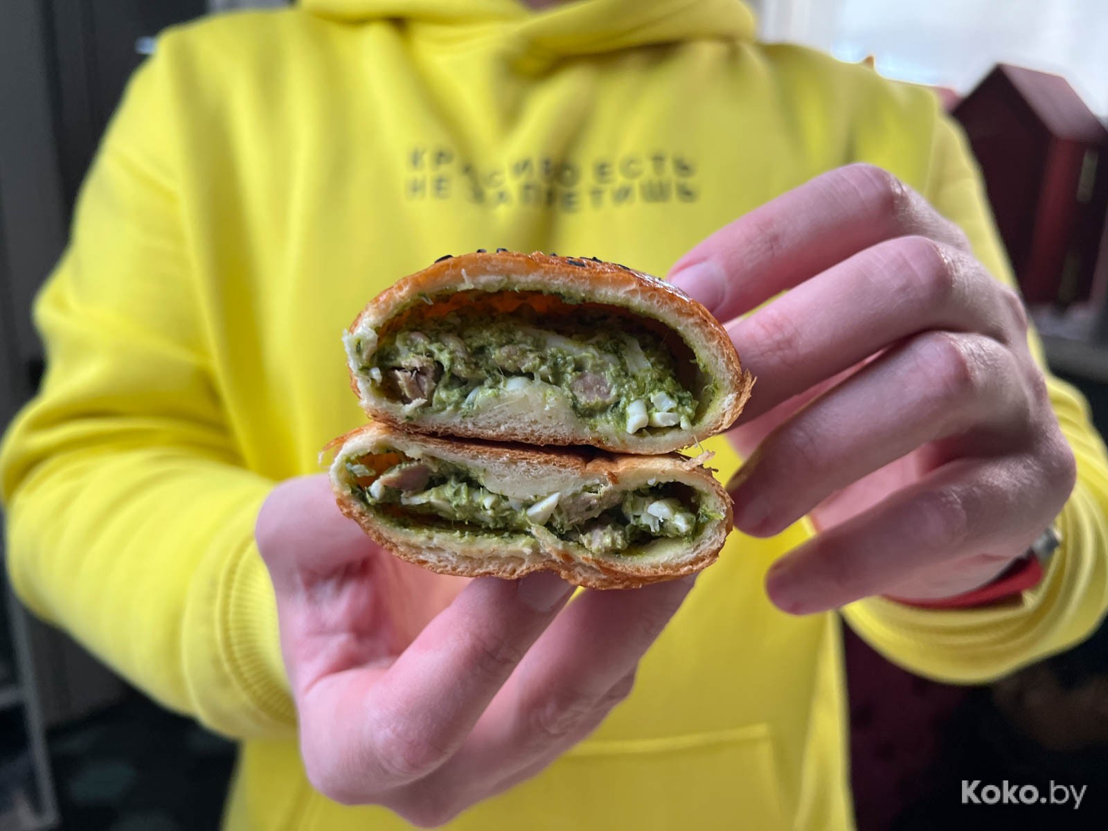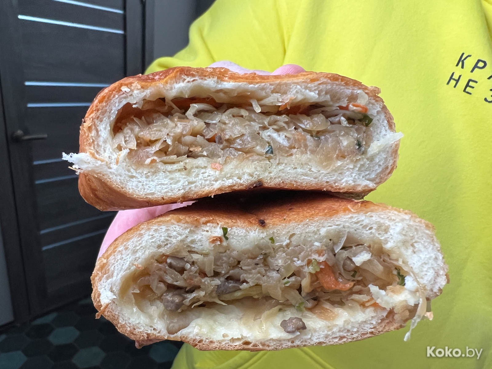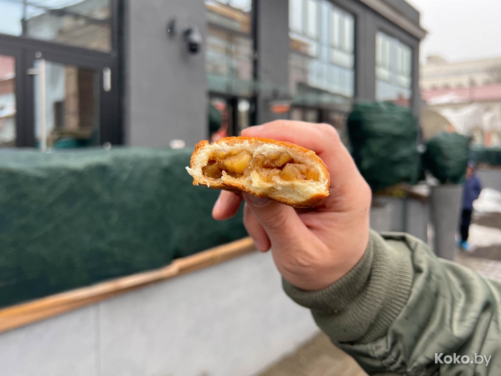 Дрожжевое тесто на сливочном масле - приятное на ощупь, в меру пышное, не тяжелое, не рыхлое, раскатано тонко. С начинкой в пирожках всё честно, особенно с печёным яблоком в корице за 2 byn.