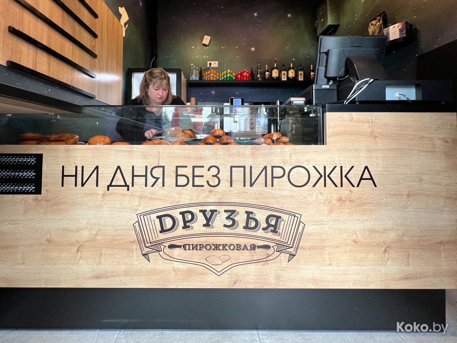 Главное, чтобы ни на что не присесть после них. Находится магазин пирожков «Друзей» на первом этаже лухари апарт-отеля «Либерти» через дверь от нового офиса «Доминос Пицца», за кинотеатром «Победа», где сейчас во всю идёт ремонт. Работает пирожковая по принципу магазина - взял сдобу, оплатил и давай, продолжай движение дальше. Пирожки и пиво сюда приезжают на машине, осталось лишь разогреть в микроволновке.
