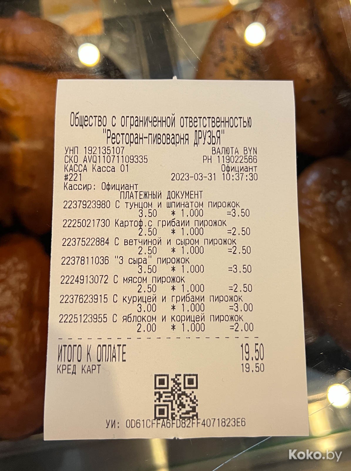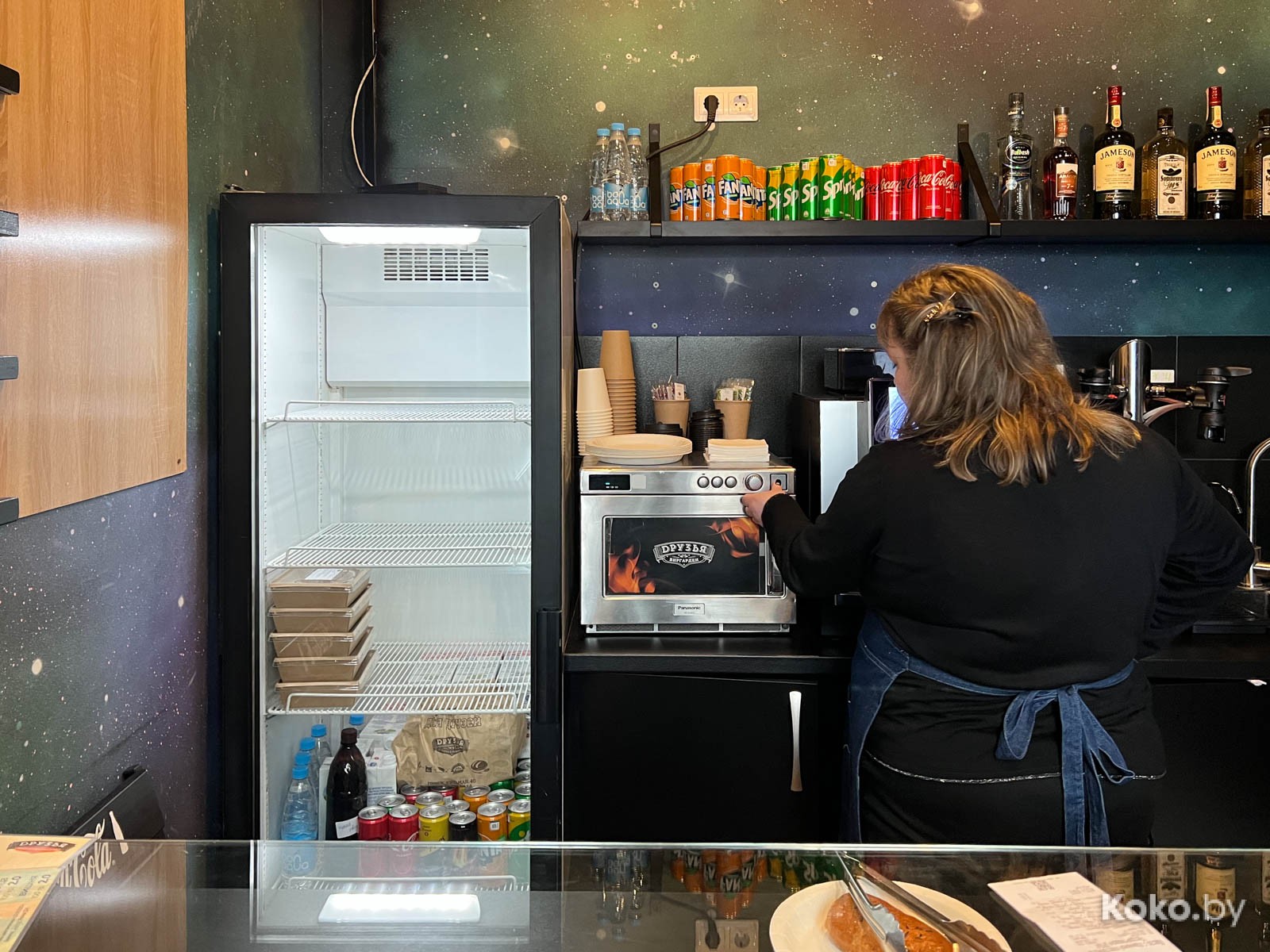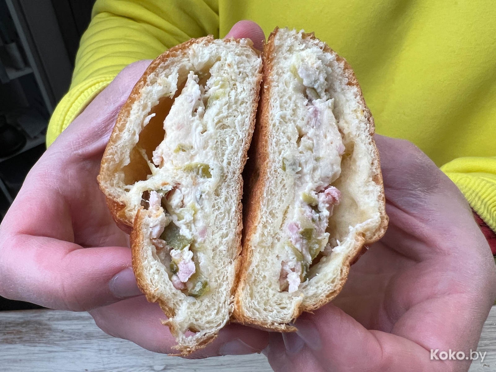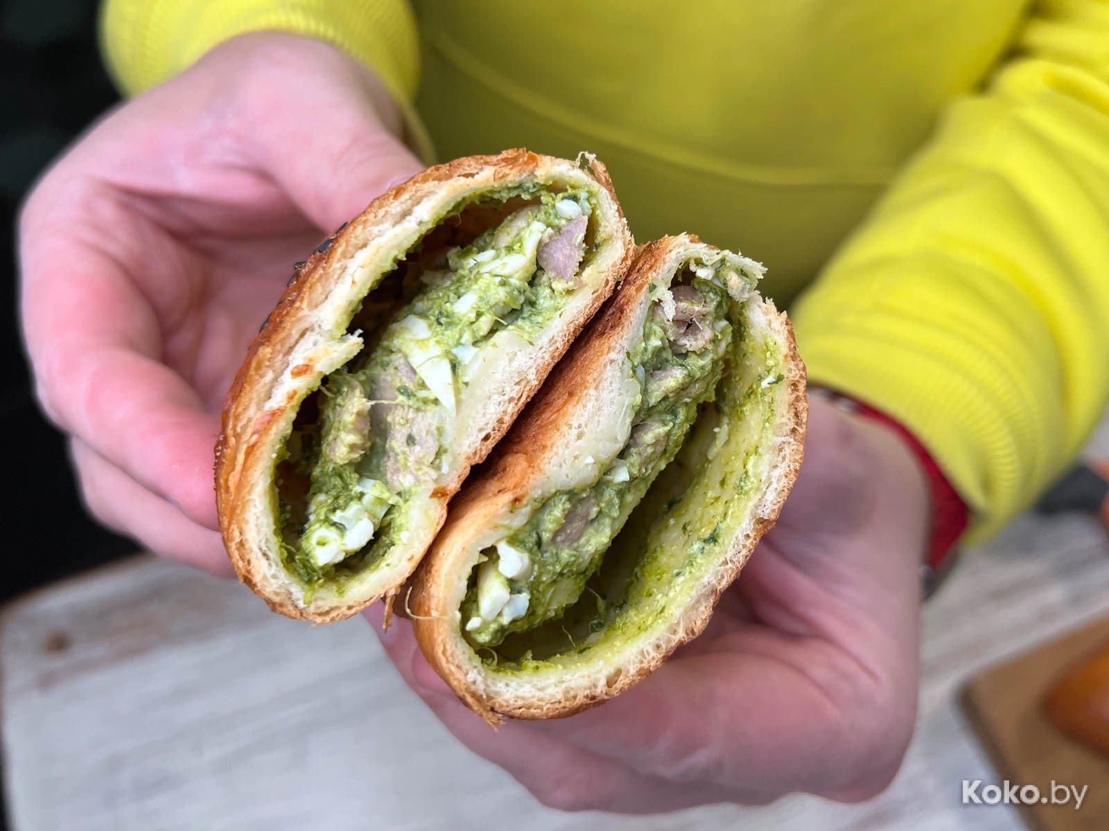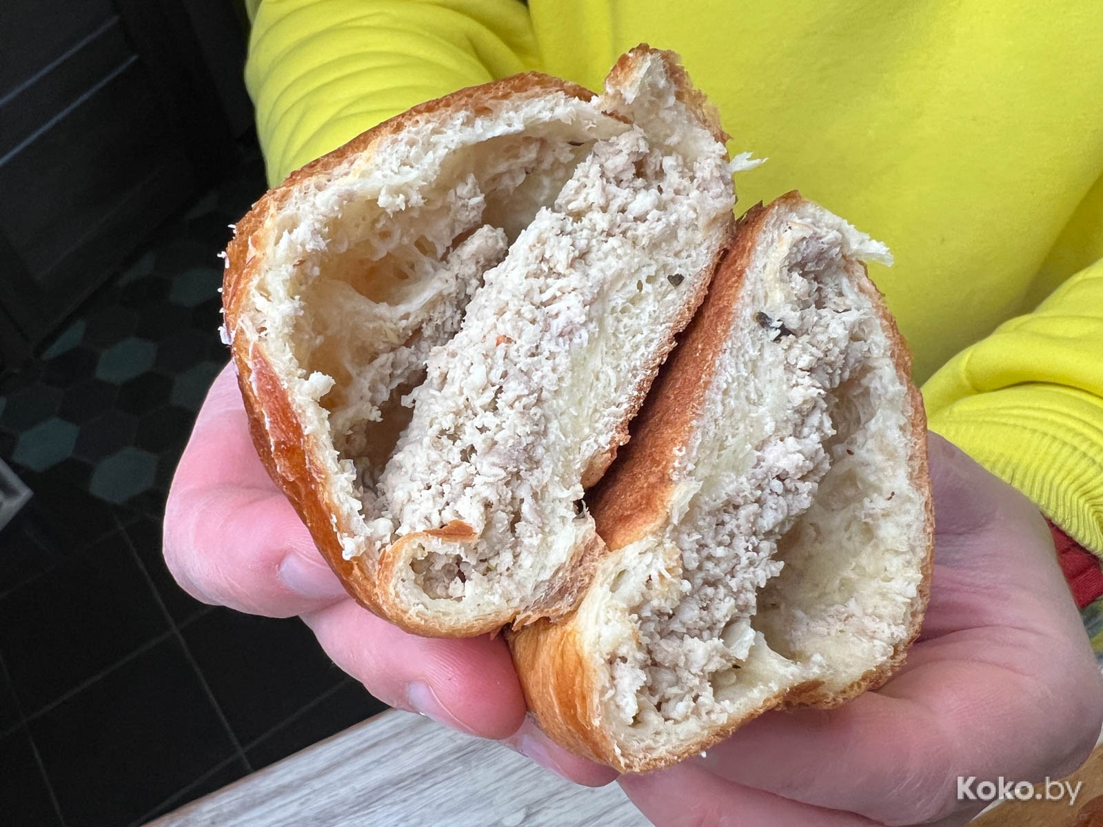 В тесто напихали десять разных начинок, от классики с яйцами до с тунцом в шпинате, стоит одна штука от 2 до 6byn за морской с лососем. Тут же и пиво есть с их пивоварни, кофе только из автомата, ну такое.