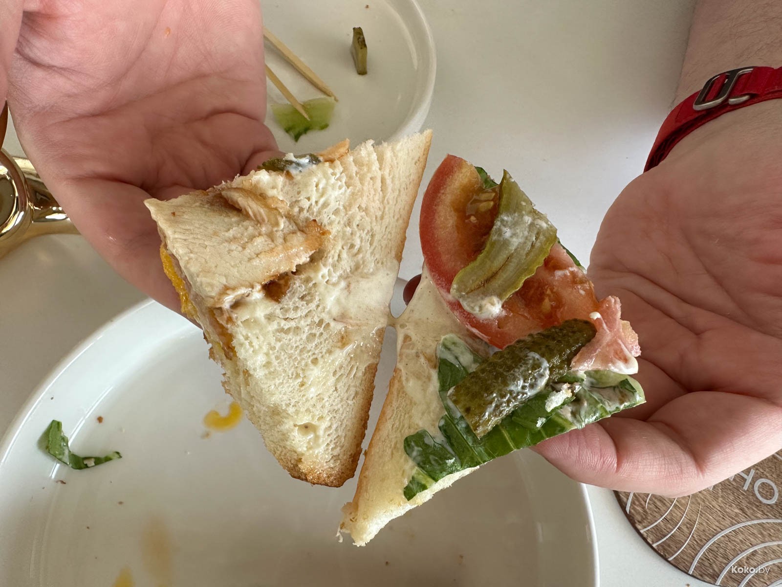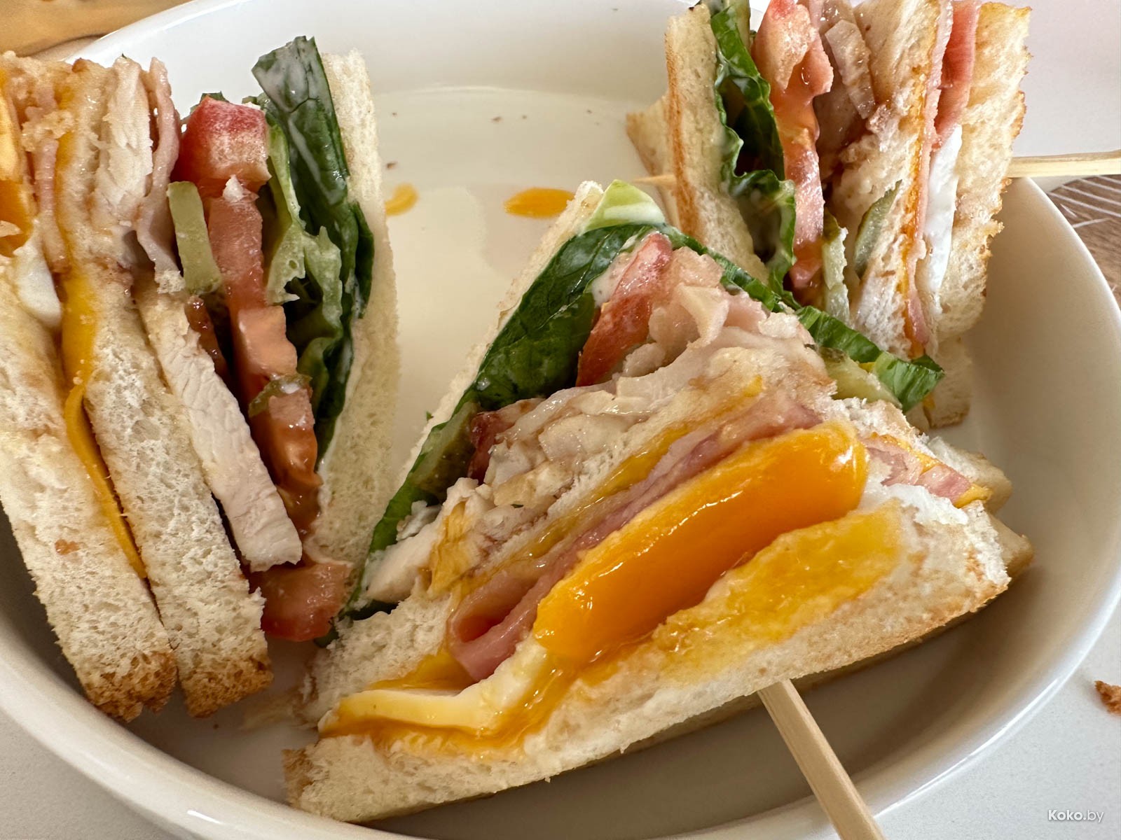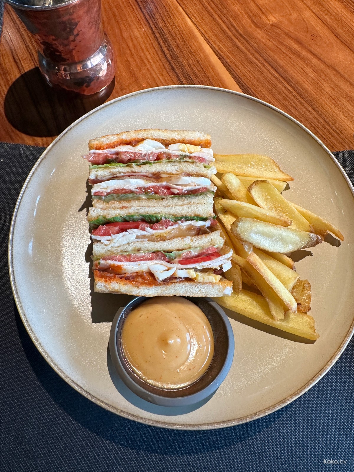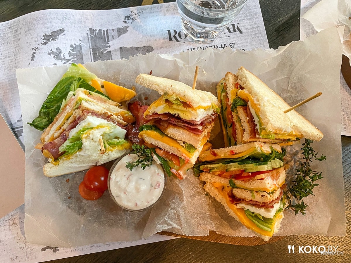 Царский клаб-сэндвич за 18byn с соусом на завтрак в «Роял Оук».