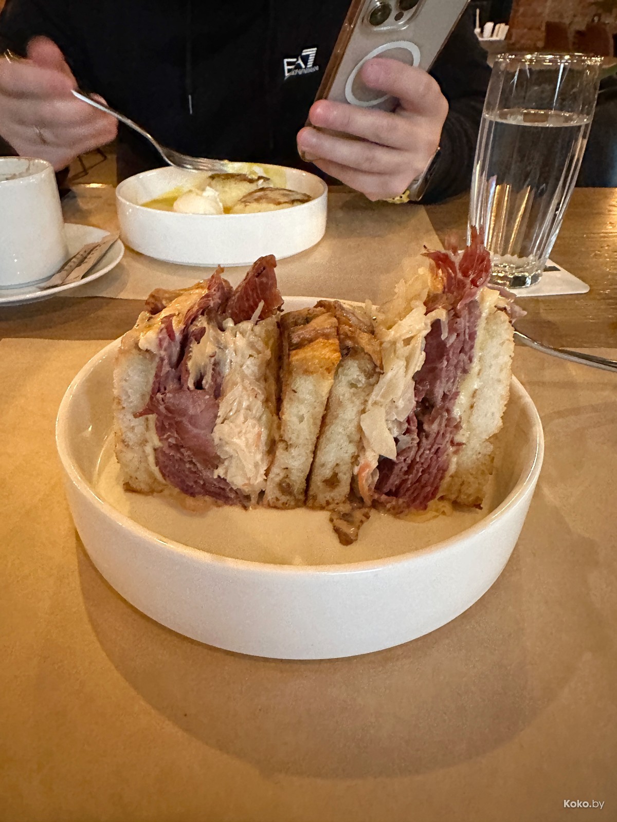Рубен сэндвич с пастрами и капустой в «Мишель» на завтрак за 25byn.