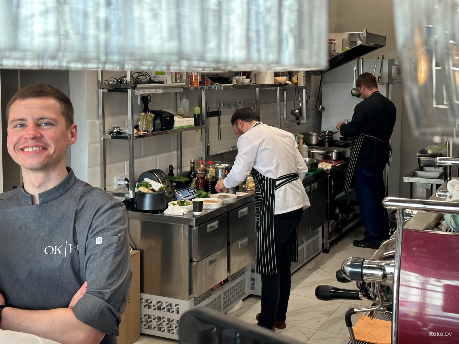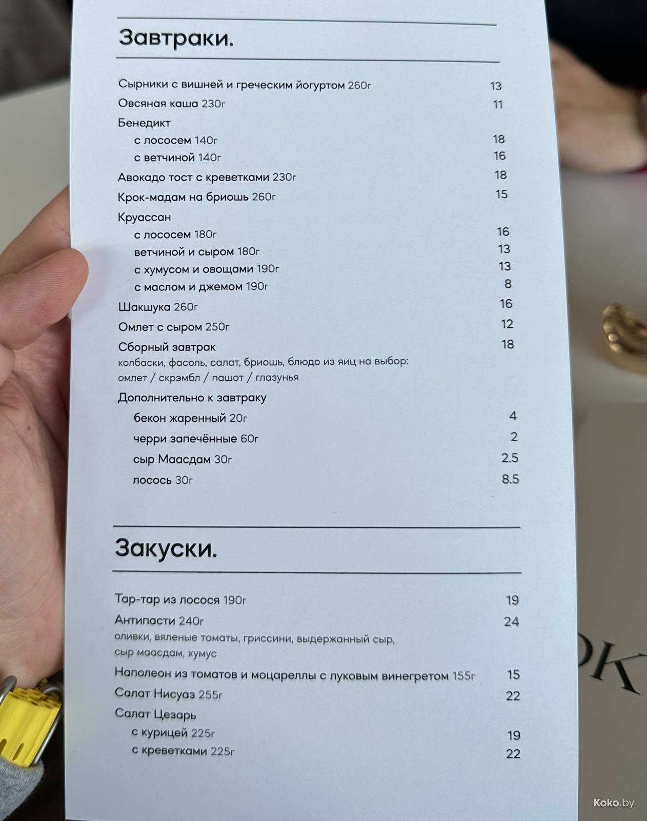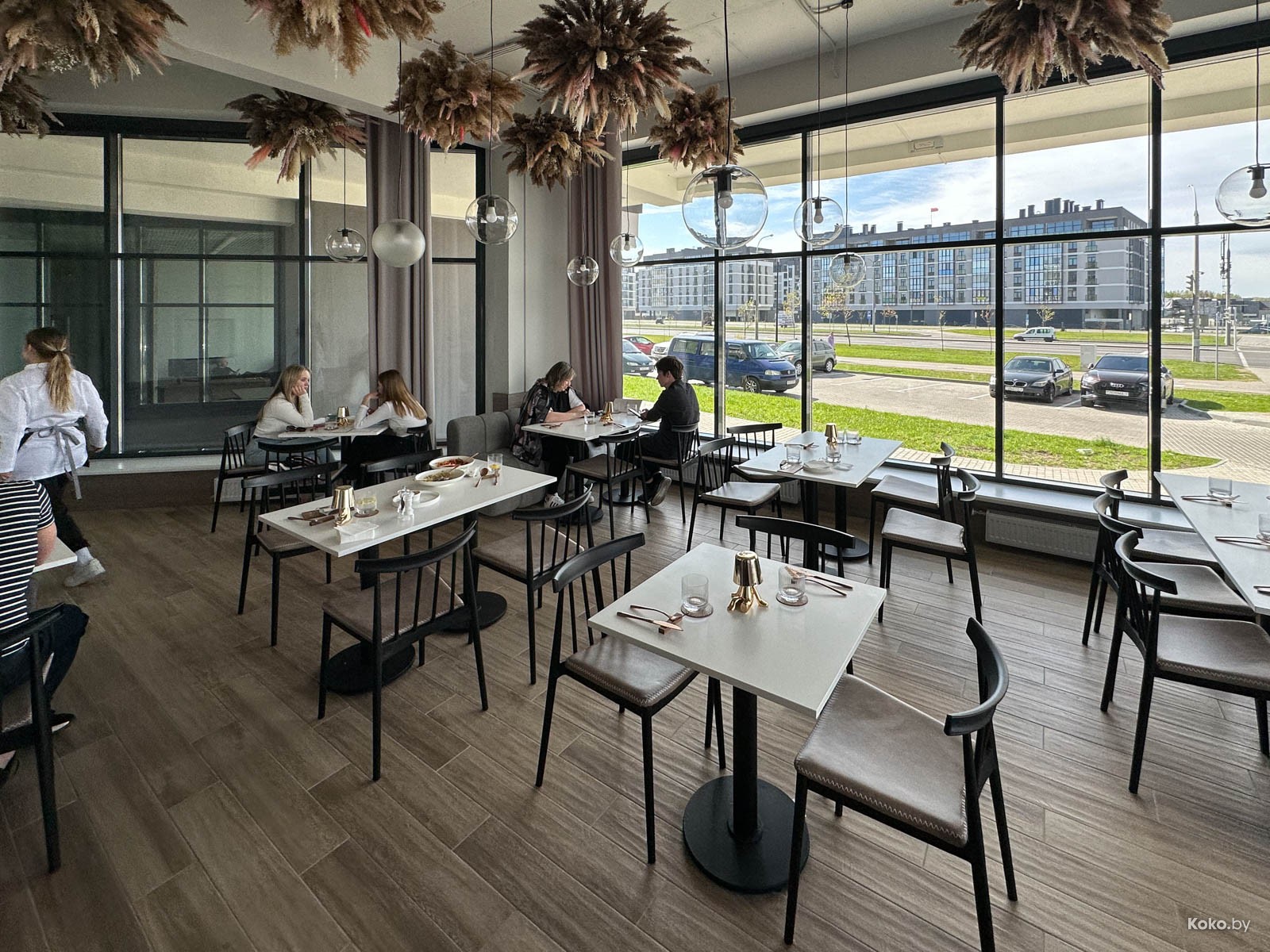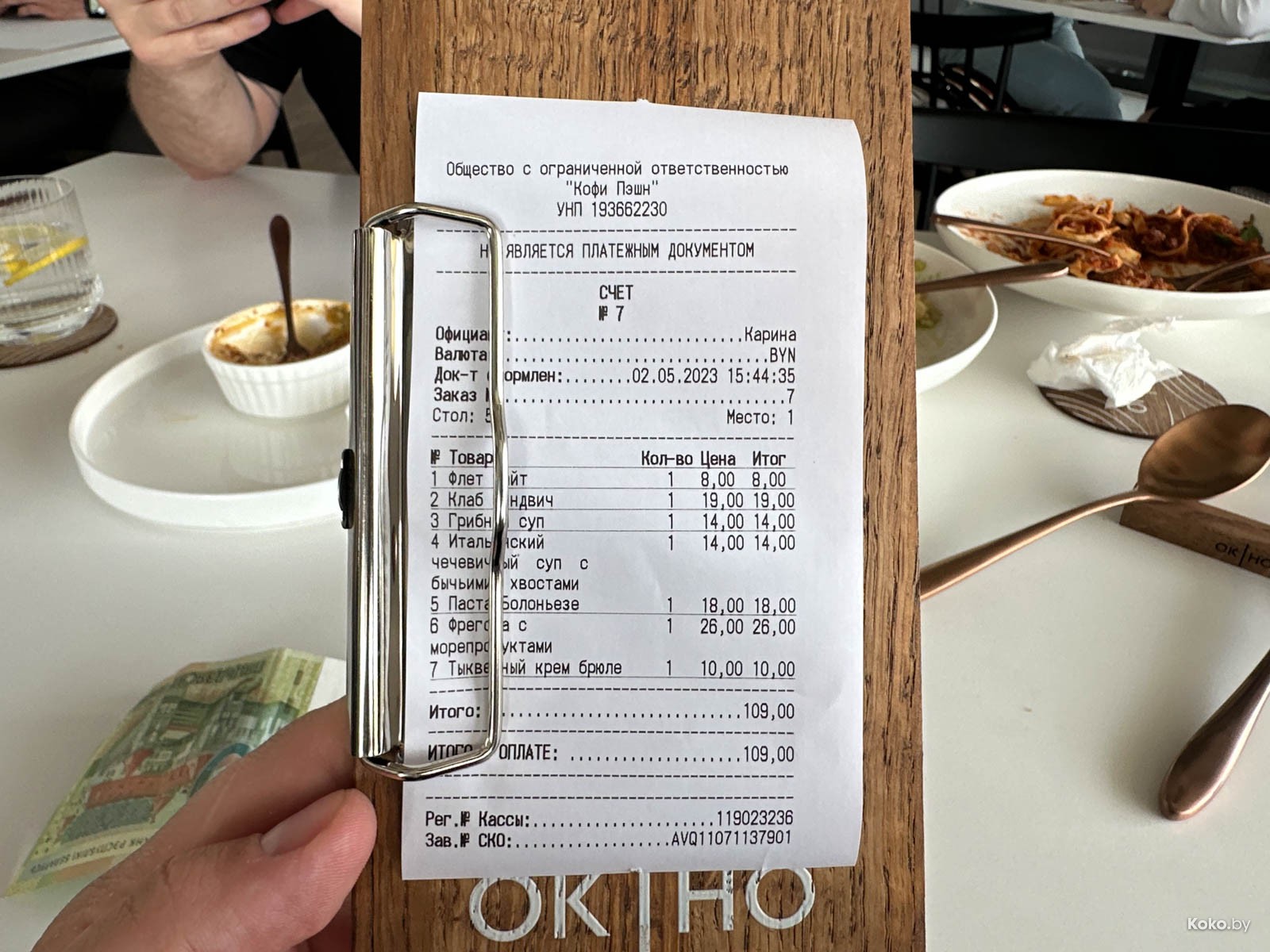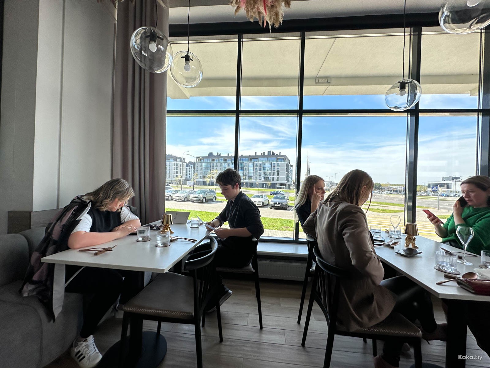 Скрафтили его на углу мини-жилого комплекса из двух зданий «Монтерей» по 1800 американских бумажек за квадрат, через дорогу от «Олимпик Парка». Каким-то непонятным случаем сеть кофеен «Окно» с обжаркой зерна «Рост.бай» мутировало в небольшое бистро с завтраками по утрам и европейскими блюдами на ужин. Цены, как у всех приличных: позавтракать с кофе обойдётся в 25byn, поужинать - около 30byn, если экономно пастой или супом с салатом.