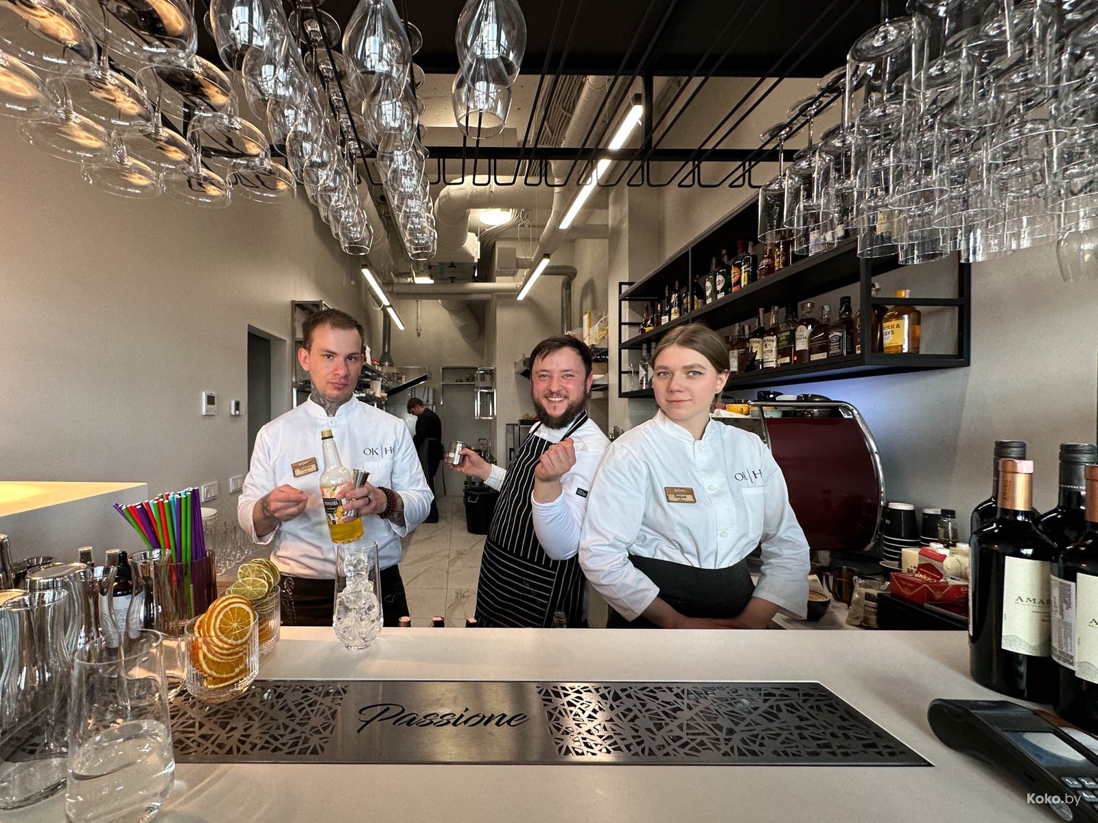 Вина льют от 11 до 18byn за бокал, игристое по 13byn, коктейли от 16byn за уважаемый Эспрессо Мартини, до 22byn за Порнстар, надеюсь с маракуйей. Вкусный флэт - 8byn, бутылка Короны - за лютейшие 12byn.