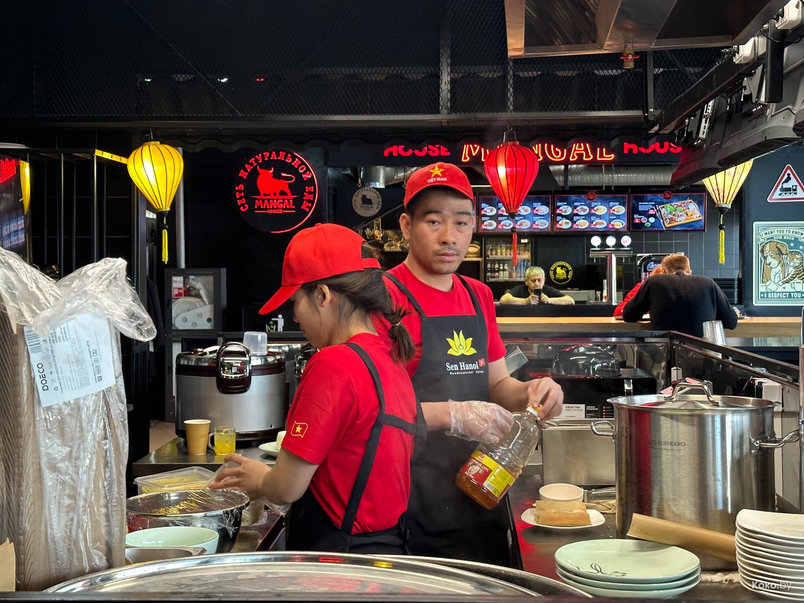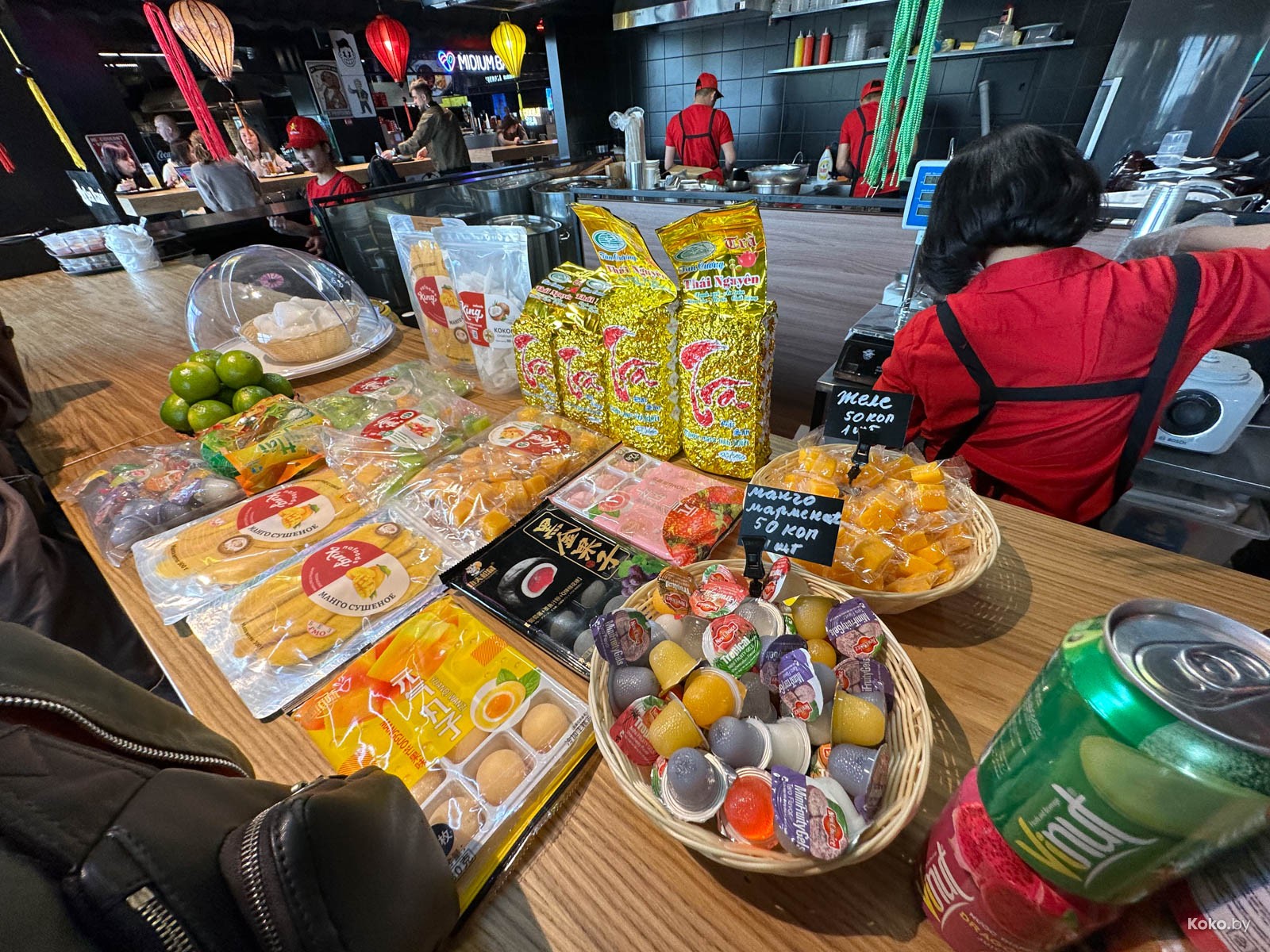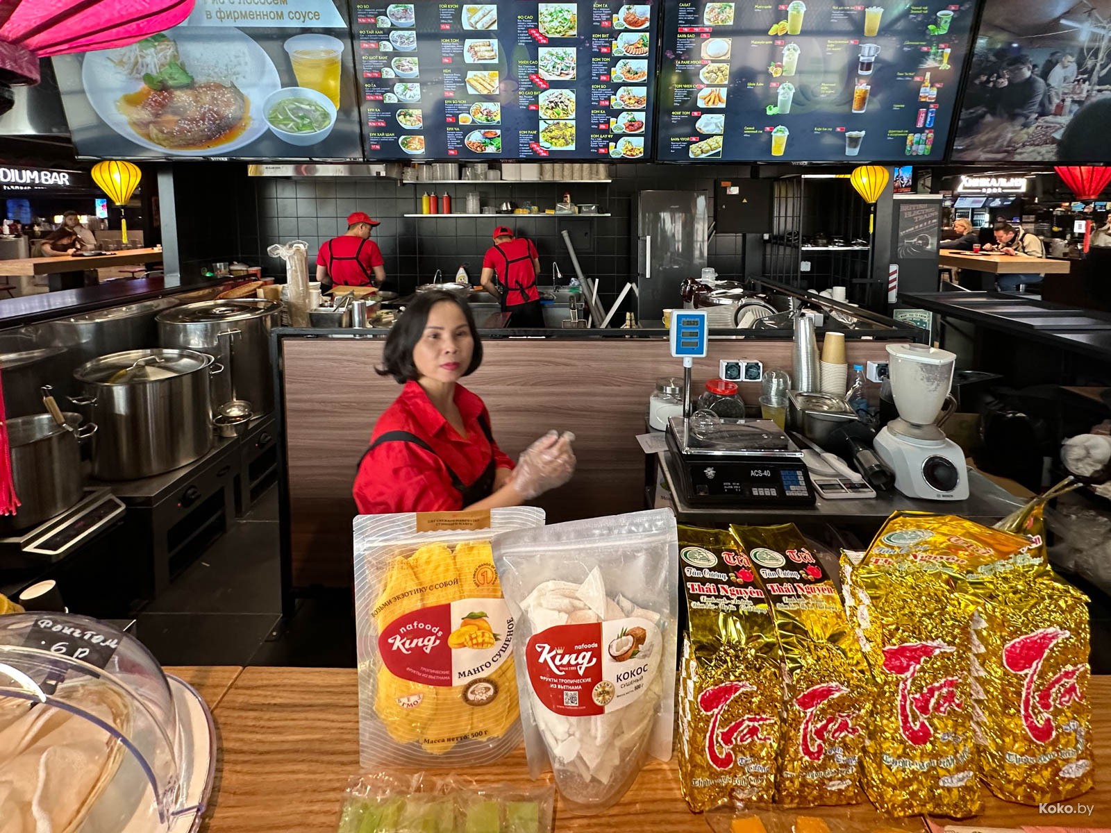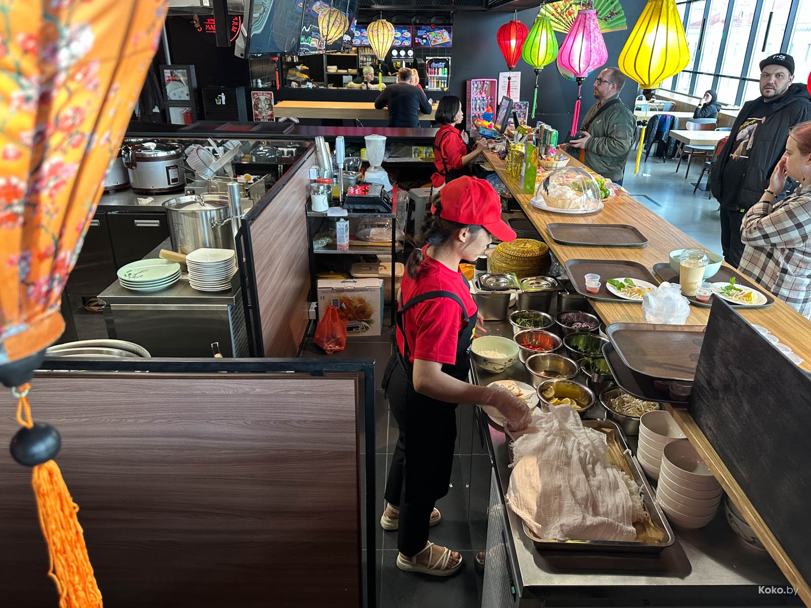 Новый корнер находится на четвёртом этаже в ТРЦ «Галилео» среди ещё двадцати разных точек. Получился стильным, пёстрым, как хвост павлина, с открытой кухней и большим меню со сложно произносимыми названиями. Кроме этого, это ещё и магазин вьетнамских товаров.