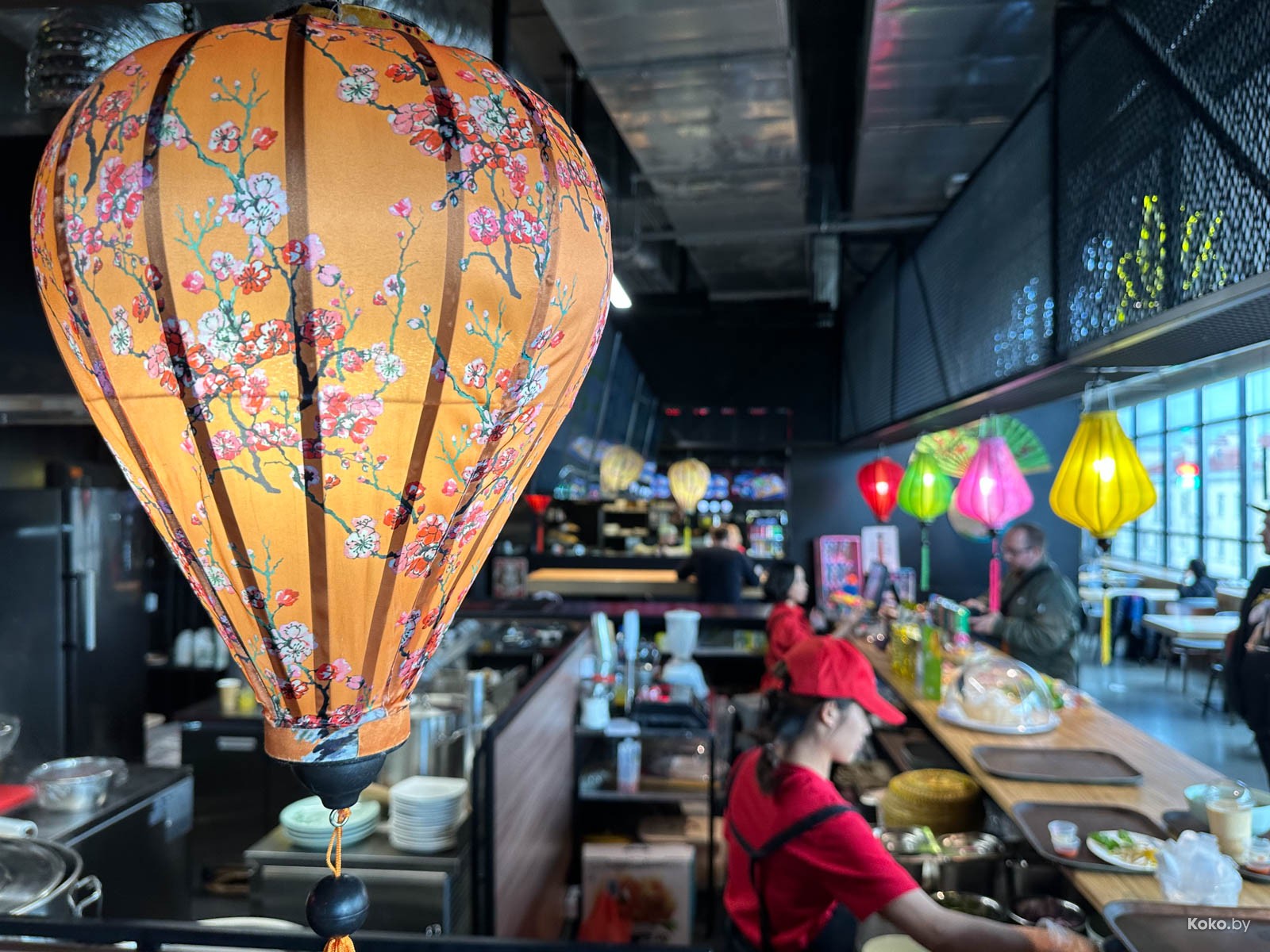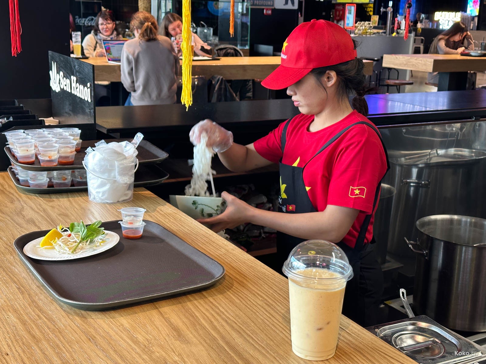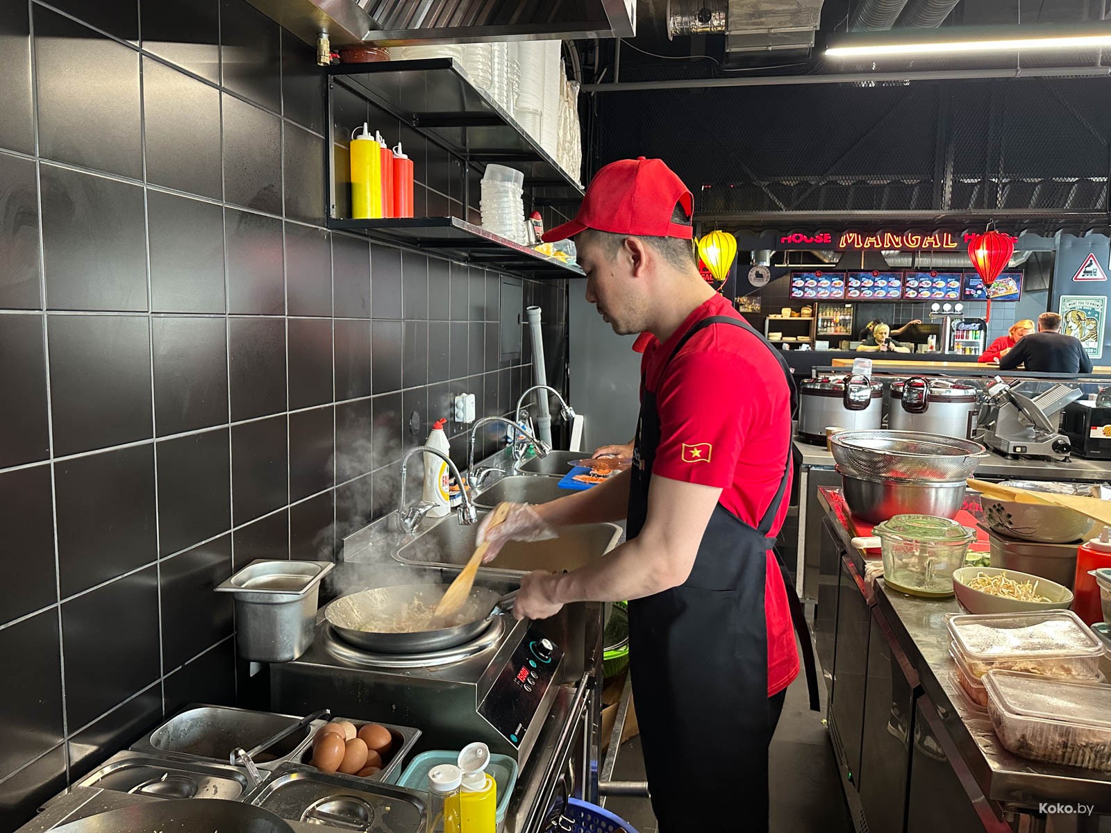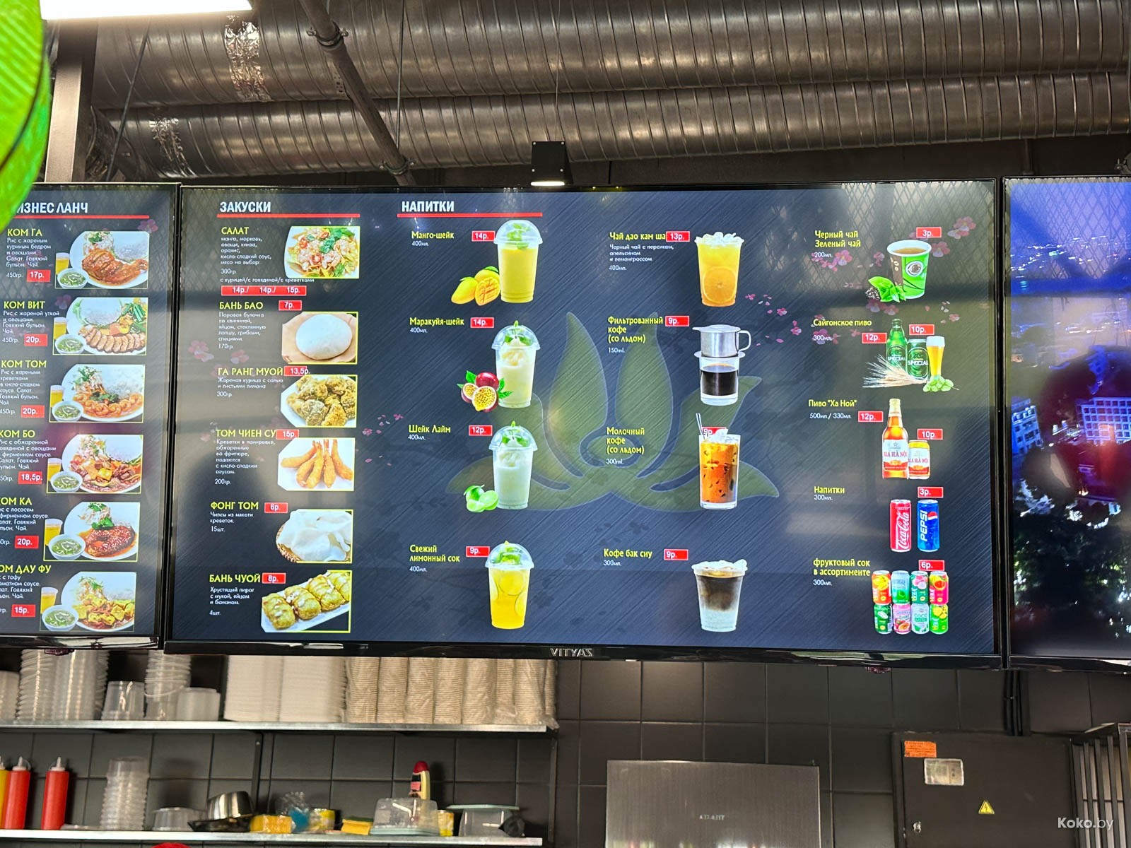 Новый корнер находится на четвёртом этаже в ТРЦ «Галилео» среди ещё двадцати разных точек. Получился стильным, пёстрым, как хвост павлина, с открытой кухней и большим меню со сложно произносимыми названиями. Кроме этого, это ещё и магазин вьетнамских товаров.