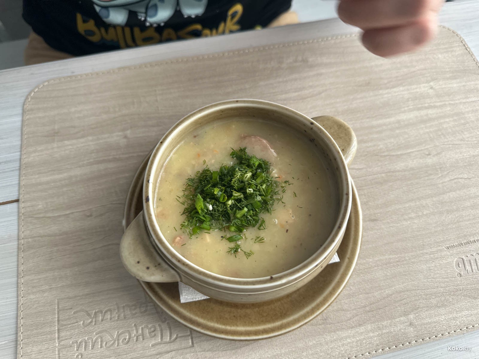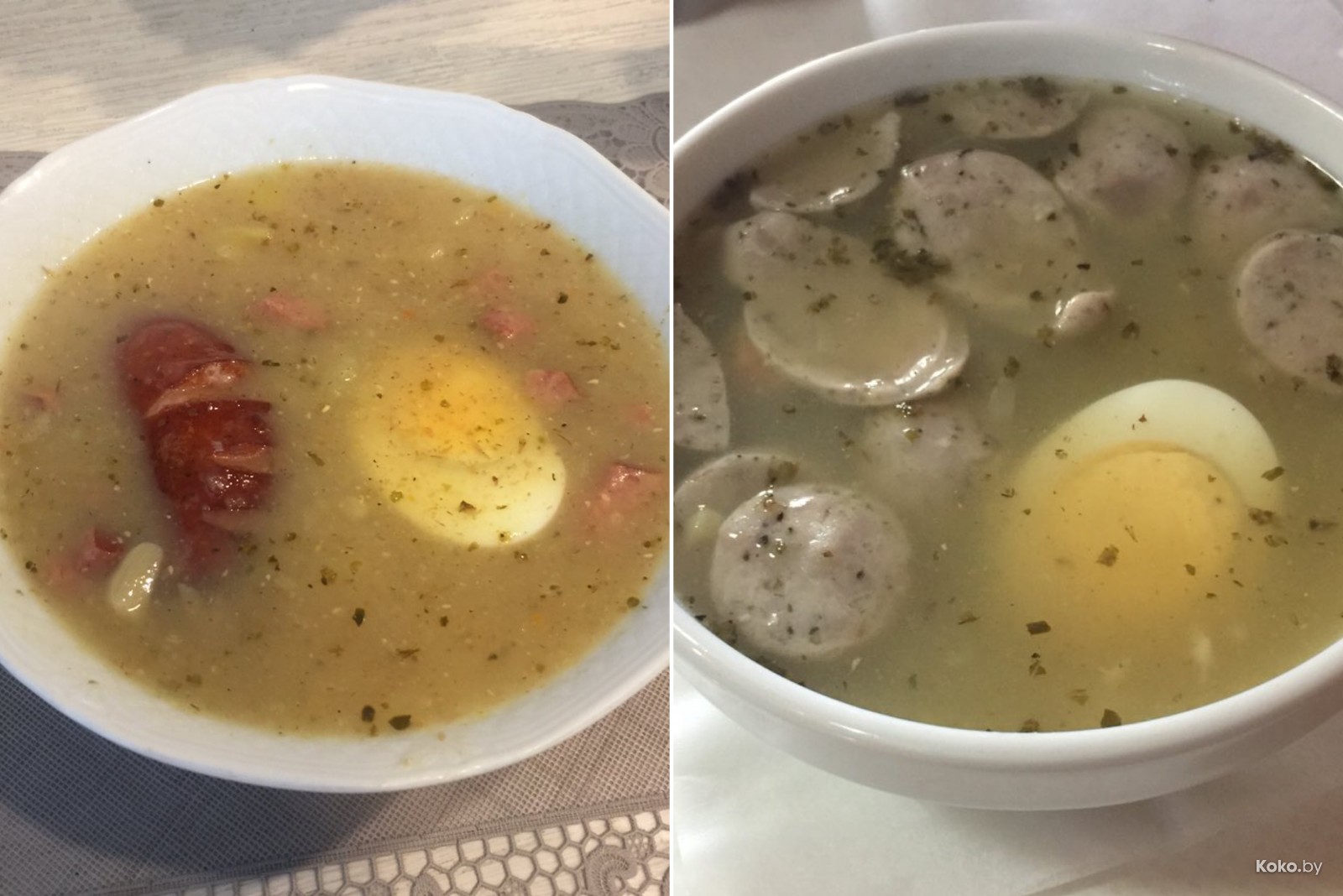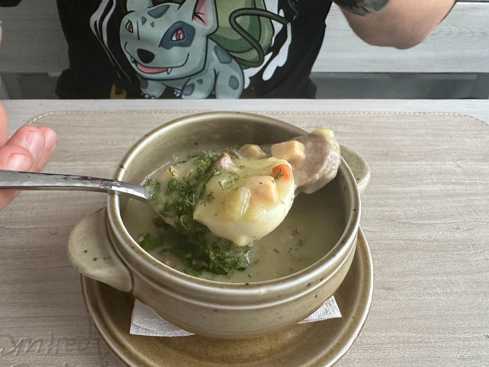 2. Традиционный жур с колбасками - 9byn. Порция сытная, вроде всё на месте, но чеснок, лавровый лист, душистый перчик как будто забыли, пресновато, нездорово густой, как картофельный суп, но съедобно. Нет!