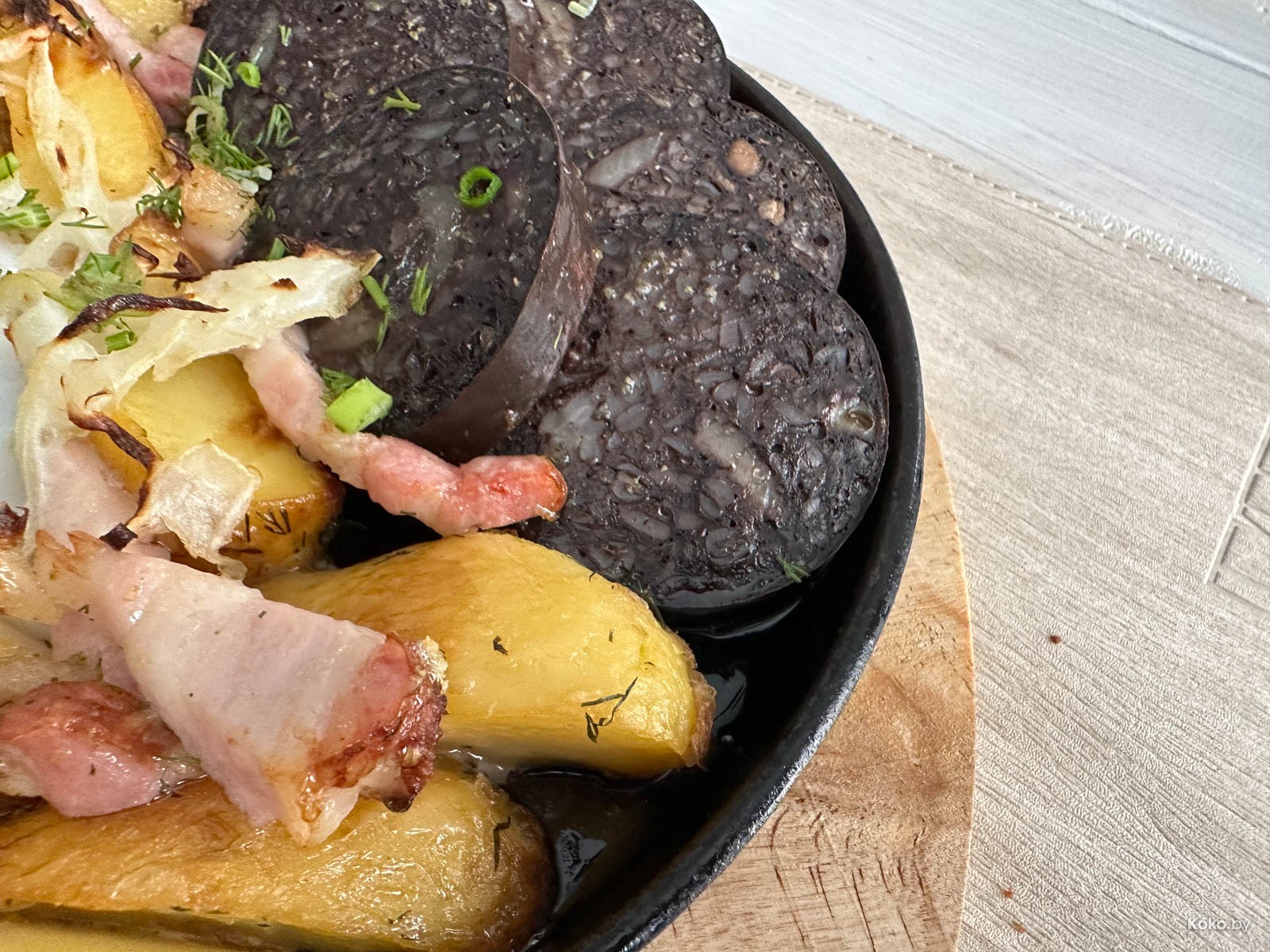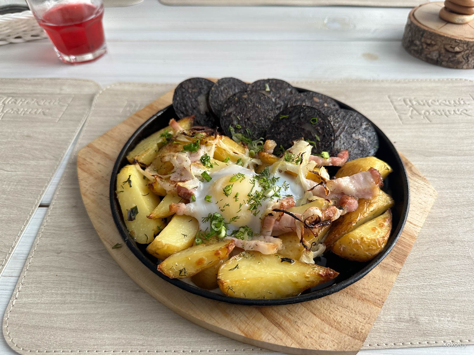 4. Если любите кровяную колбасу - то эта сковородка для вас. За 17byn запечённые кружочки кашанки с картошкой, салом и яйцом.