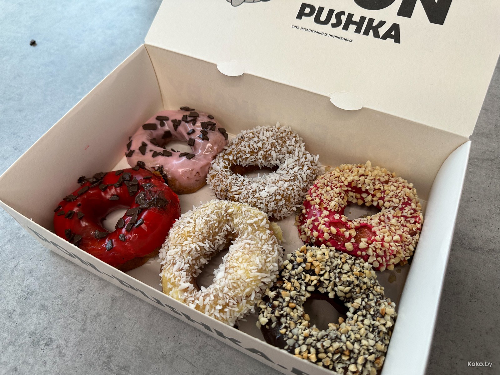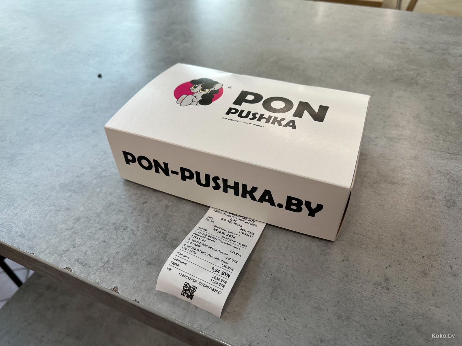 Рядом с лапшичной поставили сетевую пончиковую «Пон Пушка», коробка свежайших пончиков обошлась в 9,24byn, годно!