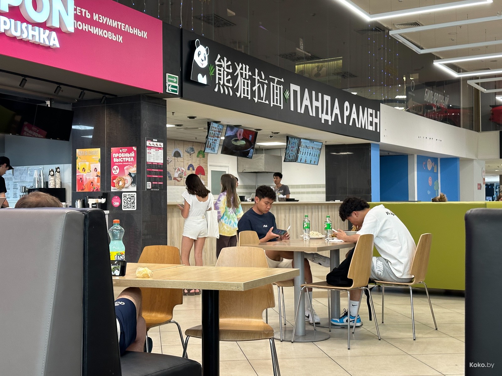 Найдёте панду на фудкорте, пожалуй, самого грустного торгового центра «Арена Сити», которому и подорожник не поможет. Видимо поэтому он появился в разделе недвижимость Реалтбая, за внимание, 216 272 400 наших рублей или 74 000 000 американских долларов. Время обеда, людей на фудкорте практически нет, как и персонала в «Панда рамен». Оказалось, китайцы работают по домашней системе, т.е., когда захотят. Не, общепит так жить не должен!