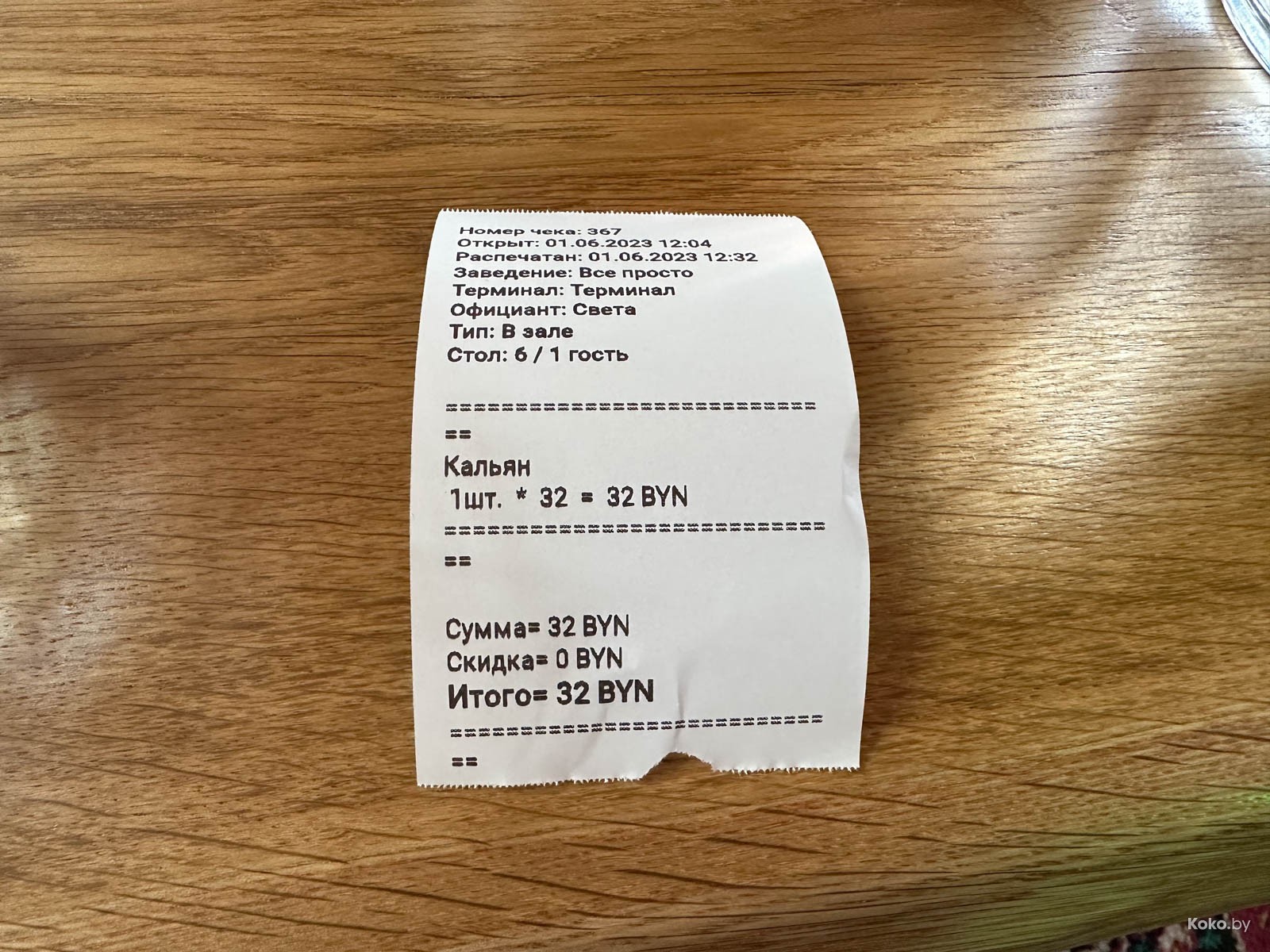 По меню дым - 40byn и это пздц дорого, в чеке - 32byn. Определитесь!