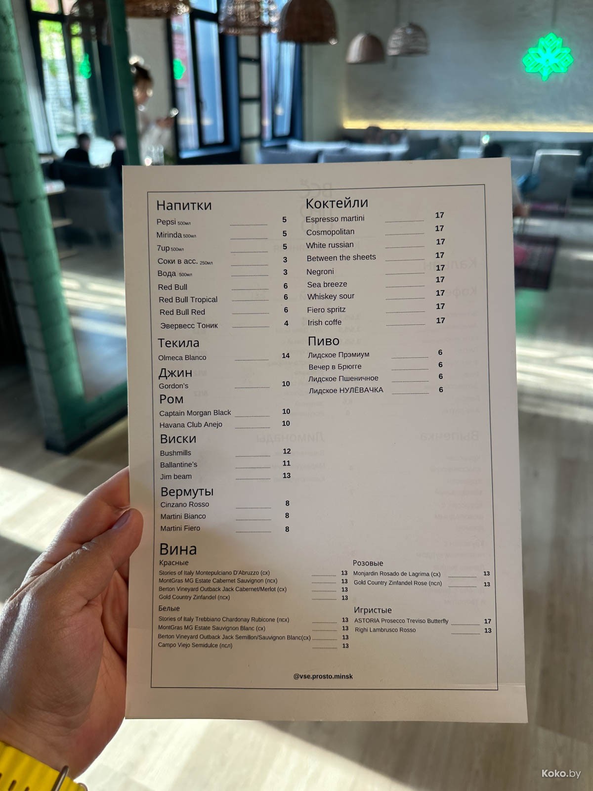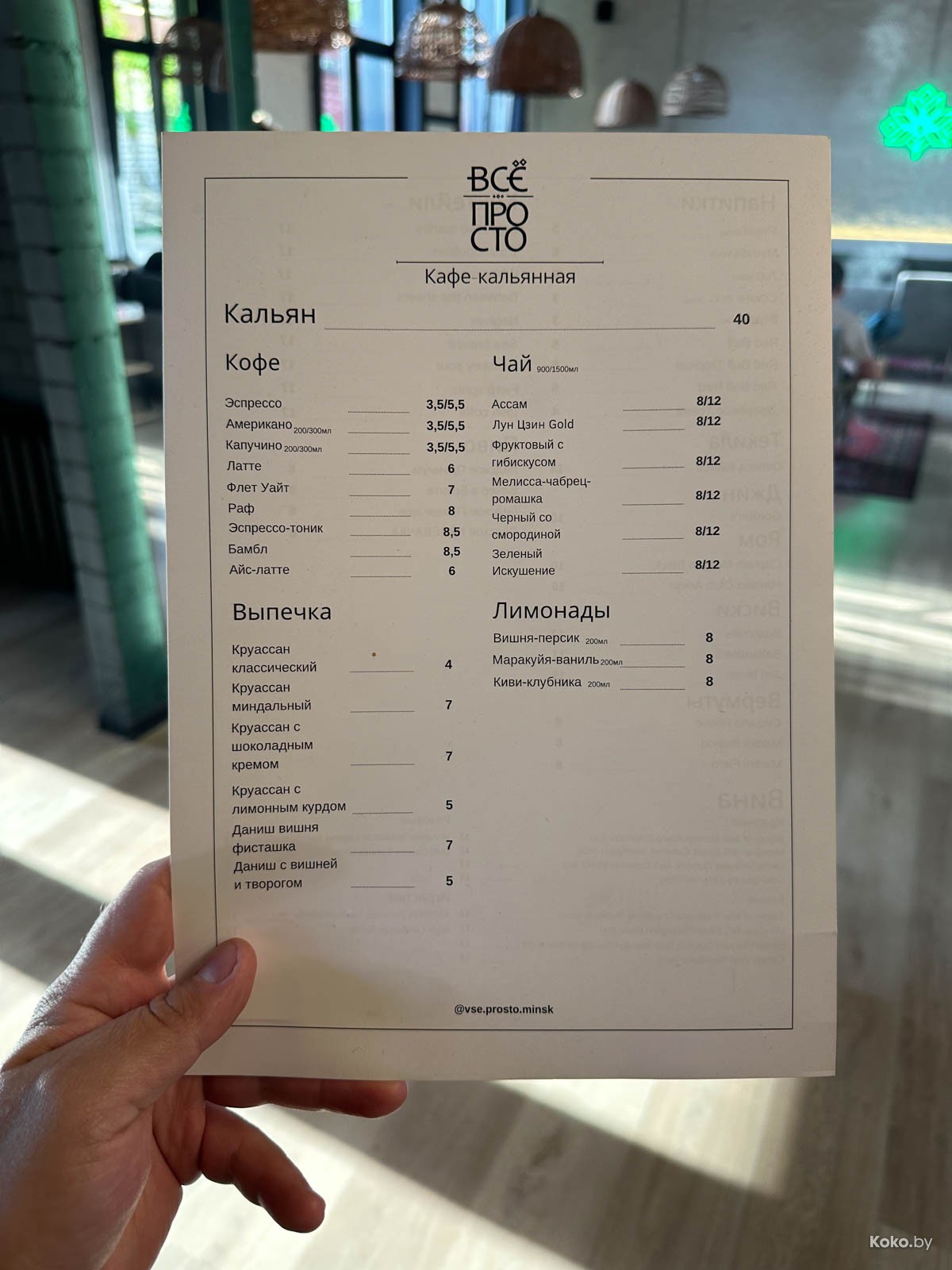 Всё просто: кофе с круассанами, коктейли по 17byn, годный кальян за 40byn и бесплатная вода. Просто, но ничего непонятно. Их главный козырь - лайтовая атмосфера, которая зайдёт фрилансерам.