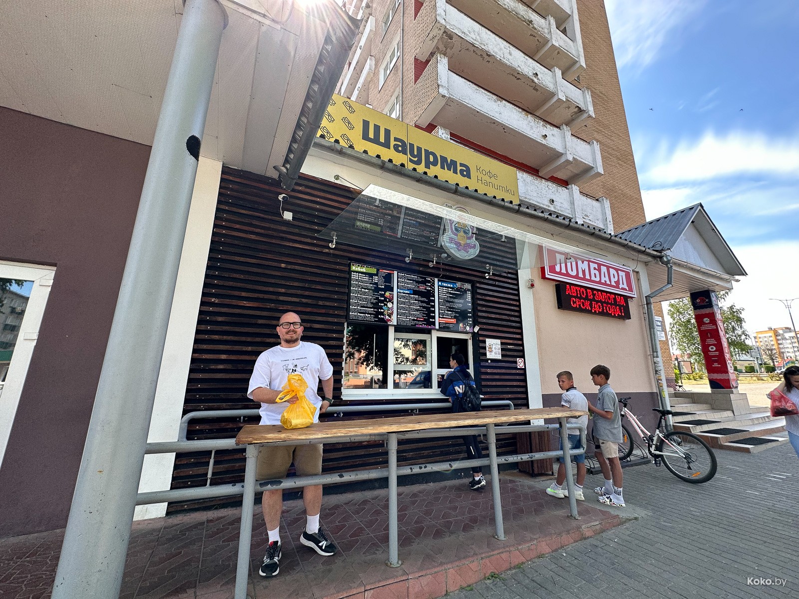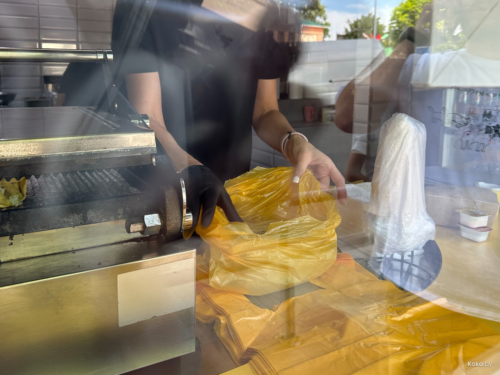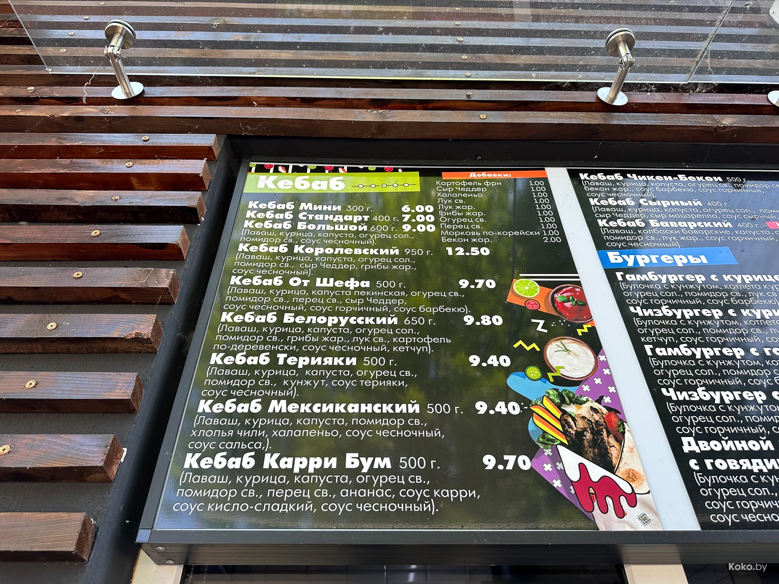 Порой в маленьких городах встречается крайне интересный фастфуд, как это было с очередями за кировскими смаженками, смиловичскими чебуреками, молодечненской пингвин-пиццей, кобринским мороженым, пинскими бургерами и тд. Время обеда, нашли пару сомнительных суши-баров, сауну, окно с бургерами и шаурмячную, где на чистой кухне три девочки мясо в лаваш крутили. Выбор сделан.
