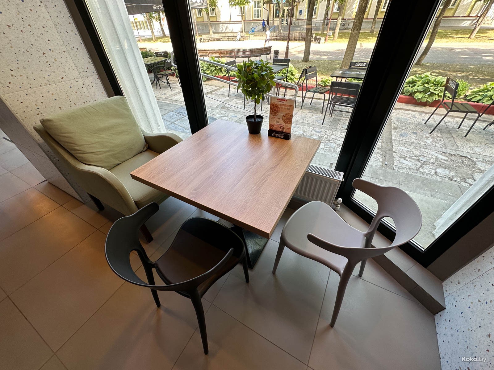 Пиццерия явно не новая, но нас попросили посмотреть новый дизайн интерьера, которого, считай, нет, и всё-таки проверить их пиццу.