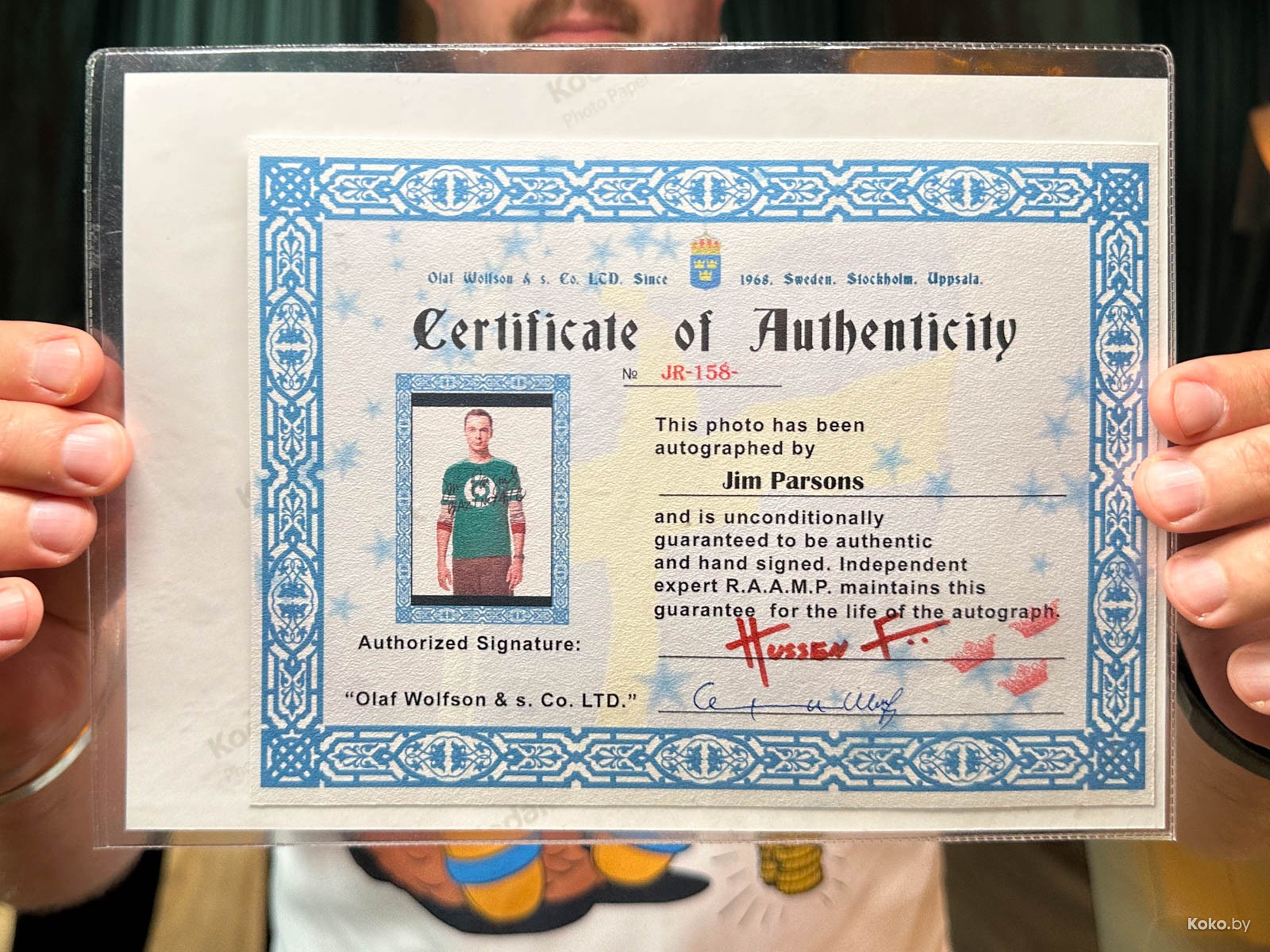 За 300byn обещали продать заламинированный автограф Шелдона.