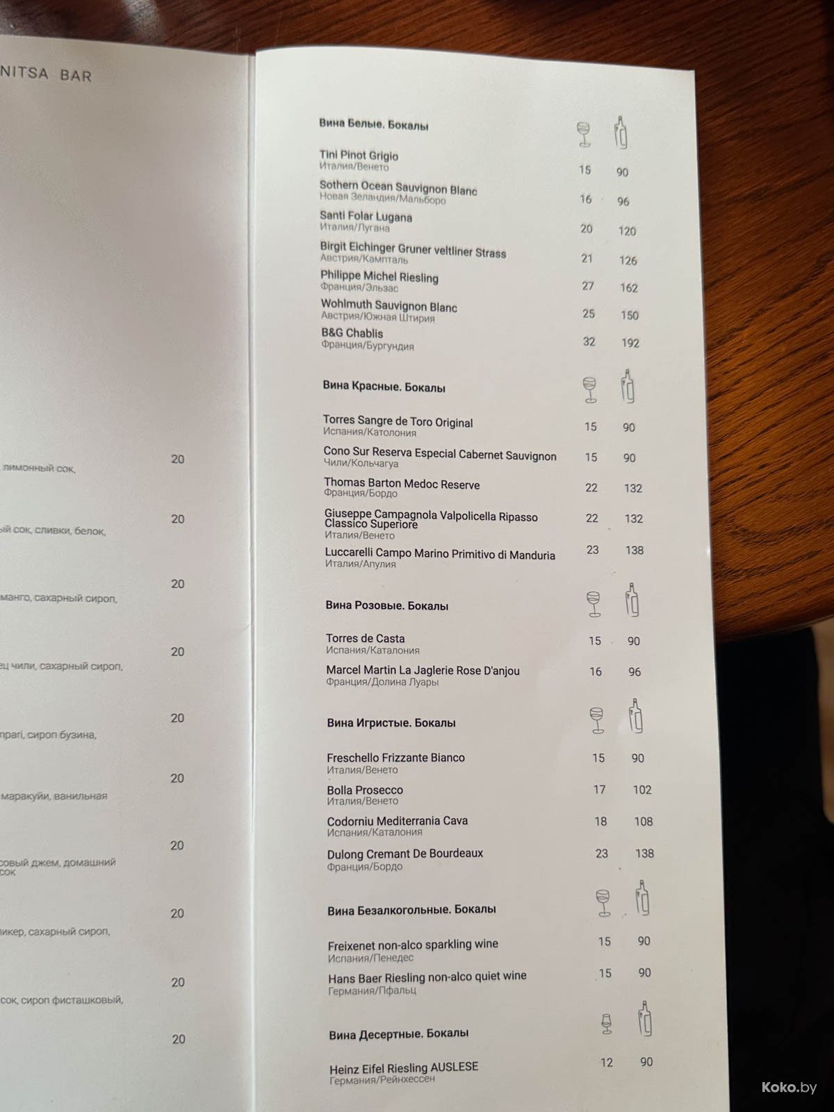 Натестили на 230byn, цены, как и в любом приличном бистро Минска. К коктейлям по 20byn привыкнуть сложно, поэтому лучше дома накатить.