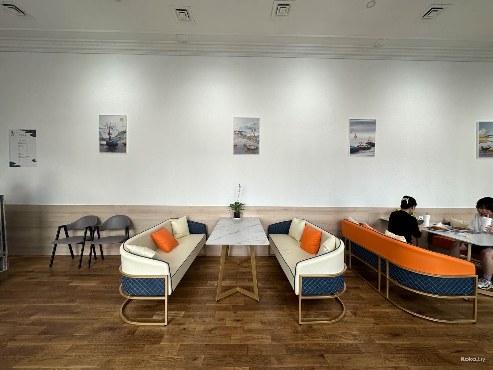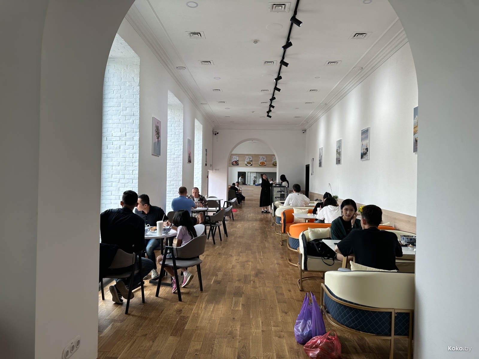 В день открытия отведал с подноса рамён за 16byn, где на 500г самодельной лапши около 400мл мягкого мясного бульона с имбирём и специями с небольшим количеством говядины. Порция, как коням!