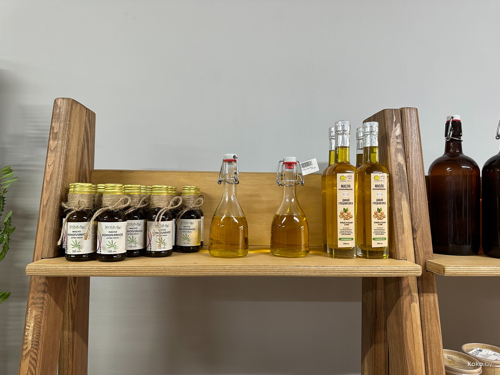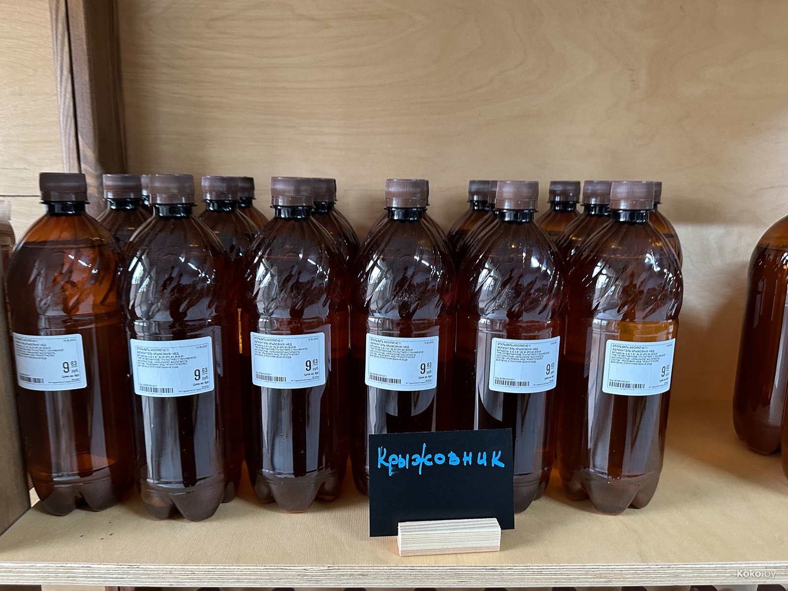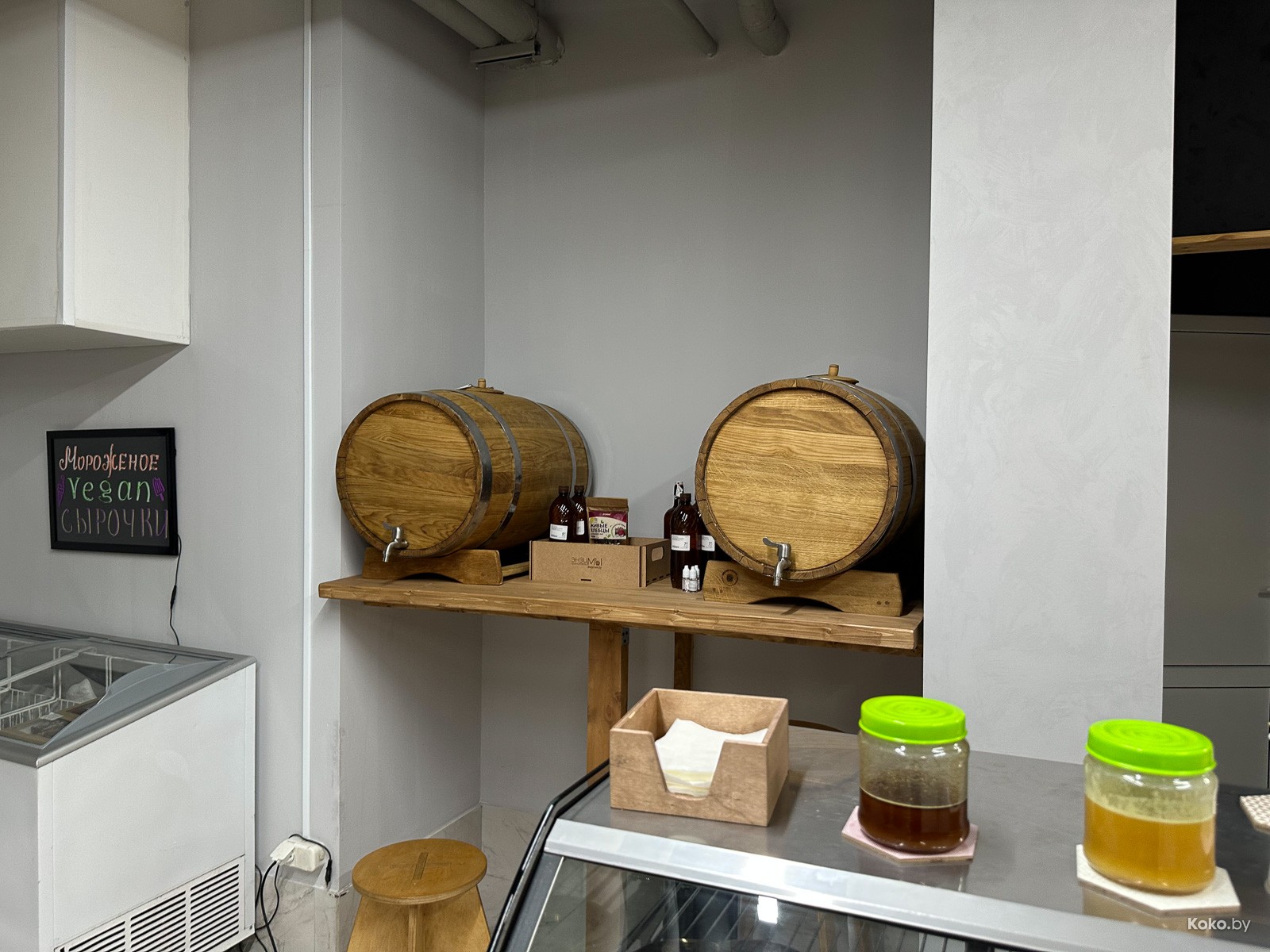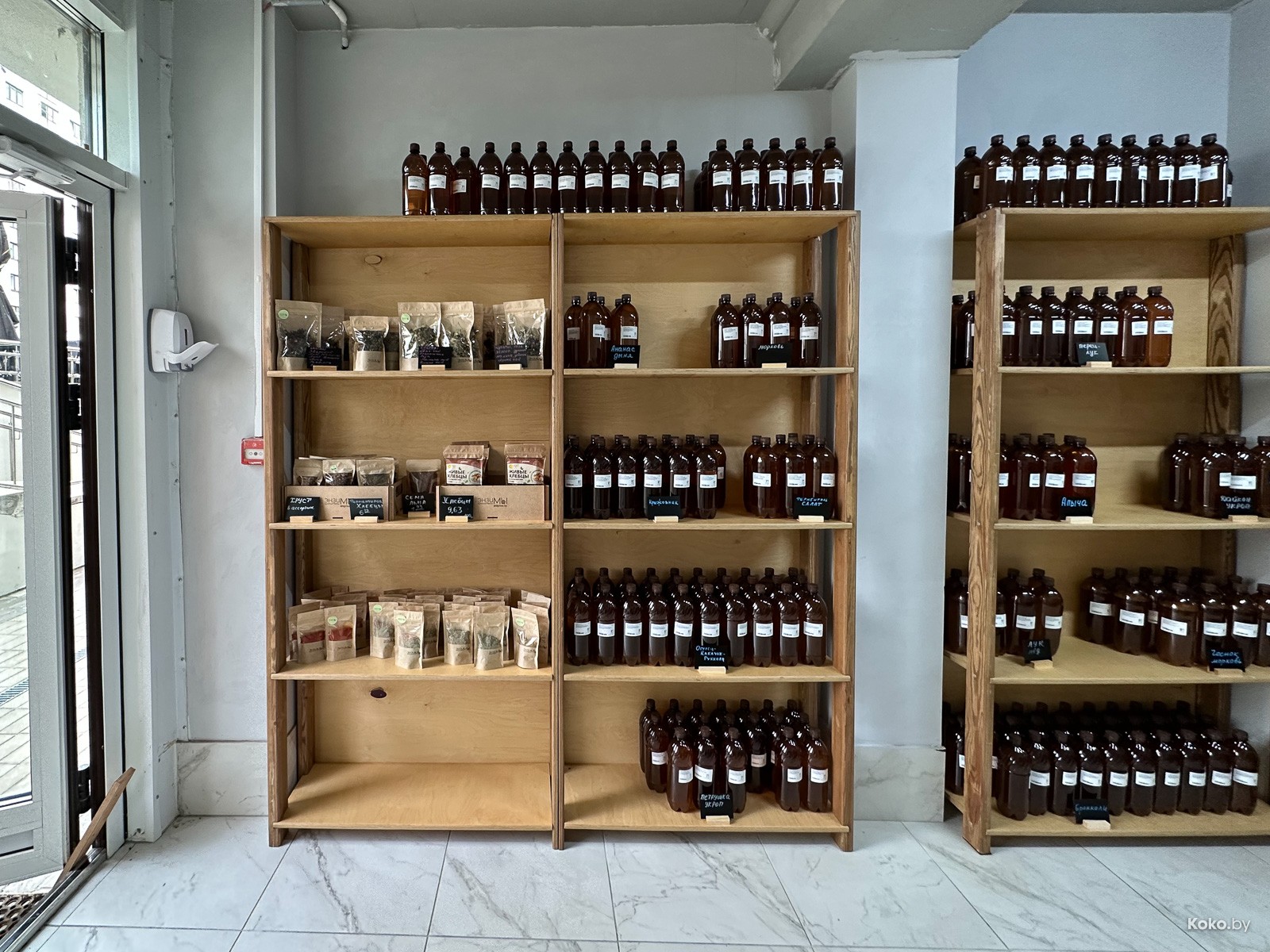 Звучит, как секта, но когда это меня останавливало. Лавка хранителей находится на цокольном этаже в «Маяке Минска», где рядом совсем недавно открыли окно выдачи годной пинсы «Аве почему-то пицца». Внутри магазина атмосфера эко-биолофта, воздух наполнен лёгким ароматом брожения, в конце барная стойка. На стеллажах, как домино, пластиковые и стеклянные бутылки, если бы не название, то решил, что заманили в очередную крафтовую разливайку.
