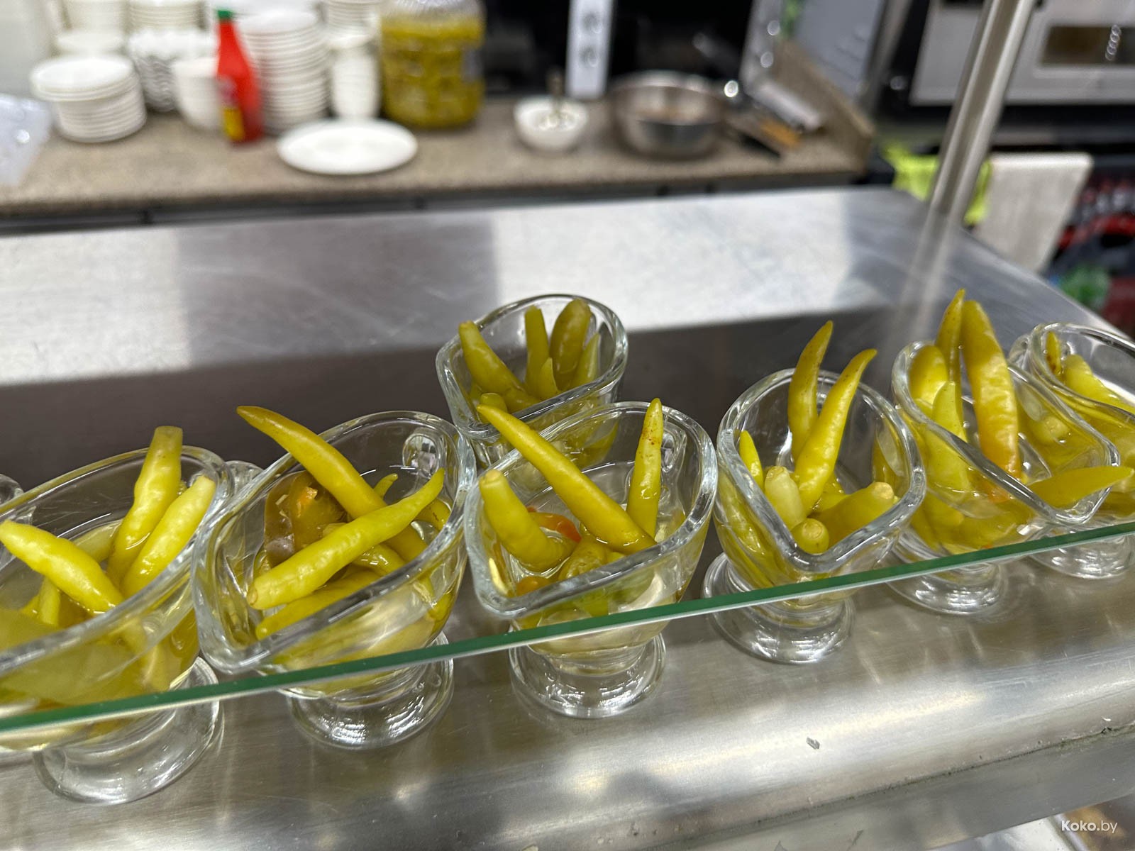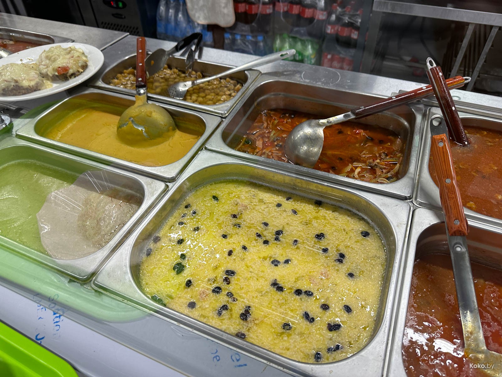 Столы быстро убирают, салфеток сколько хочешь, еда восточная с рецептами наших котлет. Из острого были только маринованные перцы.