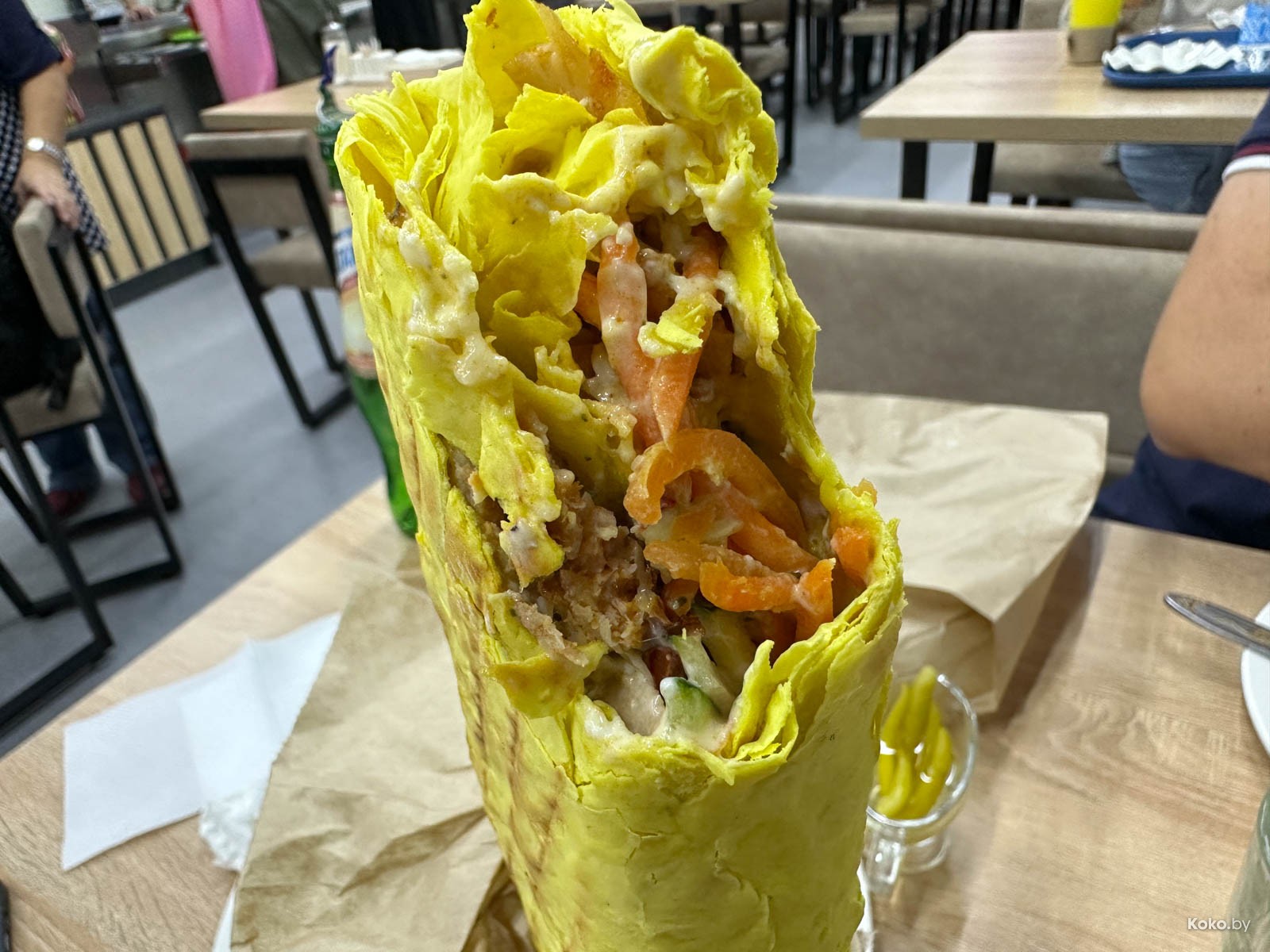 3. За 11р шаурма по рецептам Сайгонов Майи набита сочной курицей с морковкой, залита жирным майонезом в рассыпающемся в руках лаваше, на 6 кокобаев. Советую по этому обзору шав пробежаться.