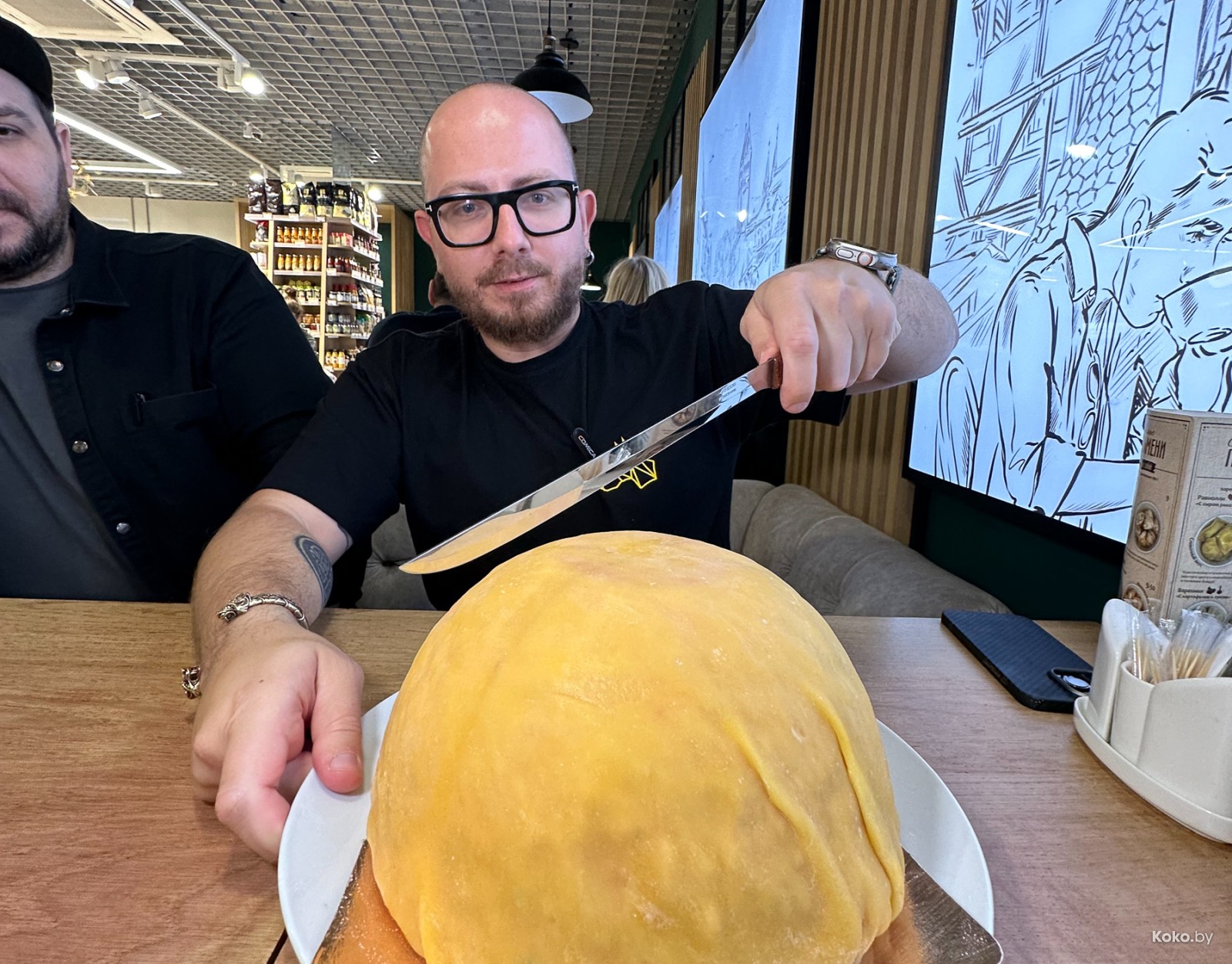 Только мы отошли от углеводной бомбы по имени Павлова, как вот опять - японский десерт весом в 4 килограмма! Готовят его по предварительной брони в магазине с кафе «Шедевры вкуса», их кондитеры способны в день лепить не более трёх-четырёх больших моти, т.к. процесс занимает около 4 часов времени. Если не знаете, что такое моти и где он самый вкусный в Минске, то рекомендую начать с нашего прошлого обзора на моти, тогда всё встанет на свои места.