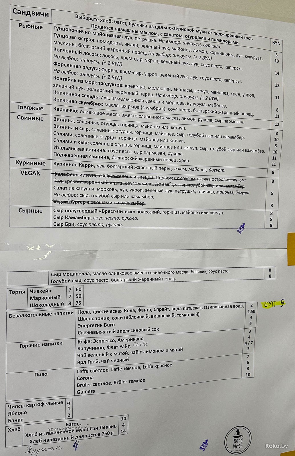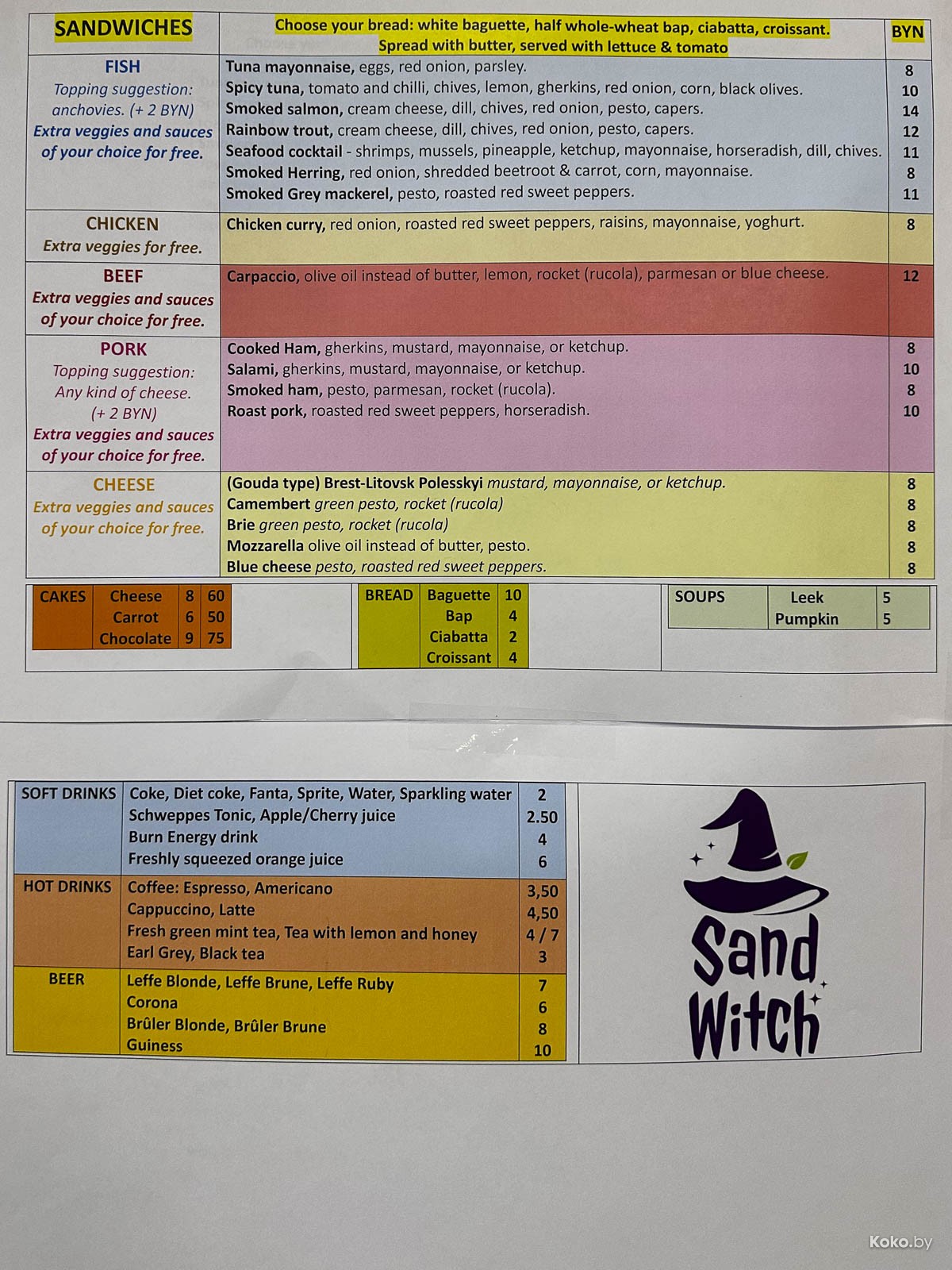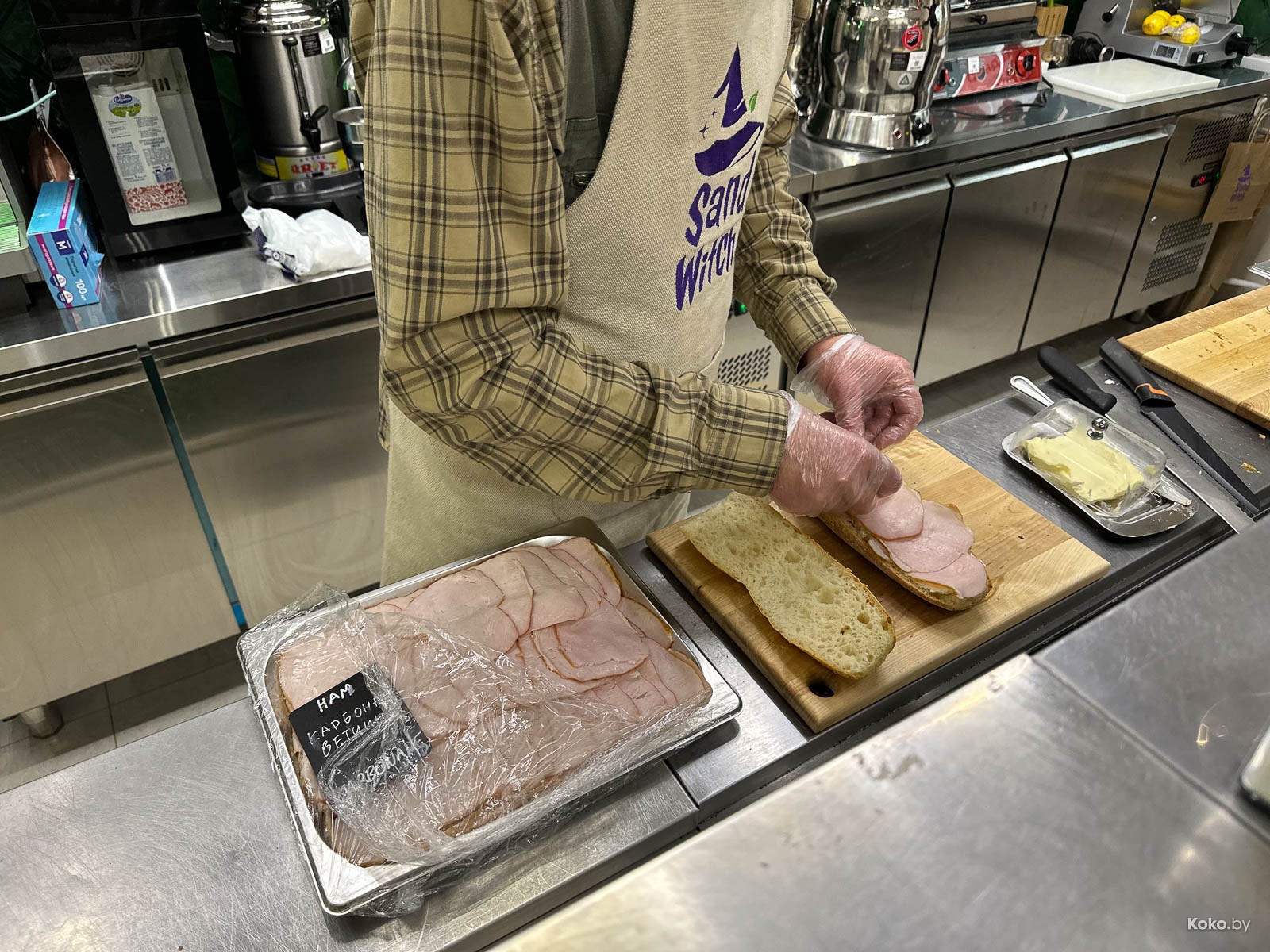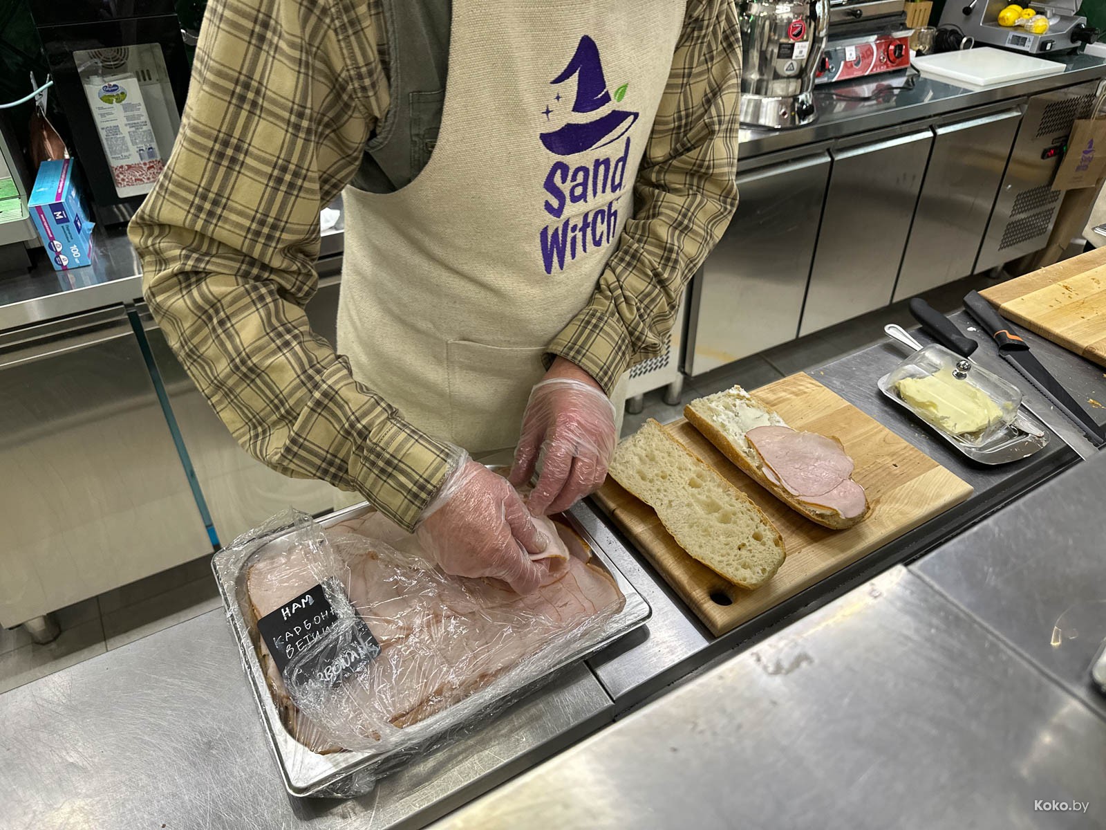 Бывший барбершоп лёгким движением руки за пару месяцев превратился в бутербродную под загадочной вывеской «Sand witch». Что в переводе, если читать членораздельно - песочная ведьма, но на деле сэндвич - бутерброд по-нашему. Их фишка - на линии сборки сотрудники из школы иностранных языков, можно поупражняться в знании языков по ходу сборки сэндвича. Сегодня готовит бельгиец, пытаюсь вспомнить французский, Месье, же не манж па сис жур.
