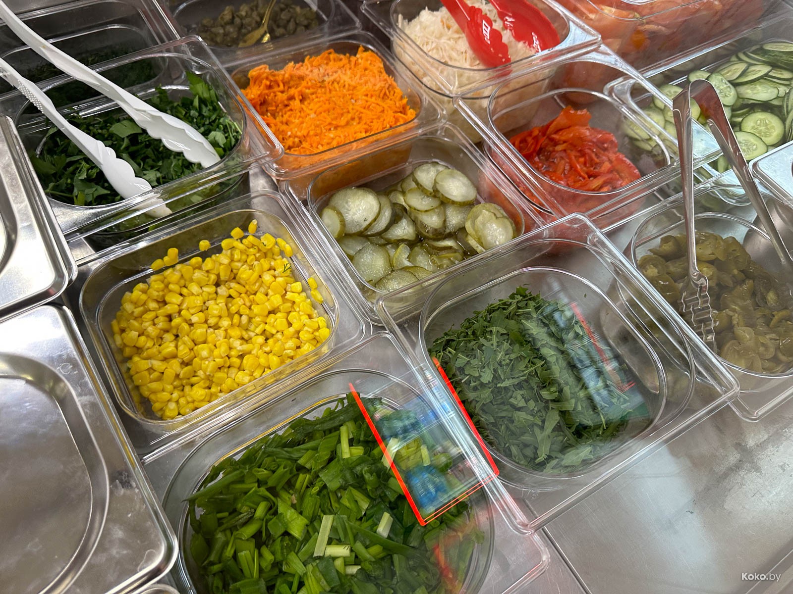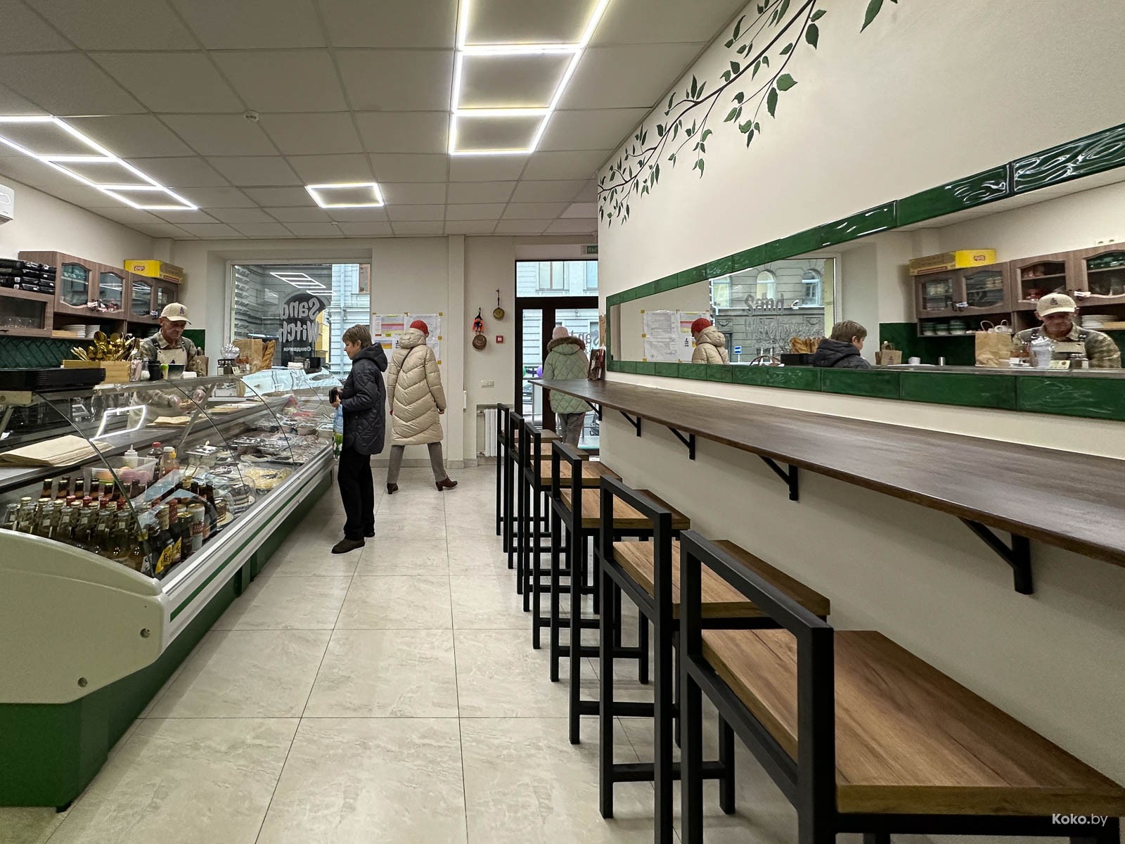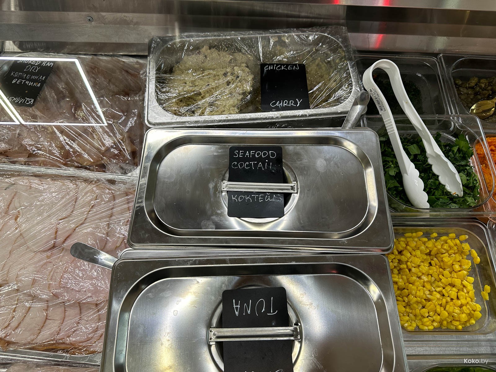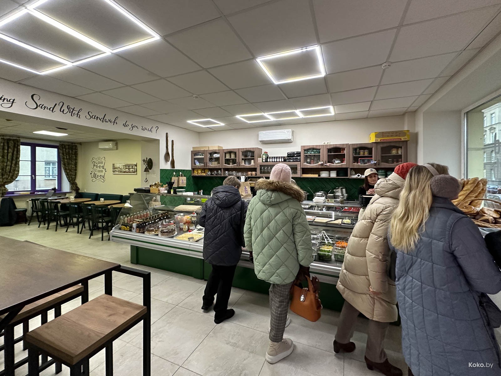 По атмосфере, как в домашней продуктовой лавке. Сборка сэндвича начинается с просмотра цен, выбора марки пекарни (Бриошь или Бро Бейкери), далее, начинка из колбас, рыбы, мяса, овощей, сыра и соусов.