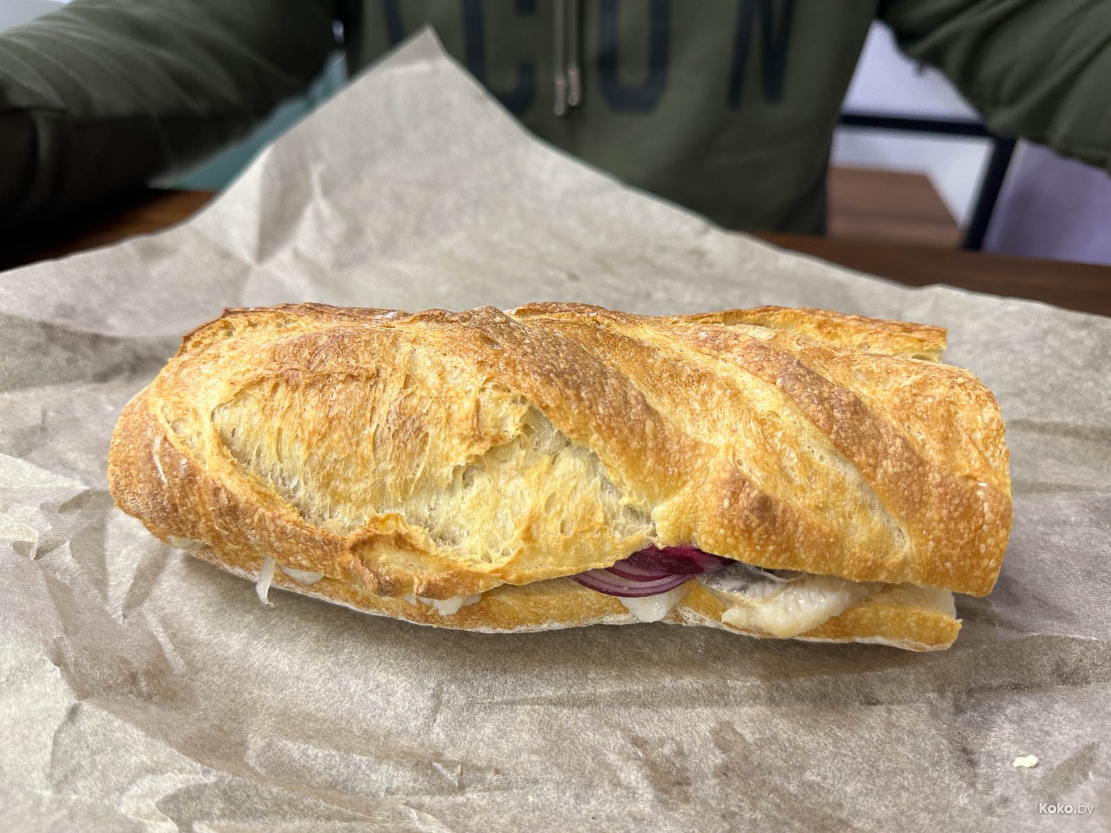 Бриошевский багет восхитительно хрустит снаружи и мягкий внутри, филе селёдки от души, но лук я бы мариновал, уж слишком он ядрёный.