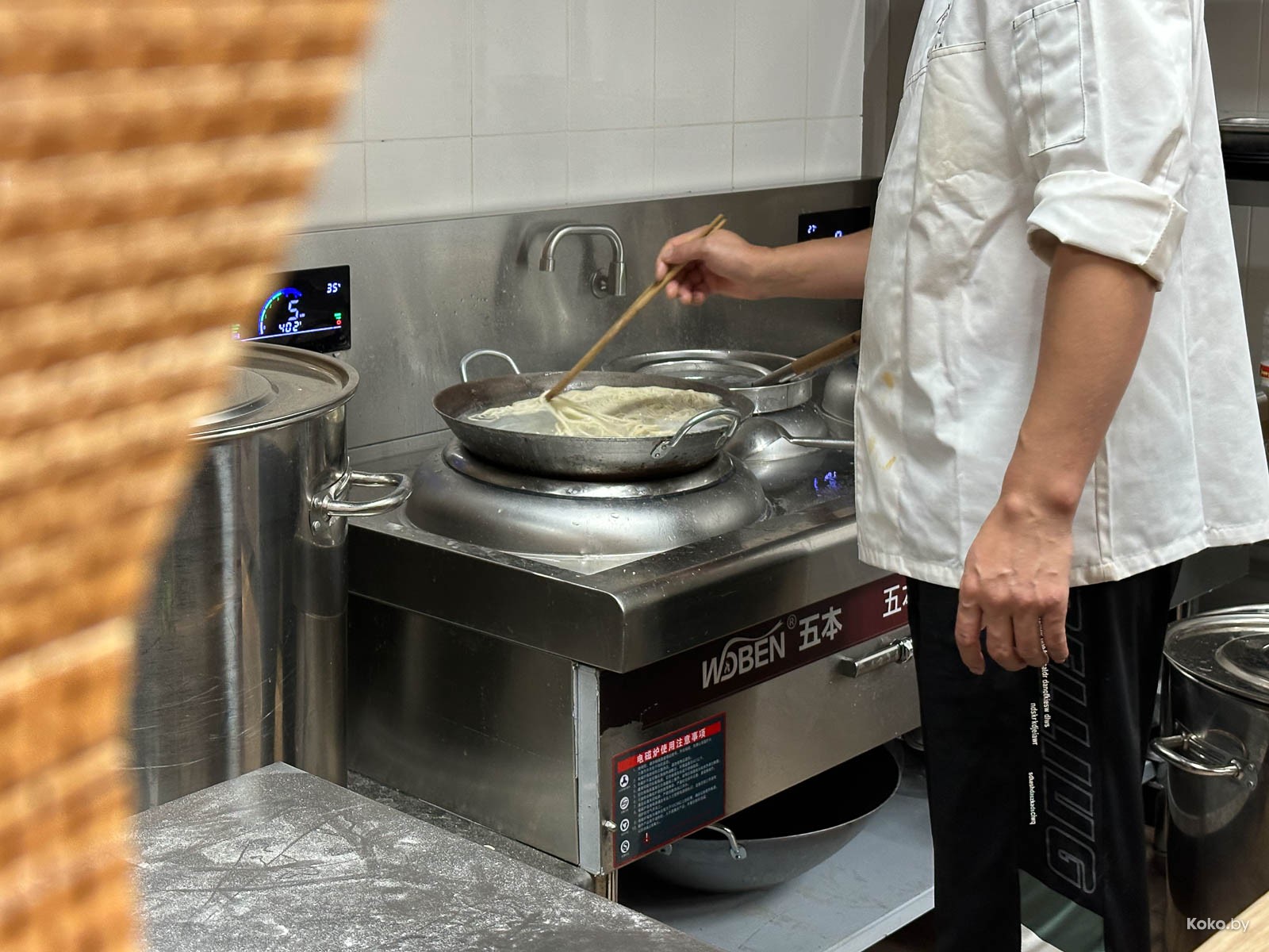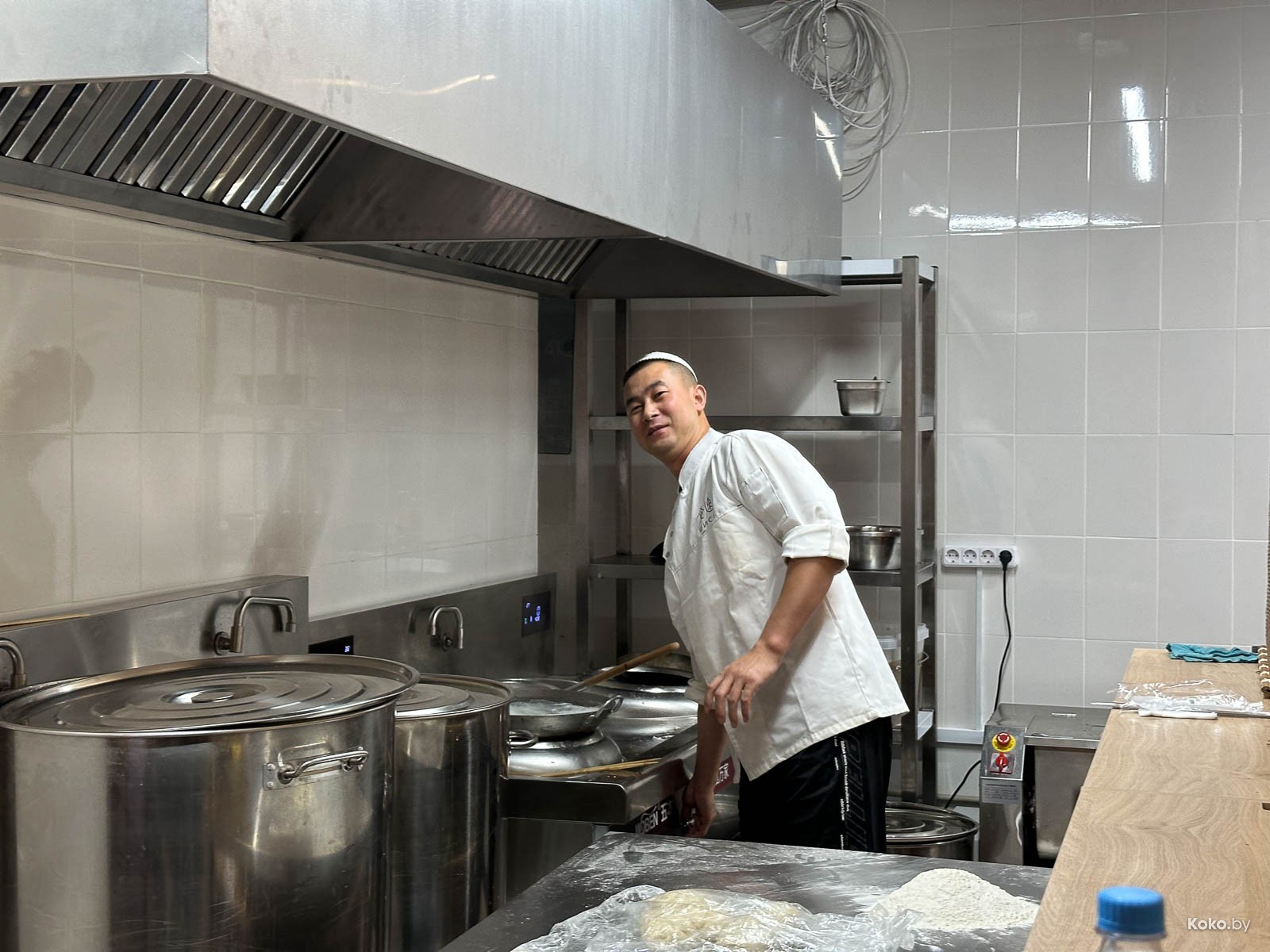 Вон в тех чанах наваривают бульон, лапшу вытягивают на месте.