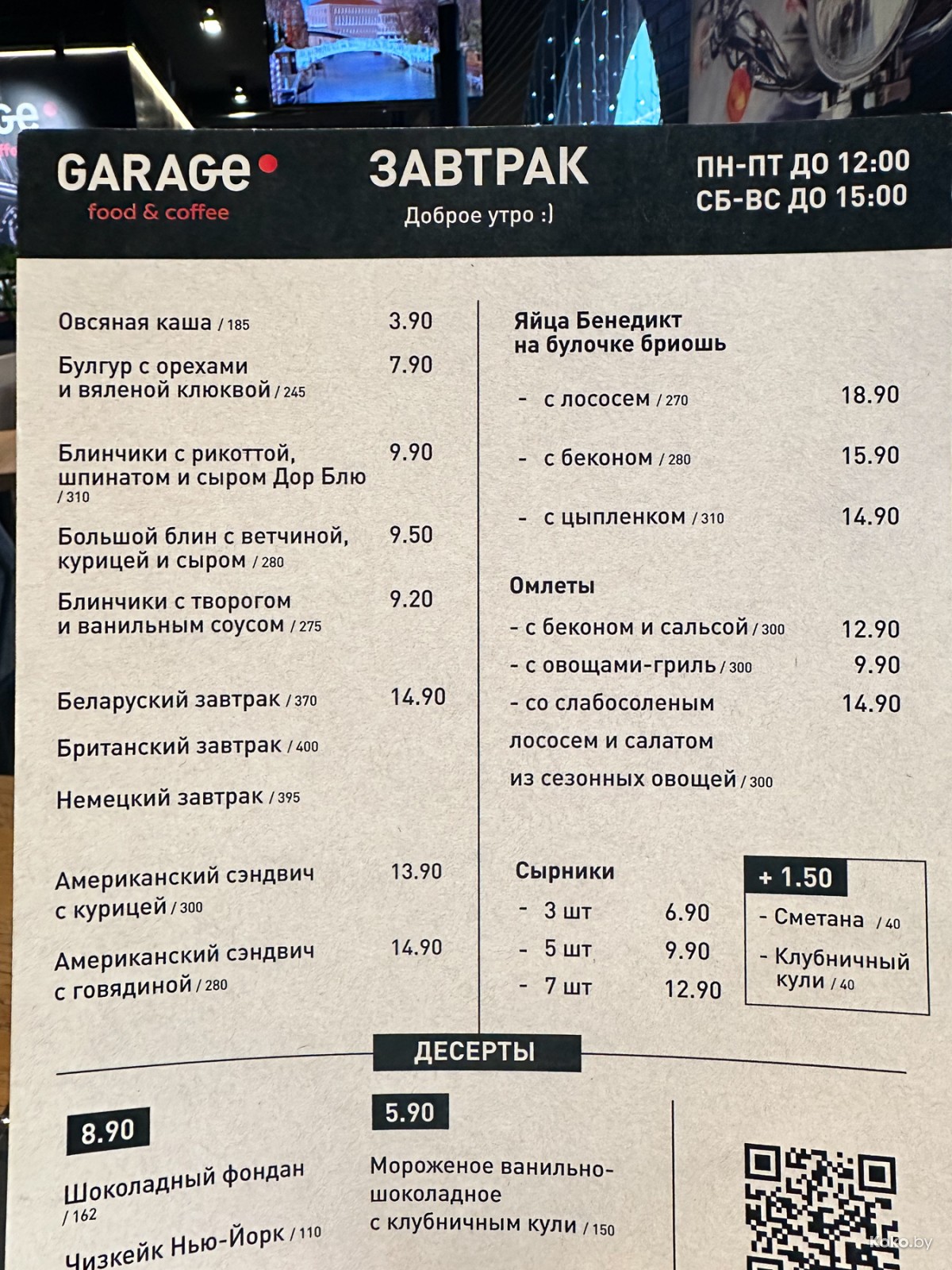 За эти деньги завтраки в «Гаражах» будут бодрее, натренировались на гостях за годы работы. Специально сходил на Немигу, 5 проверить.