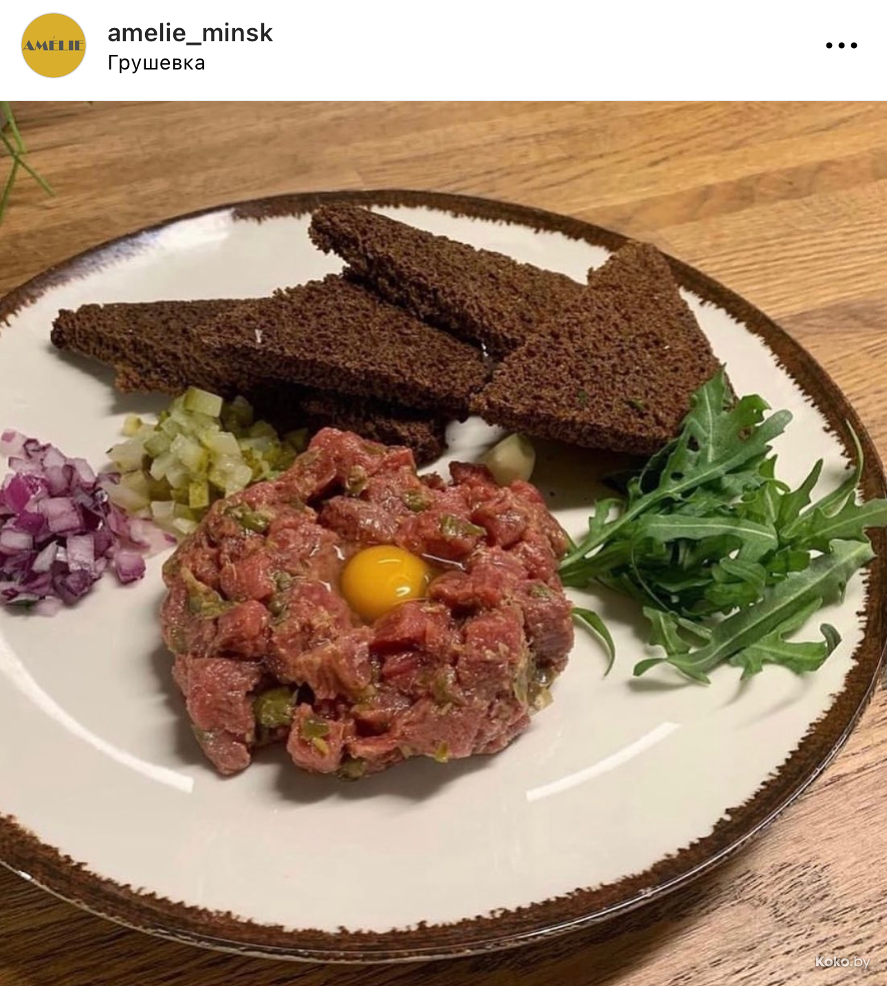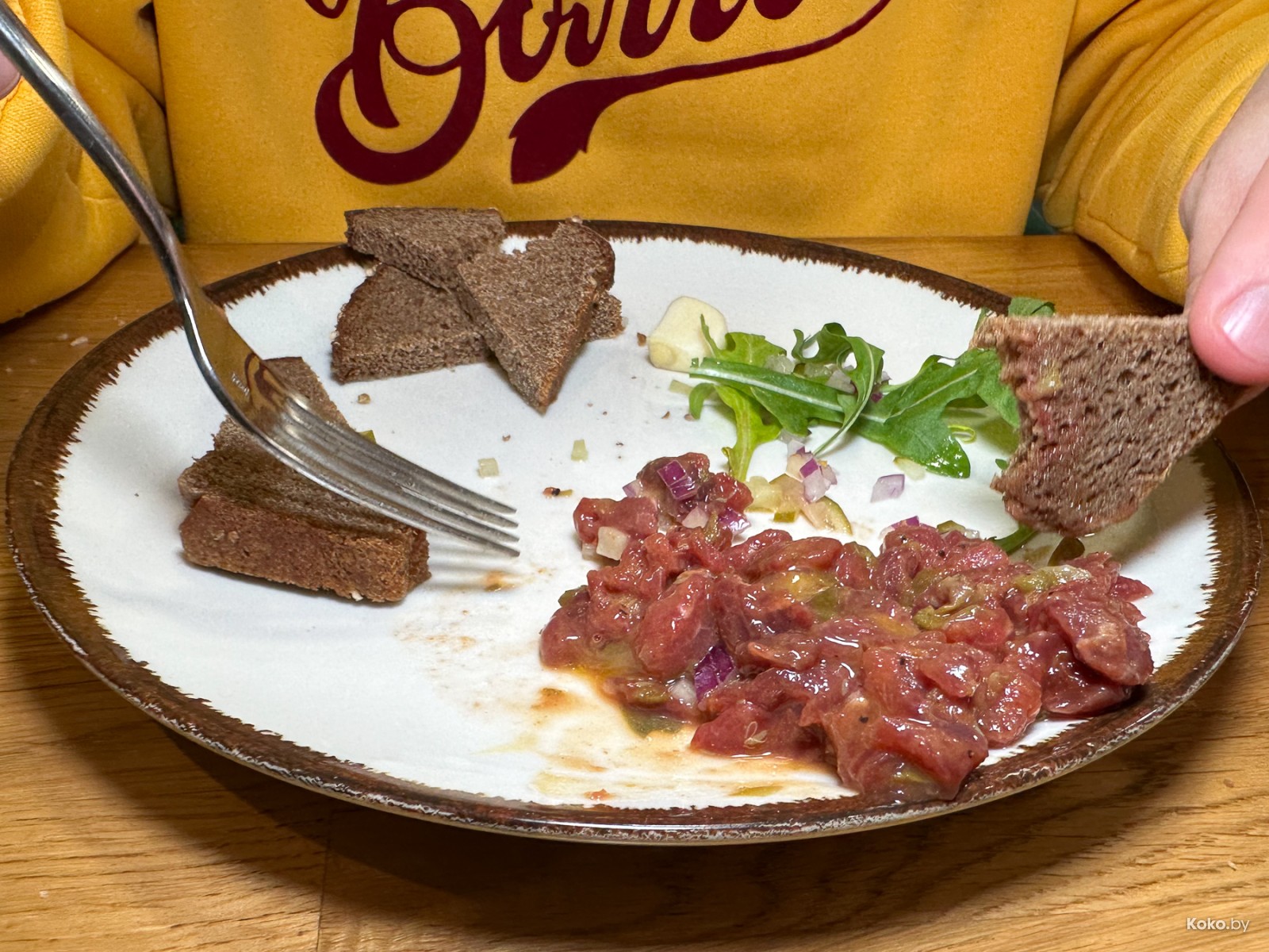 Тарелка тартара из нежной говядины заправленной с любовью со всякими ништянками - 25р в «Гаштете». Вкуснее классики не ел.