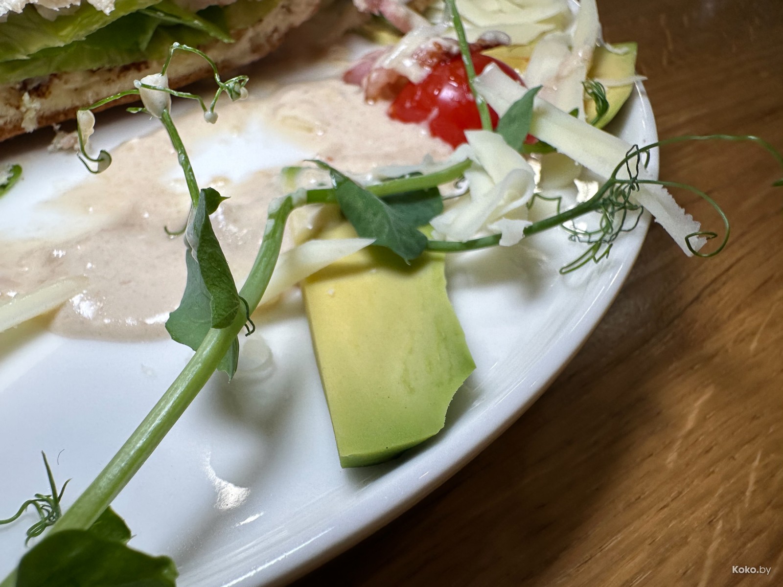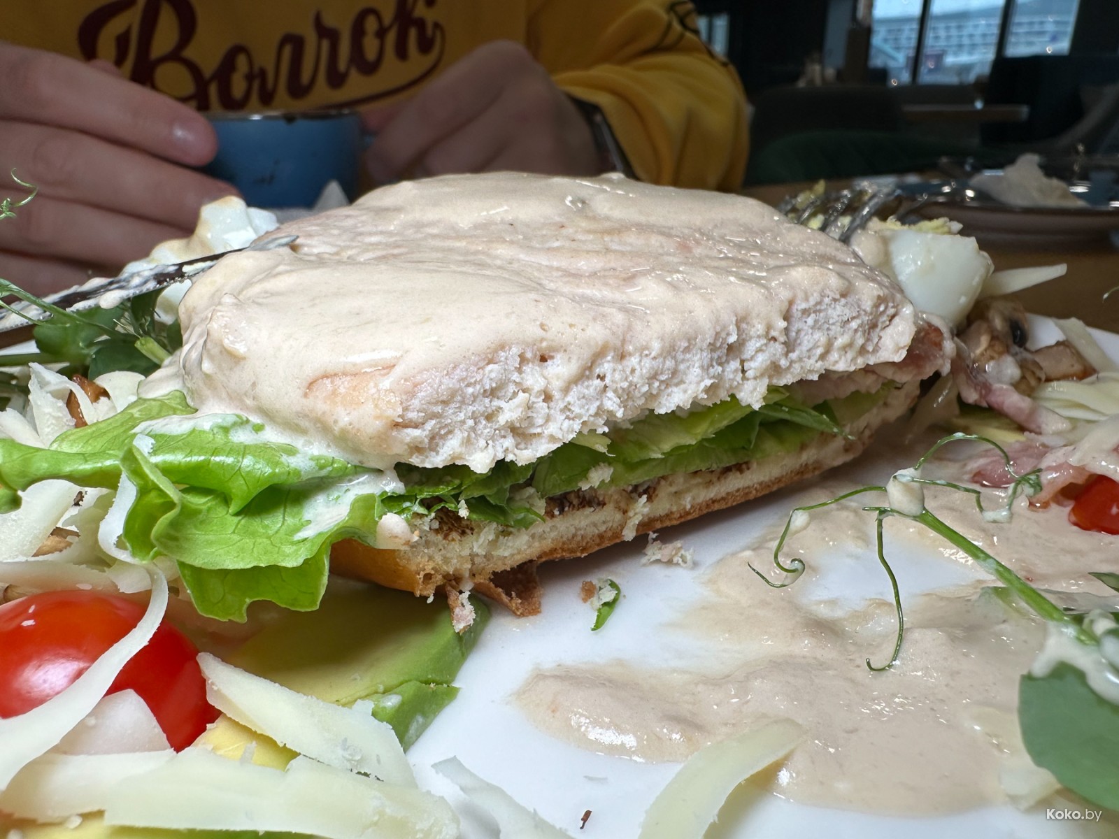 Куриная котлета - гуд, но всё остальное какой-то экспромт. Сочетание странное, авокадо дубовый, сыр зачем-то натёрли по тарелке. Всё мимо!