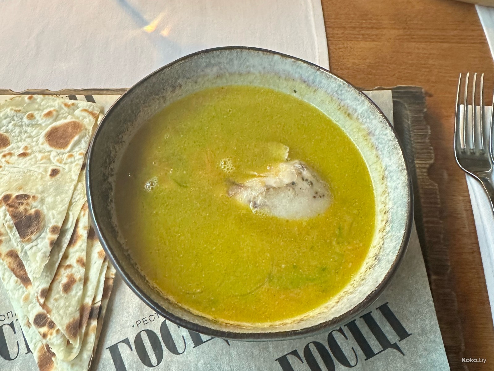 Высший, наваристый, аж жёлтый бульон из петуха с лапшой в «Гостях», особенно хорошо на акции с 12:00 до 17:00 за 9р, а так 15р.